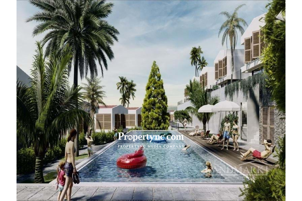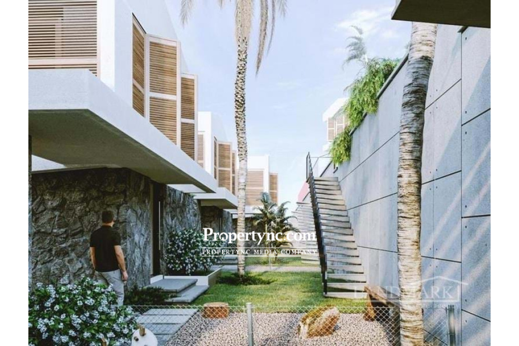 A brand-new concept of design will be built in the Mediterranean facing the sunset in the west. It has an impressive village design in its physical features. The rural spirit brought by the forests blended with modern minimalism to put a stop to the chaotic life with its finely designed project. While the hardly visible geometric forms in the area are turned into an iconic symbol of modernism using regional local crushed stone, exposed concrete on the eaves and white walls reflecting the Mediterranean sun bring this project together. Located 1 km south of the center of Alsancak, and neighbour to the upper boundary of Incesu Village and forest, this project is easy to reach the developing Alsancak and its surroundings. It is 5 km to Kyrenia and thanks to the motorway, access to other cities has now been made easier. Offering a quiet and peaceful life away from the crowd, in the countryside next to the forest. There will be direct access to the communal areas from each house, a communal pool and terraces for sunbathing, communal WCs, showers and a pool café bar which are overlooking the mountains and views of the sea which are just poetry in motion. Local landscape designs used in the gardens of the houses are also used in communal areas. Using 1st class quality materials in the houses, central heating and cooling systems, built-in shower systems, wall hung toilets with concealed cisterns which have become the standard materials used by the company. The project consists of 32 units in total. 20 villas are 175m2 with 3 bedrooms and 12 townhouses are 110m2 with 2 bedrooms. 110m2 internal area Completion July 2024 Exchange title deed VAT to pay Communal swimming pool 2 bedrooms 2 bathrooms (1 on each floor) Central cooling heating system Double glazed insulating aluminium joint window system Built-in wardrobes in bedrooms Parquet flooring, marble or ceramic flooring for various parts in the house Sanitary ware reducing water waste Water Booster Pump Custom-design suspended ceiling and lighting systems Complex lighting Infrastructure for satellite, internet and phone Hot water heater with solar power Nature-friendly material use from bricks to the paint Stone paving on the exterior elevation Pool café bar Green space design Car parking space Trafo fee £2.000 Payment plan: 35% down payment 65% on key handover Location: Sea (Camelot Beach) 1 km Nejat British College 0,3 km Merit Royal Hotel & Casino 0,7 km Restaurants and Cafes 0,5 km - REF: 1771c-1