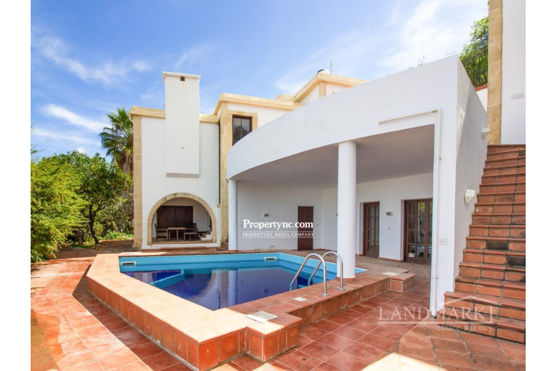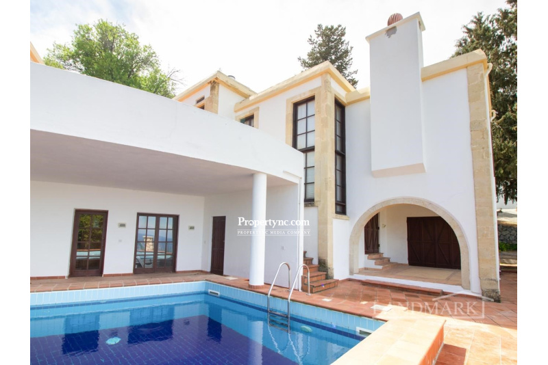 These impressive villas are located in the most sought-after area of Kyrenia Bellapais - just two minutes walk from its center. Its location is elevated and has the most amazing views over Kyrenia city across to the Mediterranean Sea. It also overlooks the historical Bellapais Abbey. The villas are very private, located in a historical place, which guarantees that you will not be disturbed by the construction of new developments nearby. These two villas stand separately next to each other both having the same floor plan and are built on the same land plot by a well-known German architect. These two villas have two different entrances from one large terrace. They both share a communal swimming pool and sauna on the ground floor level with sea view. They are very well-planned and have a very good construction quality. Each villa is spacious and consist of a lounge area with a fireplace united with the dining area and the kitchen into one cosy living space. The dining area and the lounge both have access to terraced areas with views over Kyrenia and the Mediterranean Sea. There is also an access from the kitchen to a terrace. All the furniture, doors, window frames and shutters are masterfully made of solid wood. There are 2 spacious bedrooms in the house with built-in wooden wardrobes and the master bedroom has an ensuite bathroom. There is a garden area which is mature with different trees and plants. 150m2 internal area of each 0.8 donum land (1070 m2) Title deed for properties in the owners name VAT paid Completed in 1996 Swimming pool Sauna 4 bedrooms (2 in each villa) 2 en suites (1 in each villa) 2 family bathroom (1 in each villa) 2 WCs (1 in each villa) Air conditioning in one bedroom Built in floor to ceiling wooden wardrobes in all bedrooms Fully fitted wooden kitchen Kitchen appliances Electrical under floor heating Open fire place Stone wall surround Mature established garden Panoramic views - REF: 1577