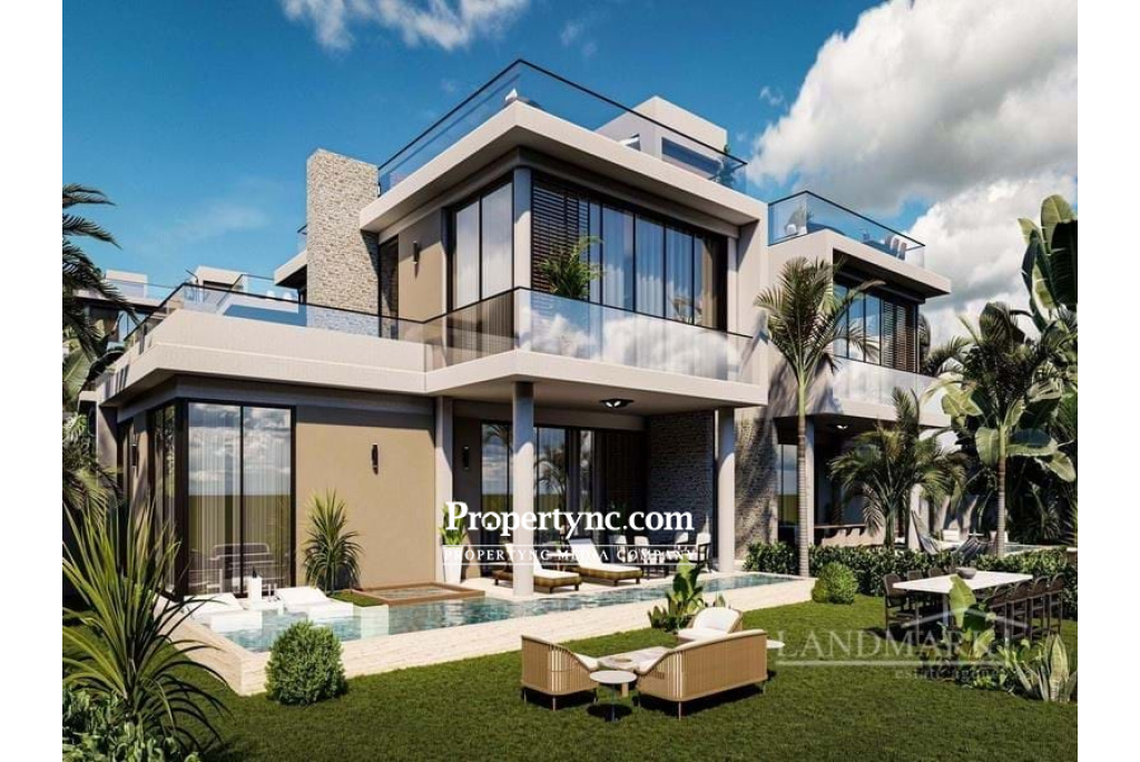 Located in the highly sought-after Esentepe area of Kyrenia, this luxury complex offers an exceptional and opulent living space. It boasts a wide range of top-notch amenities including a state-of-the-art gym, a rejuvenating spa, a relaxing sauna, a traditional Turkish bath, a refreshing pool, a delightful restaurant, a trendy bar, a cosy cafe, and a convenient mini market. The development presents an array of housing options, including 2-bedroom penthouse apartments with spacious living rooms, lofts with private pools, studios, and charming villas. Spread across a vast 25,600m² land, there is ample space for residents to enjoy. What truly sets this project apart is its unparalleled view of the sea and surrounding nature, offering residents a truly extraordinary lifestyle. Every aspect of this development has been meticulously designed with ultra-luxurious details, creating a magnificent harmony of captivating blue and lush green. 180 m2 internal area 40 m2 terrace 123 m2 roof terrace Exchange title deed VAT to pay Completion: December, 2024 Private and communal swimming pools 3-bedroom semi-detached villas Guest WC En-suite in each bedroom Fitted wardrobes High gloss Kitchen Cabinets Kitchen Countertops Marble Cast Iron Aluminum double-glazed windows Ceramic flooring Sliding Door Cabinet in Bedrooms VRF central cooling and heating system Spotlights and hidden LED lights Gym SPA Sauna Turkish bath Restaurant Bar Café Mini-market Walking distance to the public beach Trafo fee: TBC Payment plan: - £2,000 reservation fee for 3 weeks; - 35% down payment; - 65% until key handover OR - £2,000 reservation fee for 3 weeks; - 40% down payment; - 50% until key handover; - 10% instalment for 6 months after the key handover with no interest - REF: 2037c-1