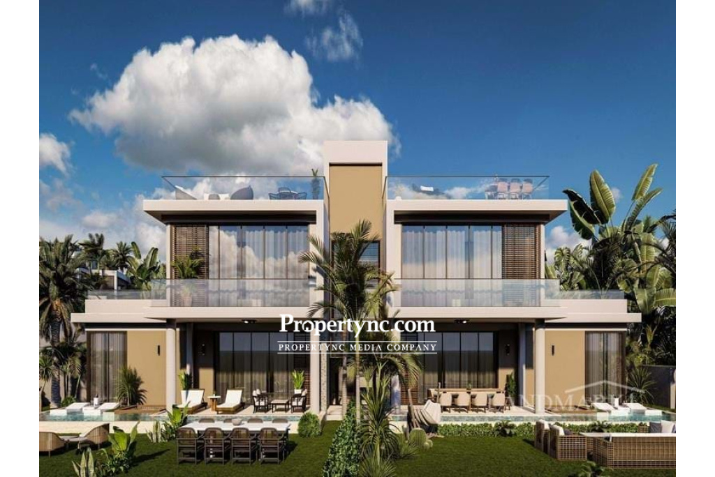 3 bedroom brand new semi-detached villas + roof terrace + communal swimming pool + gym + SPA + sauna + Turkish bath + restaurant + bar + café + mini market + walking distance to the public beach + payment plan
