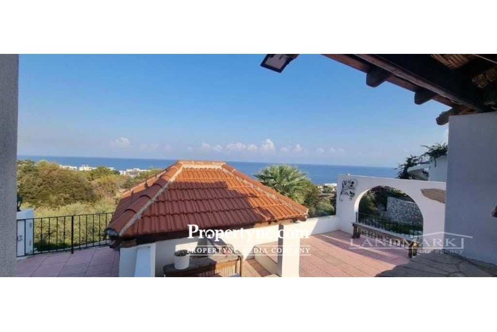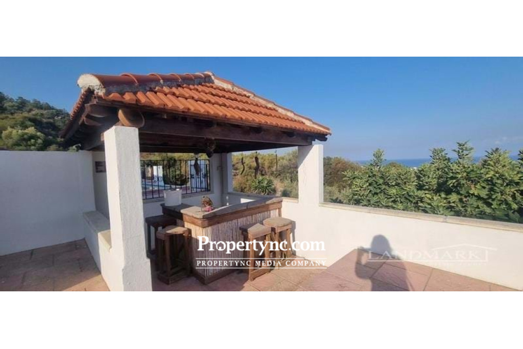 This is a rare opportunity to purchase a lovely bungalow built on the ravine with breath-taking sea and mountain views that will never be closed. Located within a holiday complex consisting of houses and bungalows with private swimming pools, this property might become your dream home in the sun. The bungalow has its own 1450m2 garden with a few mature trees and 8m x 4m swimming pool, as well as an outside bar area. Internally, there is an open plan fully fitted kitchen combined with a spacious lounge which has a log burner and access through the patio door to the big terrace with outstanding views. There are 3 bedrooms in the property. 2 bedrooms sharing 1 family bathroom and 3rd bedroom has an en-suit. There is also access to a roof terrace where you can enjoy marvellous sunsets and sunrises. You will only need to spend 3 minutes driving to a sandy beach, 5 minutes driving to Esentepe village and 10 minutes driving to the golf course. 120m2 internal area 1450m2 plot size approx. Exchange deed Title deed in the owners name, VAT paid 8m x 4m swimming pool Fully furnished 3 bedrooms Master bedroom with en-suit Family bathroom Fully fitted wardrobes in all bedrooms Fitted kitchen Kitchen appliances Heating system infrastructure Air conditioning x 4 Double-glazed windows Shutters Seating area on the roof Off-street parking Garage Annexe Outside bar Water Well Water Tank Storage rooms internally and externally Stone wall surround Sea and mountain views Close proximity to all amenities - REF: 2087