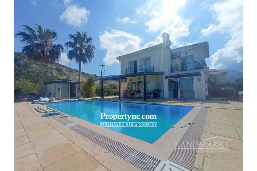 This classic style villa located in a tranquil area of Bahceli. The property is elevated high above the Mediterranean Sea which allows you to enjoy breath-taking panoramic sea and mountain views which will never be interrupted. The villa occupies a big plot which already incorporates a swimming pool with paved surround for sunbathing. Internally to the ground floor, there is a separate lounge with an open fireplace and patio door leading to the main terrace where you can sit and enjoy the fabulous views, a kitchen with an extension leading to the pool, a guest WC and an access to the back side of the house. There are 3 bedrooms on the first floor, a separated balcony, and a family bathroom. A good advantage is that each bedroom has an access to the balcony with amazing sea views and the master bedroom has an en-suite. If you love nature you will love this property and its location. 150m2 internal area (approx.) 20m2 terraces 1100m2 plot size (approx.) Exchange title deed Completed in 2006 10m2 x 5m2 swimming pool Fully furnished 3 bedroom Guest WC, family bathroom and en-suite in the master bedroom Central heating infrastructure Gas fireplace Fully fitted and extended kitchen Utility room 4 Air conditioners Celling fans White double glazed PVC windows White wooden doors Fitted wardrobes Fly screens Ceramic floor Concert Shed Irrigation system BBQ Stone wall around the house 10 tons water tank Car port Iron gates Uninterrupted sea and mountains views - REF: 1896a