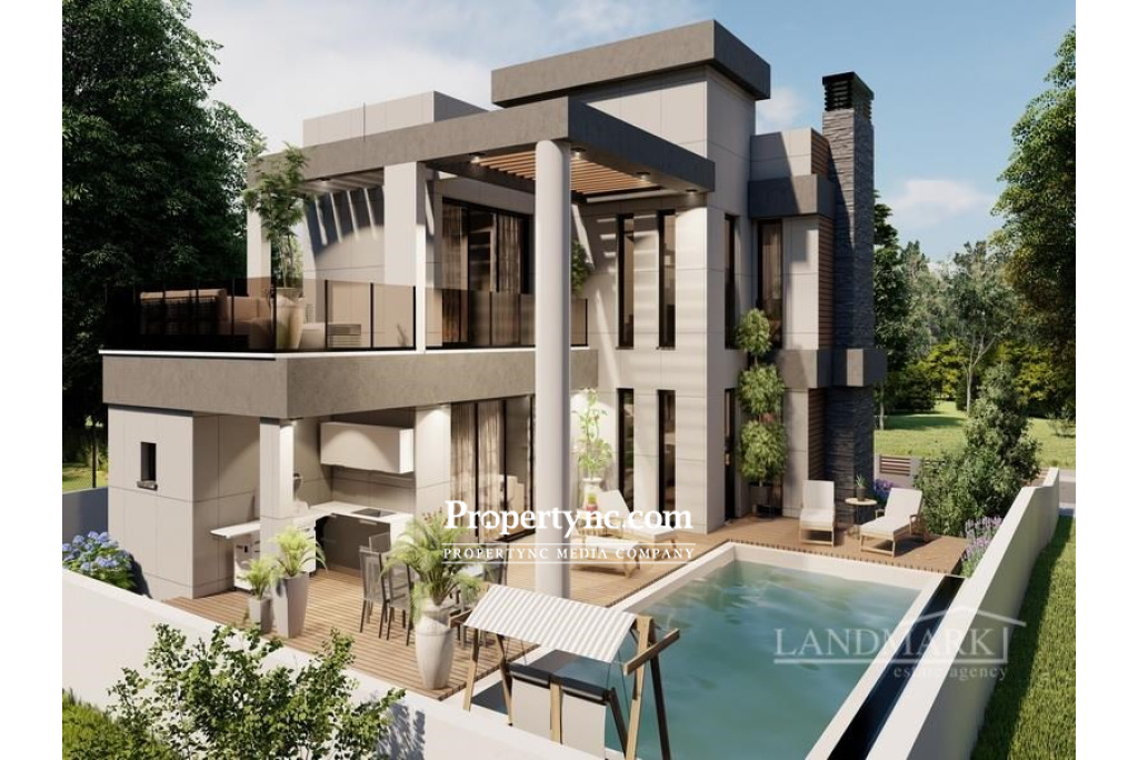 This fabulous new luxury villa with a private swimming pool is located in one of the most demanded areas of Kyrenia between the Ozankoy and Bellapais villages. The builder of this project created a new perspective of comfortable living combined with a luxurious modern style. You get amazing all round views of the mountains and the Mediterranean Sea from the roof terrace. The area is very quiet yet at the same time, very close to all necessary amenities like supermarkets, shops, services, bars, restaurants, and beach clubs. Internally, the villa will be very spacious and has been designed for convenience and will be completed using top quality, stylish and tasteful materials making the villa harmonious throughout. On the ground floor, upon entering, you can find a spacious entrance hall, which can be converted into a separate bedroom at your request, further there will be a lounge with a fireplace, a separate fully fitted kitchen with a porcelain effect island and worktops. There is also a utility room and a family bathroom on the ground floor. On the first floor is a large-sized master bedroom with walk-in wardrobe and en-suite, a further 2 bedrooms with en-suites and a laundry room. The villa also has a basement level with a cinema room, a game zone, a fitness room, a sauna and another bathroom. Externally, the villa has its own private swimming pool. 340m2 internal area 510m2 plot size VAT to pay Completion August 2023 Private swimming pool 3 bedrooms 2 family bathrooms 3 en-suites Air conditioning system in all rooms Underfloor heating infrastructure Master bedroom with walk in wardrobe Fitted wardrobes in bedrooms Fully fitted kitchen with a porcelain worktop White goods Kitchen island Utility rooms Fireplace Uniquely designed suspended ceiling and lighting systems Natural lighting in orientation with the house «Grohe» sanitary ware reducing water consumption Granite stairs First-class ceramic flooring First-class Spanish ceramic in the bathrooms First-class parquet in all bedrooms Landscaped garden Jacuzzi infrastructure on the roof terrace Earthquake protected concrete foundation Cinema room Game zone Fitness room Sauna - REF: 2045