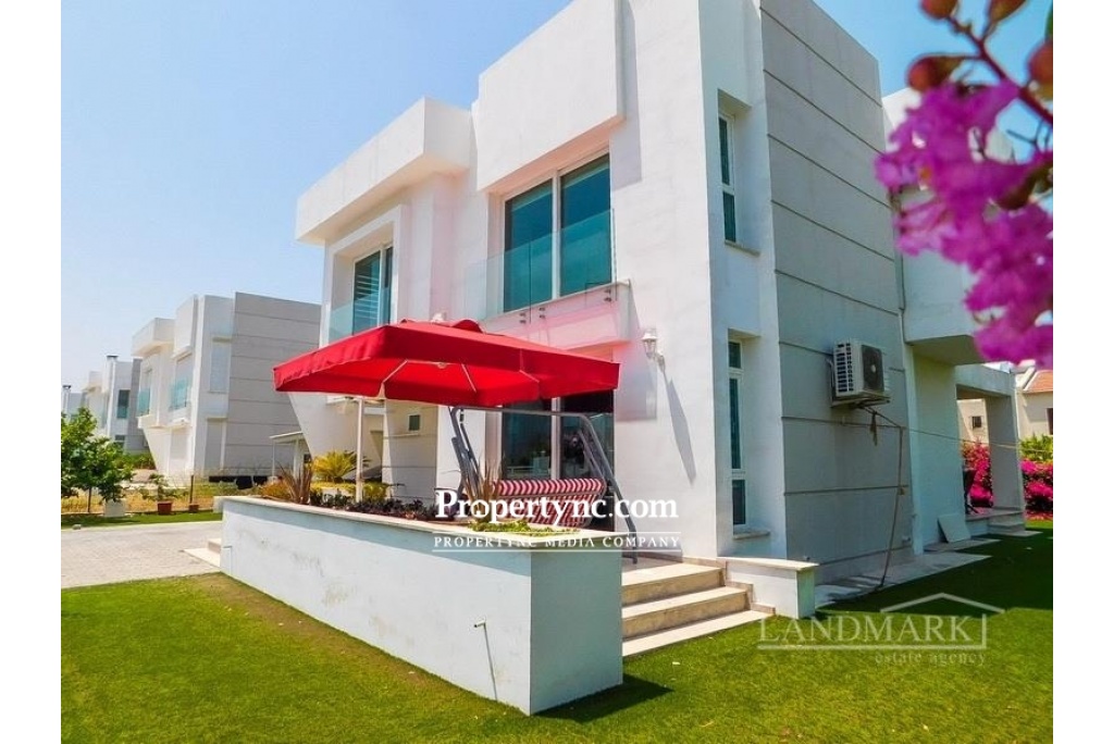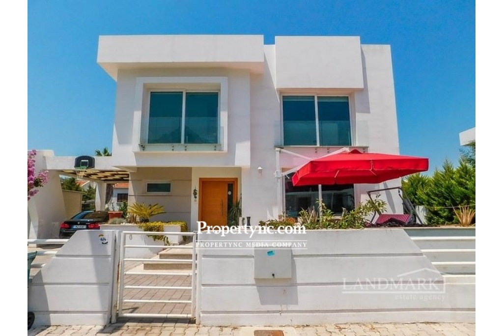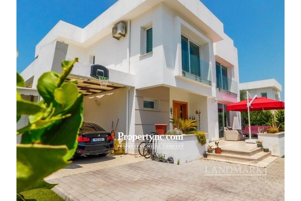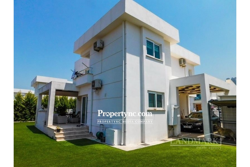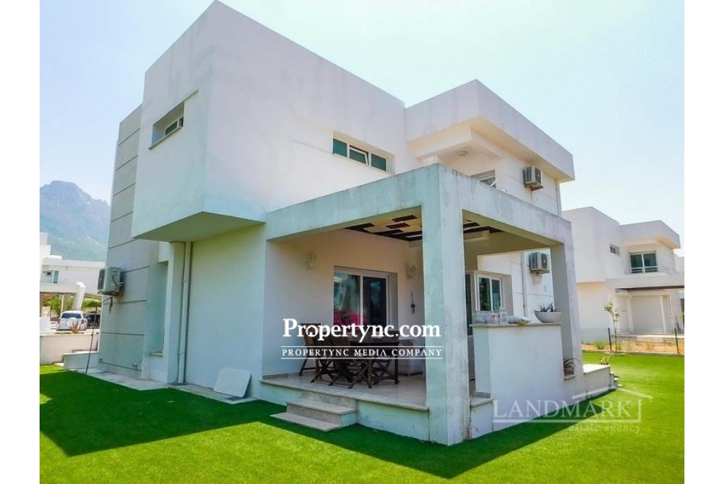 This resale villa situated on a site with 19 detached villas and 2 semi-detached villas all sharing a communal pool. The villa to the ground floor has a spacious lounge with large windows offering lots of natural light. There is access to terraced areas. There is a separate fitted kitchen including fitted units. The villa will include white goods, central heating and air-conditioning units and the owners have installed solar electric 4kwa. All 3 bedrooms are on the first floor, master bedroom with plenty of storage space and has a large en-suite bathroom. The other 2 bedrooms are sharing a family bathroom. There is security and a caretaker on-site with controlled entry and exit service. You can walk to the beach, jump on a bus to the town centre and is the perfect place for both leisure and longer stays. It is located close to all amenities and just walking distance to the famous American Girne University. 193m2 detached villa 48m2 terraces Plot size 555m2 Exchange title Completion 2016 Title deed in the owners name VAT paid Communal swimming pool and landscaped gardens amongst lemon trees 3 bedrooms master with large en suite with shower & lots of storage space 1 family bathroom on the first floor & W C Fitted kitchen units Kitchen appliances Utility room Gas central heating system Air conditioning units x 4 Ceramic & laminate flooring Bright beautiful home 2 tonnes of water storage Solar electric 4kwa 5 ton + 2 ton Car port 4m x 4m garden shed Close to all amenities & the GAU university Nice quiet area, ideal for holiday or permanent living Mountain views, and glowing in the evening peak - St Hilarion 200tl maintenance fee per month - REF: 233g-1