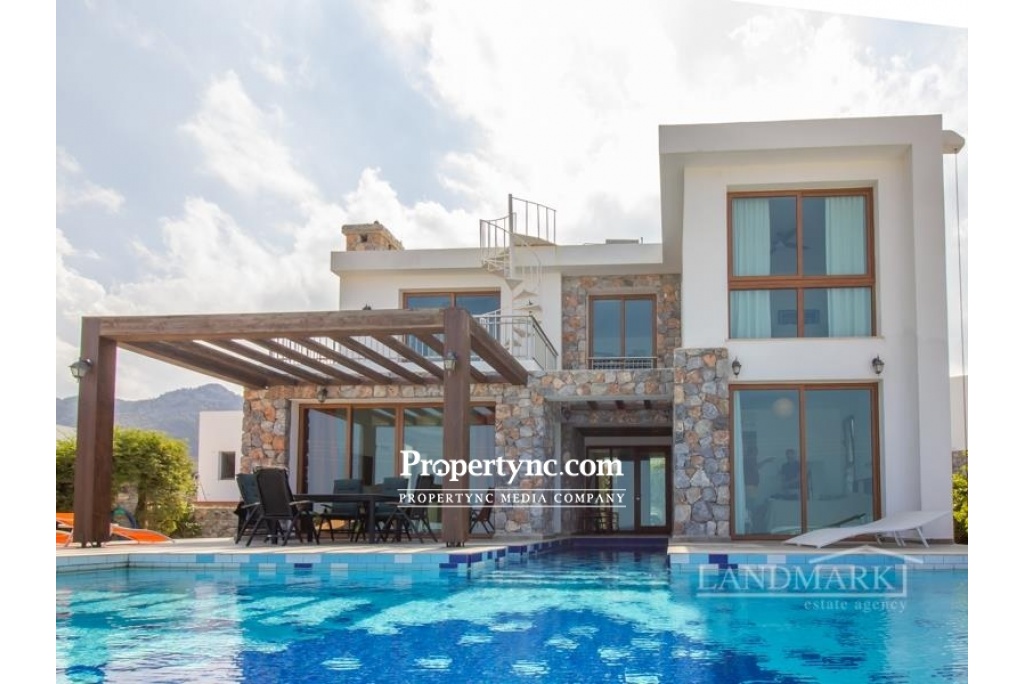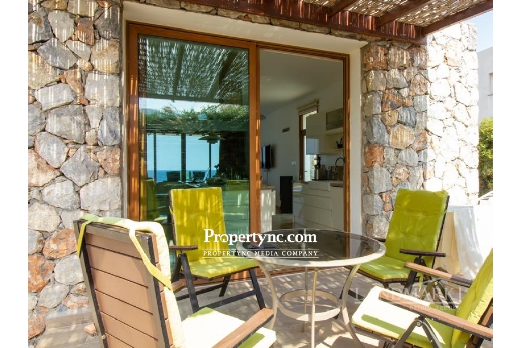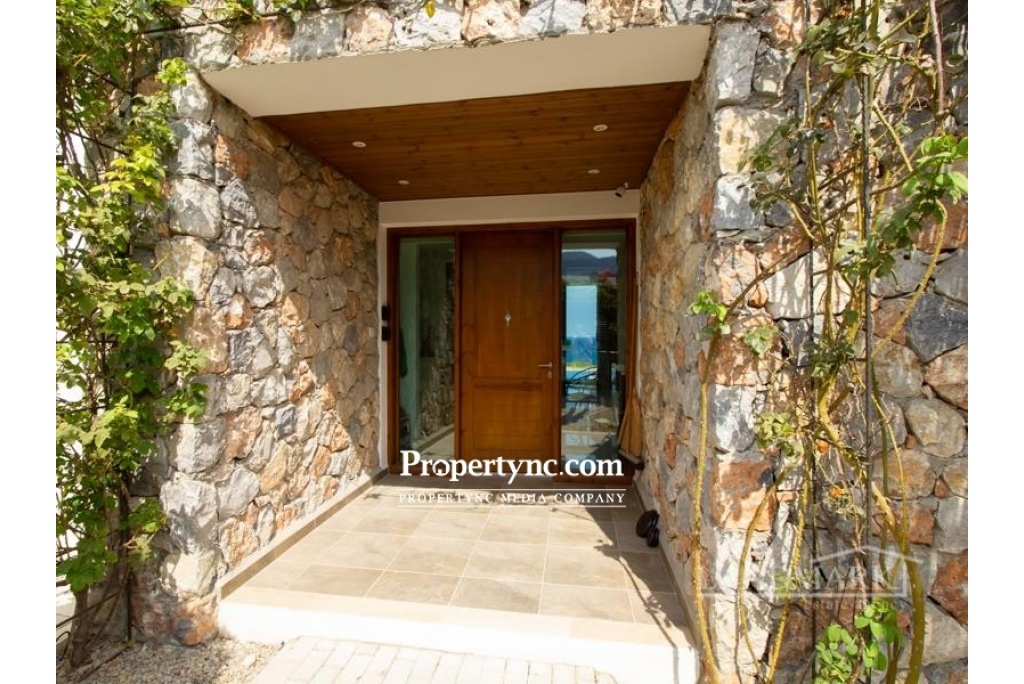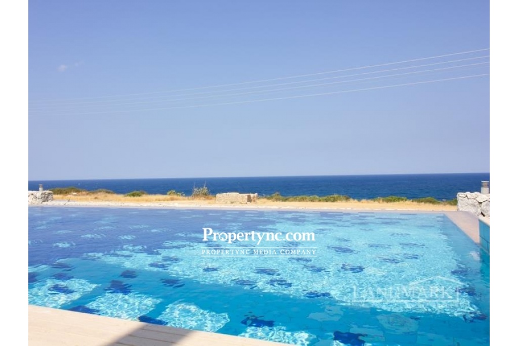 This is a rare chance to purchase such an impressively beautiful villa on the seaside of Kucuk Erenkoy. The villa is located 40 minutes drive east from the old harbor town of Kyrenia and is surrounded by untouched beautiful nature! This house is a real work of art or, if you prefer, a new wonder of the world! The villa has been built using only the finest quality materials and was constructed by a current reputable builder. It is impossible not to notice that the builder of this house has paid meticulous attention to literally every detail in the property. As soon as you are entering the villa, you see a corridor distinguished by a beautifully made entrance leading straight to the swimming pool. On the right side of the ground floor, there is an open kitchen with a granite island and a spacious lounge with access to the pool and the front terrace. On the left side, there is a guest WC, utility room and the first bedroom which has fitted wardrobe and access to the swimming pool and front terrace. The entrance to the swimming pool, lounge, and first bedroom are all facing the sea. On the first floor, there are 3 bedrooms and each bedroom has its own en-suite bathroom. In addition to the en-suite the master bedroom has an office with a sea view where the working hours fly by. The big terrace on the first floor is overlooking the sea and has a staircase leading to the roof terrace with additional mountains views. Truly a stunning sea front property! 200m2 internal size + 90 m2 terraces approx. 630m2 plot size 65m2 infinity overflow pool Fully furnished Exchange title deed Title deed on the builders name, VAT payable Sea front location Luxury finish Fully fitted kitchen including white goods Granite worktops Dining cooking island with granite worktops 3 bedroom all en-suite and built in wardrobes Guest WC Master bedroom with double sink, marble worktop and a cabinet Fire place in the lounge IVT inventor in the lounge 4 Air conditioners Ceramic floors Underfloor heating system throughout the house Spot lights High quality wood effect aluminum windows with double glass Utility room Natural stone wall all around the plot Stone garden shed Place for Pèd tanco game Iron staircase to the roof Amazing sea and mountains views - REF: 177f