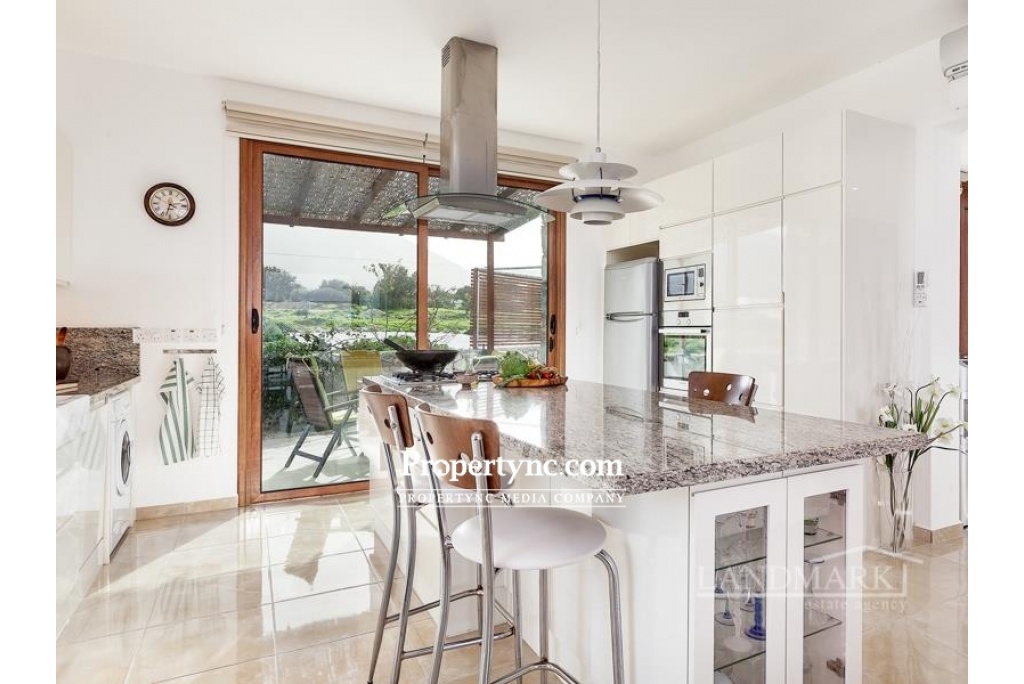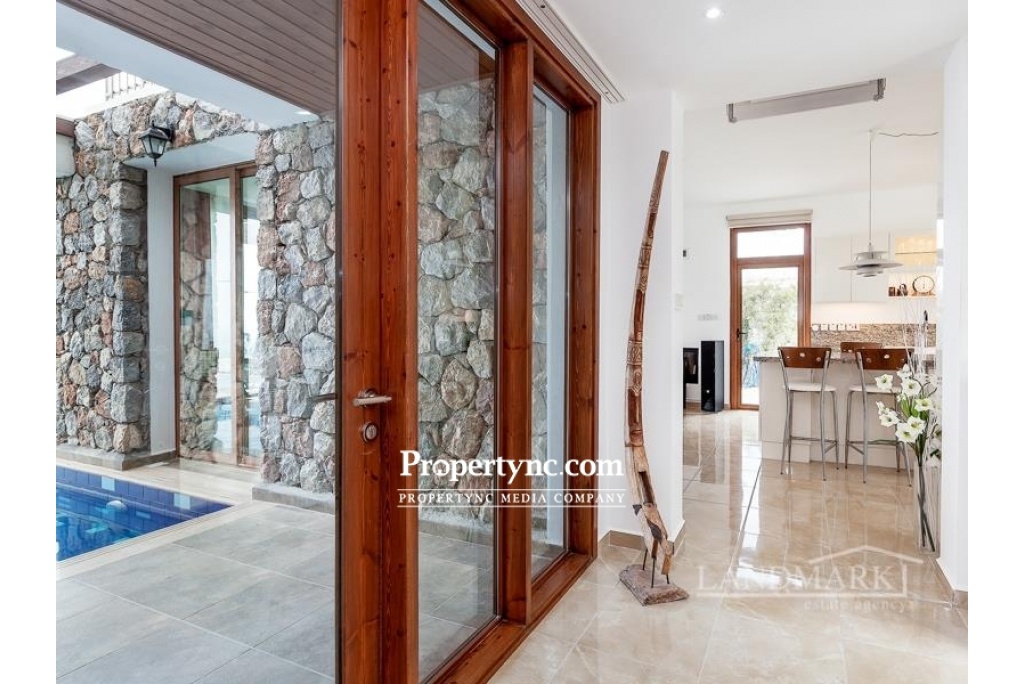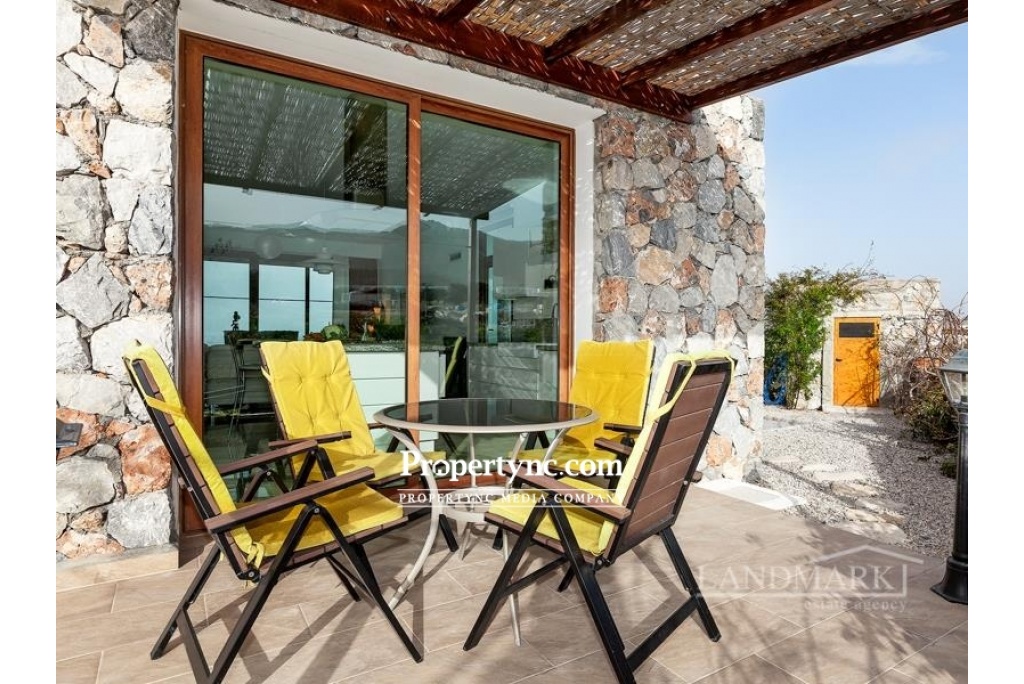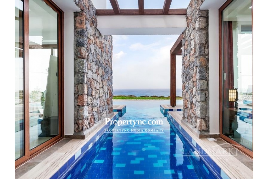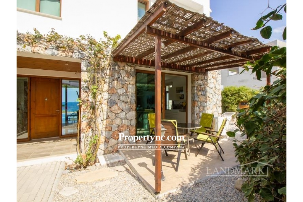 This is a rare chance to purchase such an impressively beautiful villa on the seaside of Kucuk Erenkoy. The villa is located 40 minutes drive east from the old harbor town of Kyrenia and is surrounded by untouched beautiful nature! This house is a real work of art or, if you prefer, a new wonder of the world! The villa has been built using only the finest quality materials and was constructed by a current reputable builder. It is impossible not to notice that the builder of this house has paid meticulous attention to literally every detail in the property. As soon as you are entering the villa, you see a corridor distinguished by a beautifully made entrance leading straight to the swimming pool. On the right side of the ground floor, there is an open kitchen with a granite island and a spacious lounge with access to the pool and the front terrace. On the left side, there is a guest WC, utility room and the first bedroom which has fitted wardrobe and access to the swimming pool and front terrace. The entrance to the swimming pool, lounge, and first bedroom are all facing the sea. On the first floor, there are 3 bedrooms and each bedroom has its own en-suite bathroom. In addition to the en-suite the master bedroom has an office with a sea view where the working hours fly by. The big terrace on the first floor is overlooking the sea and has a staircase leading to the roof terrace with additional mountains views. Truly a stunning sea front property! 200m2 internal size + 90 m2 terraces approx. 630m2 plot size 65m2 infinity overflow pool Fully furnished Exchange title deed Title deed on the builders name, VAT payable Sea front location Luxury finish Fully fitted kitchen including white goods Granite worktops Dining cooking island with granite worktops 3 bedroom all en-suite and built in wardrobes Guest WC Master bedroom with double sink, marble worktop and a cabinet Fire place in the lounge IVT inventor in the lounge 4 Air conditioners Ceramic floors Underfloor heating system throughout the house Spot lights High quality wood effect aluminum windows with double glass Utility room Natural stone wall all around the plot Stone garden shed Place for Pèd tanco game Iron staircase to the roof Amazing sea and mountains views - REF: 177f