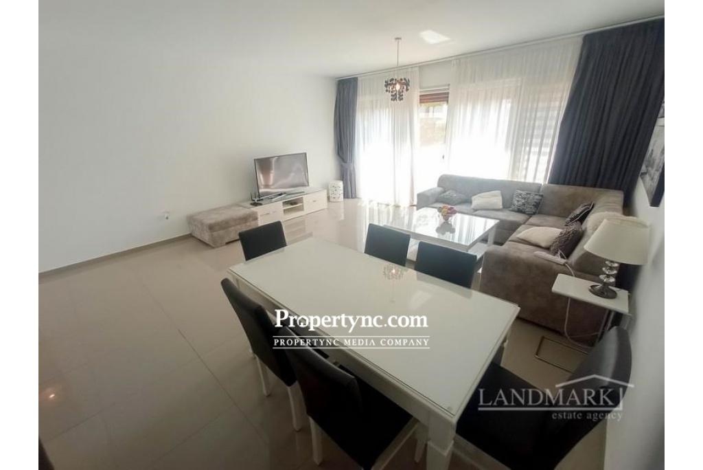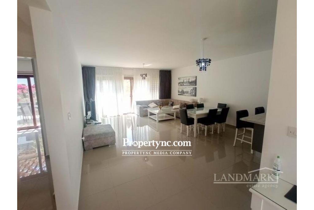 3 bedroom garden apartment + communal pool + gym + sauna + AC units + white goods + fully furnished + stunning views to the sea + Title deed on owner’s name, VAT paid