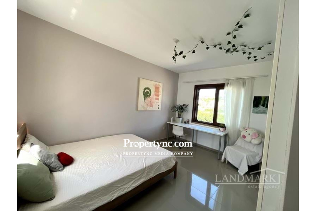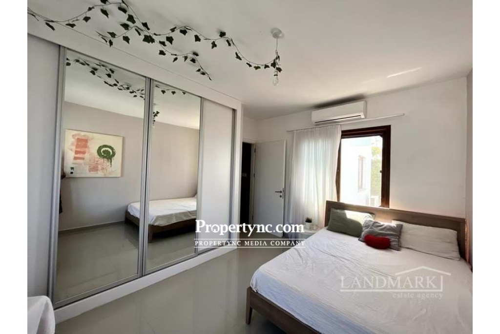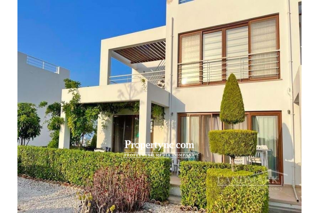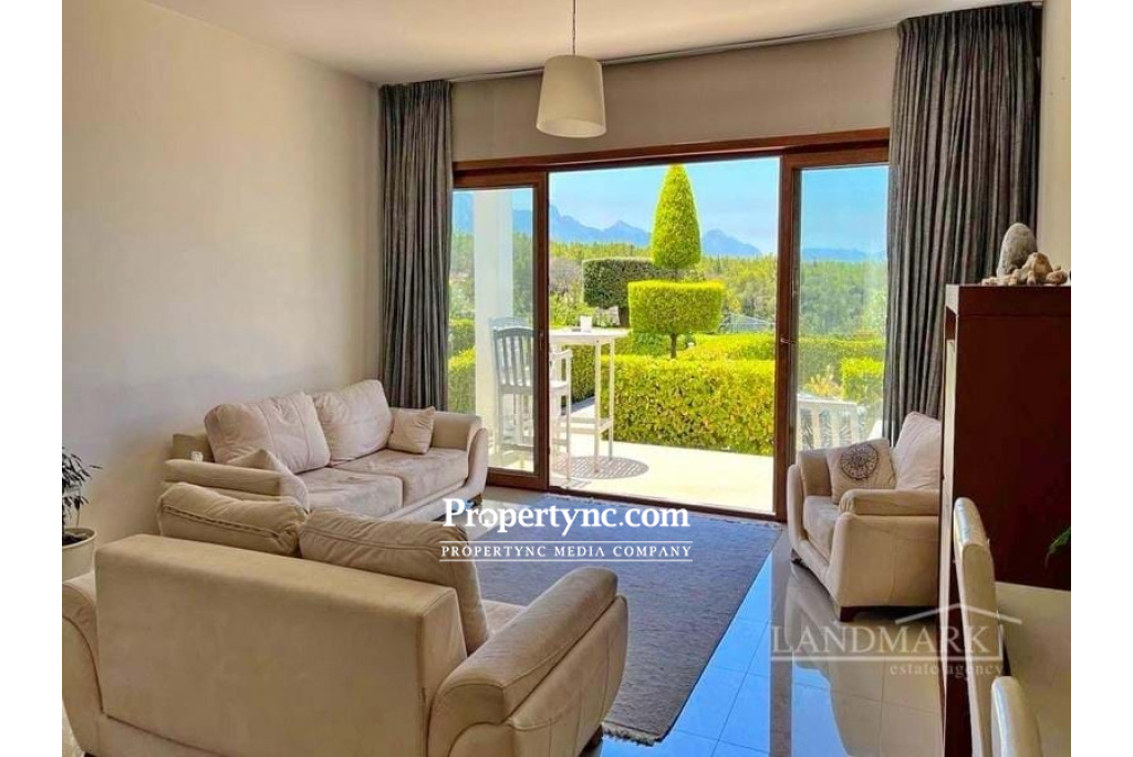 This lovely garden apartment is a fantastic opportunity to purchase a holiday home for luxury living at an affordable price. It is a part of a newly constructed estate consisting of 4 apartments in each block all sharing a communal pool. Apart from 3 double bedrooms, open-plan kitchen and lounge it benefits from spacious terrace with great views. The apartment has high quality furniture included in the price. The kitchen is fully fitted including the appliances. Fitted wardrobes are throughout and all bedrooms. The site benefits from several overflow communal pools, beautiful landscaped garden, a gym, spa, restaurant, children play ground, heart center and tennis court and has a property management office. It is place to relax, a place to enjoy peace, quiet and relaxation. The site is about 20 minutes drive from Kyrenia and situated around the corner from Korineum Golf course. 136m² internal size approx. 30m² terrace 30m2 approx. private garden Exchange Title deed Title deed on builder's name, VAT payable Communal swimming pools Fully furnished 3 bedrooms Master with en-suite shower Family bathroom with shower Fitted wardrobes Fitted kitchen with white goods Inverter air conditioners throughout Parking space in front of the block Beautiful large communal garden with a mix of plants and trees Bike rent Fully equipped site (gym, sauna, restaurant, children play area) Heart center with additional gym, massage rooms, indoor pool and spa area Property management office on site Shuttle service to nearby beach 24 7 CCTV camera system Maintenance fee is £210 per month - REF: 208r-1