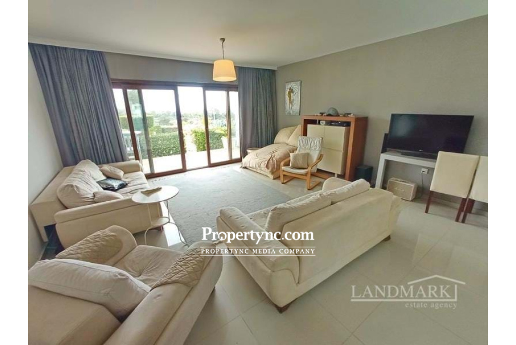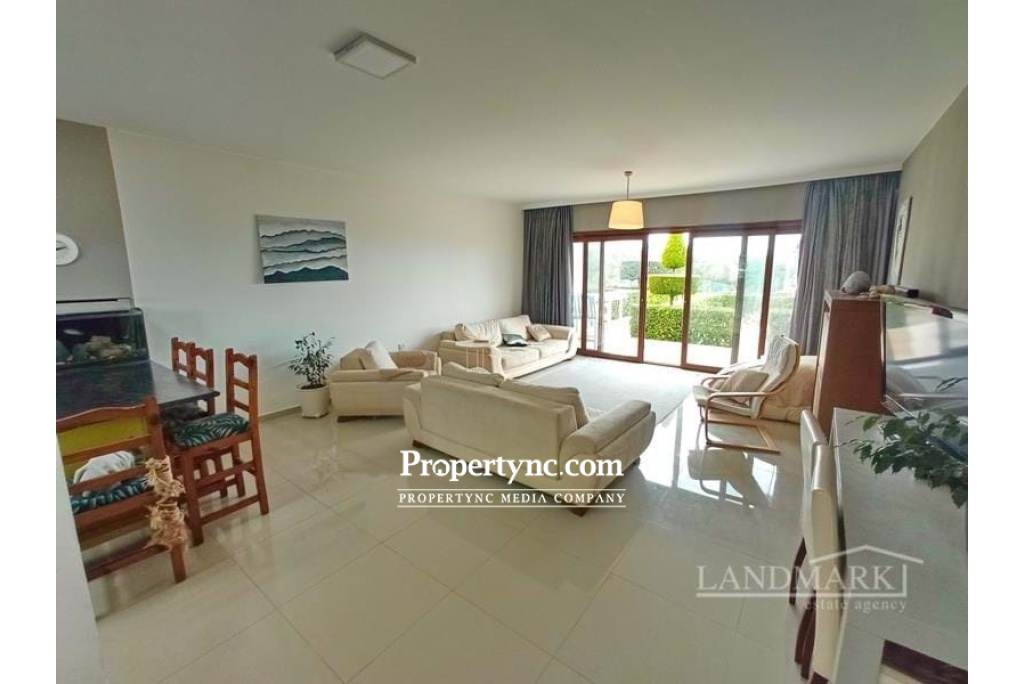 3 bedroom garden apartment + fully furnished + communal pools + gym + sauna + brand new wellness center + stunning views to the sea