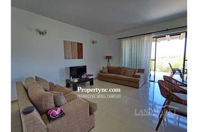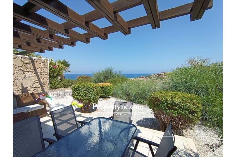 3 bedroom garden apartment + fully furnished + direct sea views + 4 communal swimming pools & sauna + Title deed in the owner’s name, VAT paid