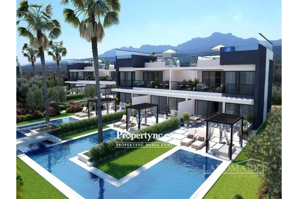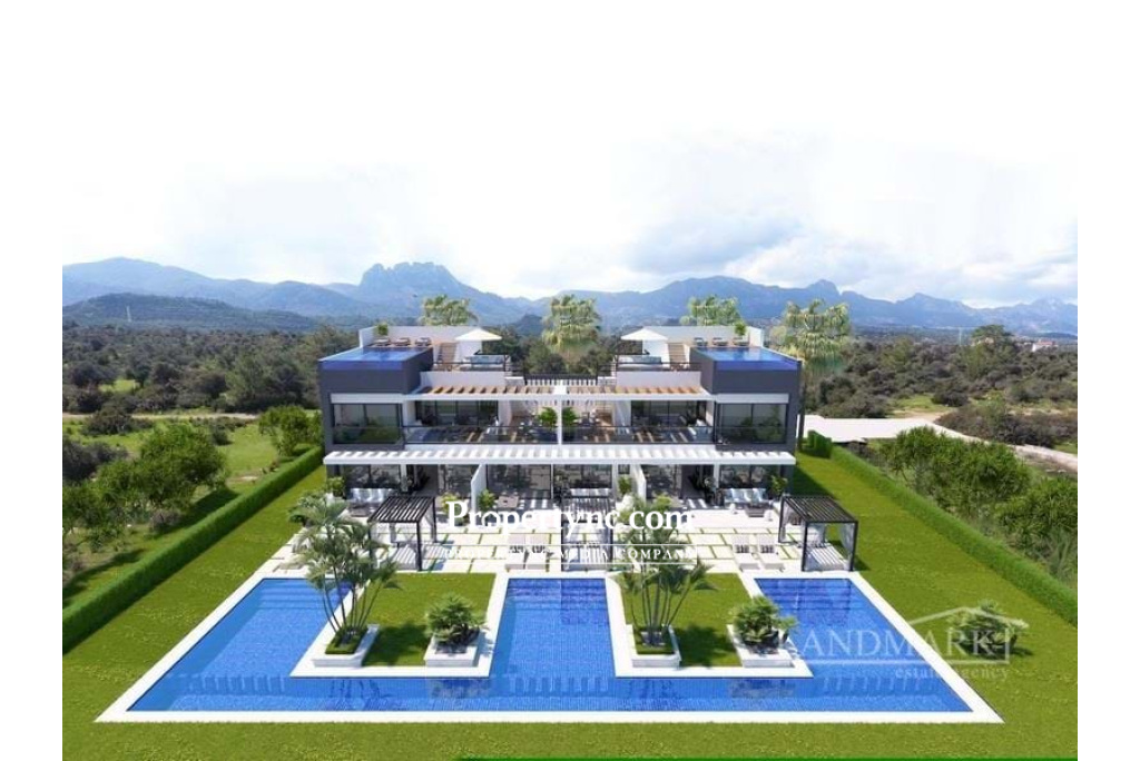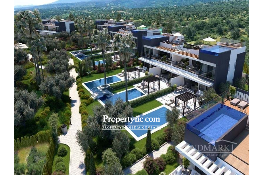 This brand-new off-plan resort is a unique luxury project which will be located between the mountains and the Mediterranean Sea. Situated close to a beautiful beach in Northern Cyprus, known as Alagadi turtle beach which is regarded as one of Cyprus's most distinctive regions. It is also 800m away from Korineum Golf & Country Club, which is an 18-hole championship golf course. There are five 5-star hotels and casinos in the area which offer high-class entertainment throughout the year, restaurants and the historic and romantic city of Kyrenia within 10 minutes distance of the development. The project will be built using only 15% of the land and the remaining 85% will be a green area as the surround is a protected area. In the project, there will be 12 blocks of two-story buildings consisting of 52 apartments with a choice of 2 & 3-bedroom luxury apartments on the ground floor and 2+1 penthouses. The project will be completed in two phases. Phase 1 will consist of 26 apartments. 93m2 gross area 89m2 terrace 22m2 garden 32 m2 private swimming pool with shared corridor 236m2 total usage area 3 bedrooms 2 bathrooms (1 of it is en suite) Modern kitchen units with the soft close systems & porcelain worktops Fitted sanitary ware Worldwide known bathroom and kitchen appliances (taps and showers) Choice of oversized porcelain flooring in kitchens bathrooms 5-year building guarantee Top-quality fitted kitchen Choice of high quality fitted wardrobes with soft close systems Inverter air conditioning systems in all rooms Central heating infrastructure for heat pump systems Full height suspended ceiling with LED spot & strip lights in the living room Aluminium double glazed sliding doors and windows Terracing with inbuilt lighting & power sockets Pathways on the site High-quality designer internal doors and contemporary entrance door Private car parking Central generator system Landscaped gardens: fully designed & planted Location: 3 mins to Bar, restaurants and supermarket 2 mins to Korineum Golf Club 5 mins to Pharmacy 3 mins to Supermarket 10 mins to Kyrenia 30 mins to Ercan Airport Amenities: Fitness centre and hamam Shuttle Service to the beach Laundry Tennis court Kids playground Restaurant Cafe & Bar Site management office 24 7 Maintenance Service Payment plan: Deposit: - £2.500 - to reserve for 10 days - £5.000 - to reserve for 20 days 35% on signing of the Contract in 10 days 20% on completion of foundations 20% on completion of the framework 20% on completion of brickworks & plastering 5% on key handover - REF: 1945a-2