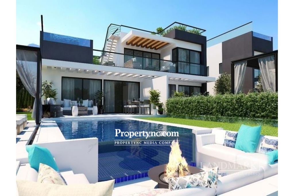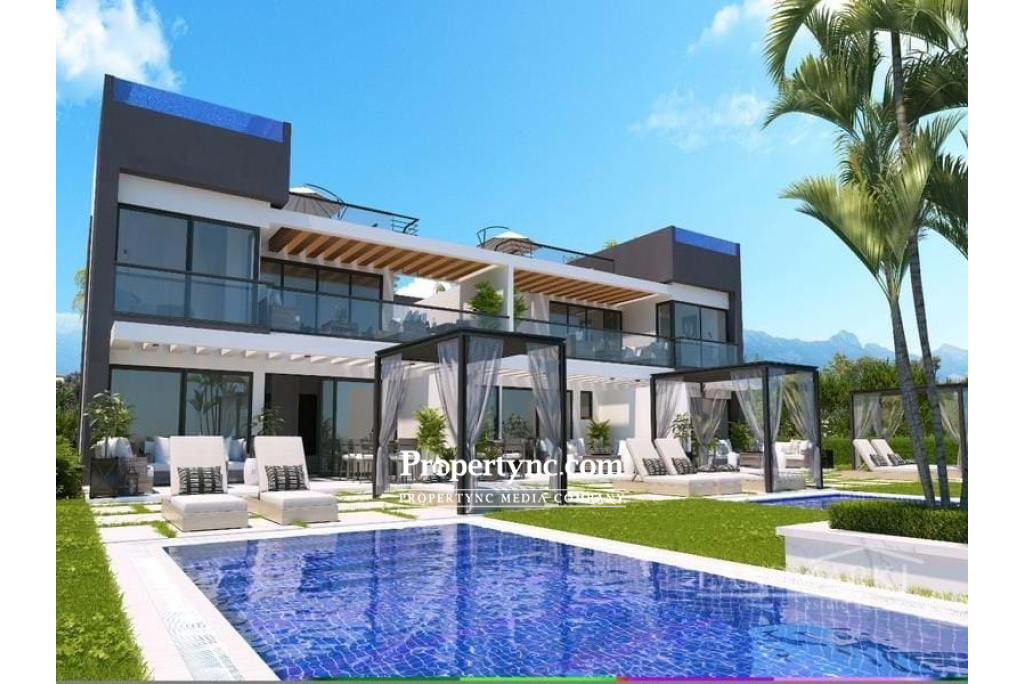 This brand-new off-plan resort is a unique luxury project which will be located between the mountains and the Mediterranean Sea. Situated close to a beautiful beach in Northern Cyprus, known as Alagadi turtle beach which is regarded as one of Cyprus's most distinctive regions. It is also 800m away from Korineum Golf & Country Club, which is an 18-hole championship golf course. There are five 5-star hotels and casinos in the area which offer high-class entertainment throughout the year, restaurants and the historic and romantic city of Kyrenia within 10 minutes distance of the development. The project will be built using only 15% of the land and the remaining 85% will be a green area as the surround is a protected area. In the project, there will be 12 blocks of two-story buildings consisting of 52 apartments with a choice of 2 & 3-bedroom luxury apartments on the ground floor and 2+1 penthouses. The project will be completed in two phases. Phase 1 will consist of 26 apartments. 93m2 gross area 92-96m2 terrace 30-44m2 garden 32m2 private swimming pool 251-261m2 total usage area 3 bedrooms 2 bathrooms (1 of it is en suite) Modern kitchen units with the soft close systems & porcelain worktops Fitted sanitary ware Worldwide known bathroom and kitchen appliances (taps and showers) Choice of oversized porcelain flooring in kitchens bathrooms 5-year building guarantee Top-quality fitted kitchen Choice of high quality fitted wardrobes with soft close systems Inverter air conditioning systems in all rooms Central heating infrastructure for heat pump systems Full height suspended ceiling with LED spot & strip lights in the living room Aluminium double glazed sliding doors and windows Terracing with inbuilt lighting & power sockets Pathways on the site High-quality designer internal doors and contemporary entrance door Private car parking Central generator system Landscaped gardens: fully designed & planted Location: 3 mins to Bar, restaurants and supermarket 2 mins to Korineum Golf Club 5 mins to Pharmacy 3 mins to Supermarket 10 mins to Kyrenia 30 mins to Ercan Airport Amenities: Fitness centre and hamam Shuttle Service to the beach Laundry Tennis court Kids playground Restaurant Cafe & Bar Site management office 24 7 Maintenance Service Payment plan: Deposit: - £2.500 - to reserve for 10 days - £5.000 - to reserve for 20 days 35% on signing of the Contract in 10 days 20% on completion of foundations 20% on completion of the framework 20% on completion of brickworks & plastering 5% on key handover - REF: 1945b-3