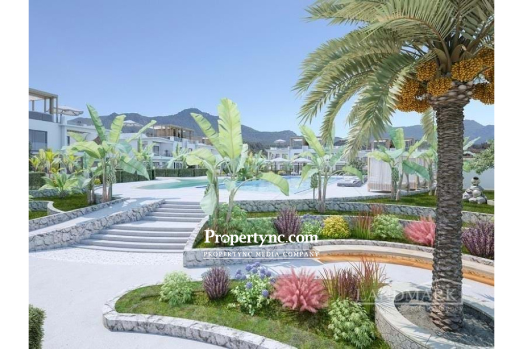 This brand-new close to completion unique luxury project which is located between the mountains and the Mediterranean Sea in the beautiful Esentepe region of North Cyprus. This project is the definition of luxury, with its modern, environmentally friendly architecture. It is also 1km away from Korineum Golf & Country Club, which is an 18-hole championship golf course. There are five 5-star hotels and casinos which offer high-class entertainment throughout the year 10 minutes distance of the development and the historic and romantic city of Kyrenia is within 20 minutes distance of the development. In the project, there will be 6 blocks of two-story buildings consisting of 36 apartments with a choice of 8 units of 1-bedroom loft apartments, 18 units of 2-bedroom penthouses and 10 units of 3+1 garden apartments with or without a private swimming pool. Prices for 3-bedroom garden apartments with private pool starts from £269,950. 85m2 internal area 36m2 garden terrace 35m2 private pool Exchange title deed, VAT to pay Completion in August 2023 Communal swimming pool 3 bedroom 2 bathrooms (1 ensuite) Fully fitted kitchen units Marble worktop and sink Suspended ceiling with spotlights Air conditioning Walk-in wardrobe in master bedroom Build in wardrobes Wooden wall decoration on wall above bed in master bedroom Fully fitted shower unit and shower screen Under floor heating in the bathroom Fitted sanitary ware Aluminium double glazed sliding doors and windows Pergola outside the living room patio windows Communal landscaped gardens: fully designed & planted Stone walls in the front of the site & pathways Off-street parking 3-bedroom furniture package included Communal Gym BBQ area in the communal gardens Site maintenance fee - £100 per month Trafo fee TBC Payment plan: - 40% down payment; - 50% payment till the key handover; - 10% payment after the key handover for 24 months with monthly instalments. - REF: 1885b-3