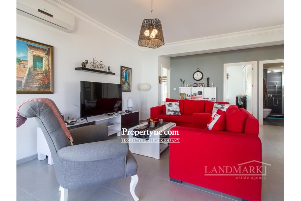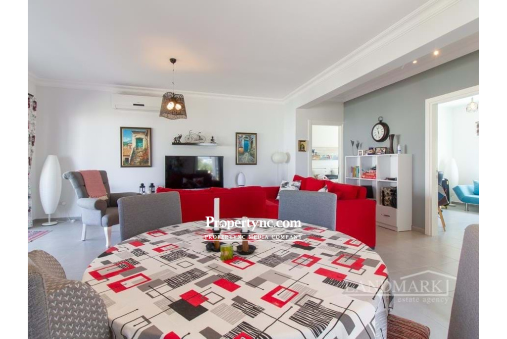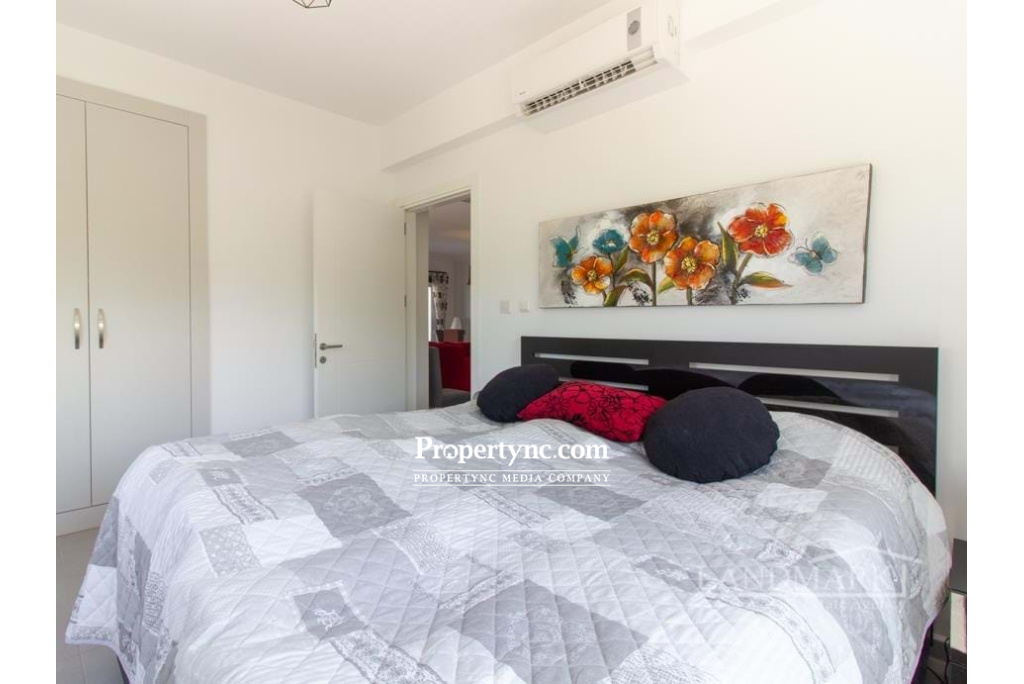 This is the project of the developer that has won awards in many categories over the past years. Their projects are of really good quality and have been proven to be a great investment. It is a seafront development in Esentepe, close to the Korineum golf course. The area is perfect for a relaxing life style where you can enjoy sea and sun, beautiful nature and the Besparmak Mountain. There are 3 bedroom ground floor apartments with a spacious lounge with an open plan kitchen. The kitchen has got all kitchen units with high quality white goods. Large patio doors are leading to an open terrace where you can sit and enjoy the breeze and the sunsets. There are 2 bedrooms which share one bathroom with shower. Master bedroom en suite is having shower. All bedrooms are equipped with fitted wardrobes. The project is in walking distance to a private beach which is part of the development. There is also shop, restaurant, and pharmacy also bus station is in walking distance. 105m² internal size 35m² terrace Exchange title deed Completed 2015 Title deed in the builders name VAT to pay Communal swimming pool 3 bedroom 2 bathrooms (1 en suite) Fully furnished Fully fitted kitchen of premium quality Bosch kitchen appliances Built in wardrobes Underfloor heating system Inverter air conditioning system x 4 High quality ceramic flooring Parking place Mature established garden Gym & Spa Childrens play ground BBQ area Mini golf Restaurant-Cafe Management site office Private beach Landscaped garden On site walking jogging track Car rentals Maintenance fee 100 GBP per month - REF: 621a-2