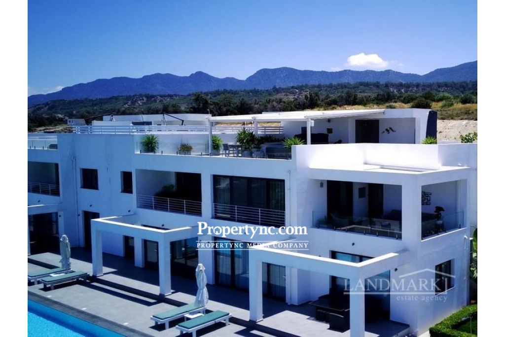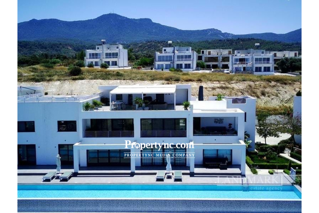 Welcome to your new super luxury apartment ! This stunning double sized penthouse is a truly luxurious space that offers the perfect blend of comfort, convenience, and style. Built in 2019, it boasts the very best in high-quality materials and craftsmanship, ensuring a luxurious living experience that is second to none. Located within a prestigious mountainside site on a resort & spa complex, perfectly situated in an elevated position, providing breath taking views of the Mediterranean Sea. It's a peaceful oasis in the heart of one of the most beautiful regions in the World. This spacious and elegant apartment is perfect for relaxing and enjoying the stunning sea views. Internally, there is a spacious lounge area with patio doors, allowing you to enjoy the fresh sea air and breath taking views. There is a feature design gas fire which is a beautiful center piece that adds warmth providing a cosy warm atmosphere to the room during the cooler seasons. The kitchen is very spacious and fully equipped with integrated appliances, including a central island with hob and extractor fan. Cooking and entertaining will be a breeze in this stylish and functional kitchen. The kitchen is also a combined dining area with patio doors opening onto a beautiful terraced area. The huge master bedroom has a large en-suite bathroom, with double sink unit, providing you with all the comfort and privacy you need. The bedroom is also equipped with plenty of wardrobe space including integrated mirrors. A further two bedrooms with fitted mirrored doors, share a modern family bathroom. There is a centralised VRF system throughout (integrated air conditioning and heating throughout). Everything in this property is of the highest quality, ensuring that you have the most comfortable and luxurious living experience. There is a long private infinity swimming pool just for the block of apartments as well as being able to use the other communal pools on site. There is a spa & wellness centre with an indoor pool due to open 2023. Whether you're looking to entertain guests, relax with family and friends, or simply enjoy a quiet evening at home, this penthouse has everything you need to live your best life in style and comfort. Indulge in luxury at this exquisite apartment, where you'll find an impressive internal staircase leading up to a massive rooftop terrace that will leave you breathless with its stunning views. The terrace is truly spacious and perfect for entertaining guests, where you can spend your evenings in ultimate relaxation luxury enjoying a Jacuzzi with a view with the addition of an electric awning. Furthermore, the roof top bar kitchenette area with a sink, fridge and BBQ adds to the convenience and luxury of this apartment. The addition of a super long communal pool that is shared only with the apartments within this phase. So why wait ? Come experience the ultimate in luxury living today ! You can't go wrong with this stunning apartment that has everything you need for a luxurious retreat. 210m2 penthouse Approx. 150m2 roof terrace Exchange title deed VAT payable Completed 2019 Furniture can be negotiable Communal swimming pools on site Private Infinity pool only for the residents of the block 3 double bedrooms Master bedroom with en suite shower room with double sink units 1 family shower room 1 W C with space for a washing machine and dryer Spacious lounge with sea views Central marble gas fireplace Open plan kitchen, diner with access to a terrace and sea views Kitchen appliances are all good quality (washing machine and dryer not included) VRF cooling & heating system Electric blinds Spotlights Hot tub & retractable blinds on the roof terrace Beautiful landscaping on the site Sea views of the Mediterranean The current owners have 2 internet lines installed All the electrics are hidden at the entrance, you will not see any wires On site restaurant Landscaped communal botanical gardens Shuttle service to the nearby beach and also the famous Korineum Golf & Beach resort Direct access to a nature trail There is a spa centre due for completion 2023 with an indoor swimming pool - REF: 210
