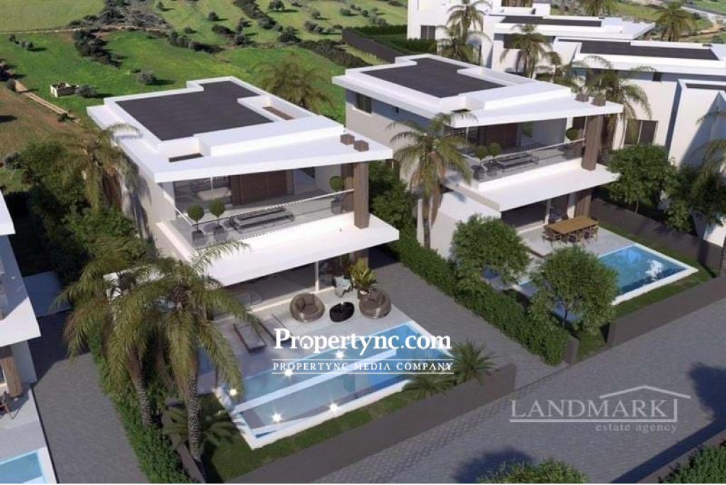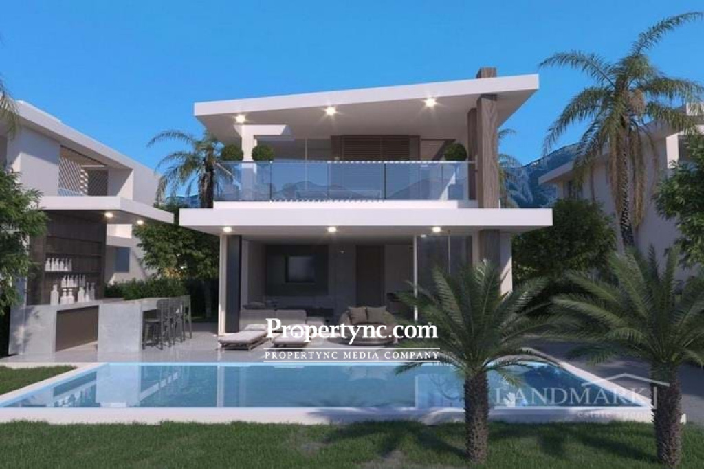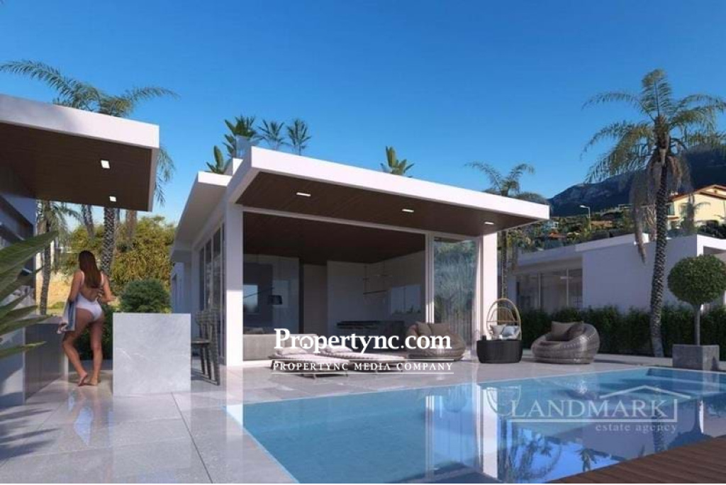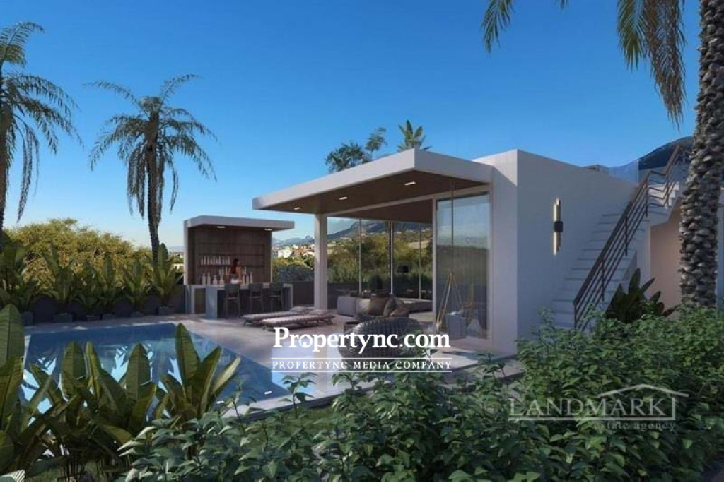 This exclusive project consists of a set of luxury modern villas, located in the popular and highly demanded area of Esentepe, with close proximity to the Korineum golf course and Esentepe beach. There will be two types of villa designs, Dublex Villas or Bungalows, each having their own private pool and roof top terrace. The 3-bedroom Dublex villas will be in a plot size starting from 400sqm. One bedroom will be on the ground floor and two bedrooms on the first floor. The Bungalow plot sizes are starting from 350sqm with pool. They will also have 3 bedrooms, which can be turned into 4 bedrooms if requested. The entrance of all the villas is facing away from each other for optimum privacy. Each villa will also have a private pool, garden and parking area. The project will have outstanding panoramic sea and mountain views overlooking the nature of Esentepe. A Type Bungalow Starting from 350m2 plot size 130m2 Internal Area 55m2 Roof Terrace 3 or 4 bedrooms 2 bathrooms 1 WC B Type Dublex Villa Starting from 340 - 400m2 plot size 140m2 Internal Area 28m2 Roof Terrace 3 bedrooms 2 bathrooms 1 WC Exchange title deed VAT to pay Completion August 2025 Private swimming pool Central heating and cooling system in infrastructure Open plan kitchen Private landscaped gardens Private BBQ area Rooftop Terrace Sea and mountain views Flexible Payment Plan: - 40% upon signing the contract - Remaining 60% can be split into either monthly or quarterly payments. - REF: 1727i