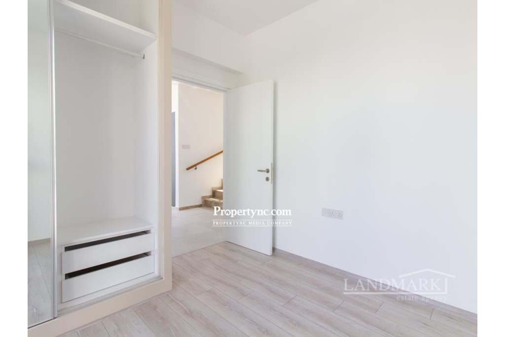 We are pleased to offer this brand-new resale mini villa situated on a lovely, well-maintained small development to the west of Kyrenia. It is set on the mountainside, yet is very close to the sea, which is the beauty of Karsiyaka. The site has a traditional Cypriot style with stones and arches and features yet with a modern internal style. As you approach the entrance you come to a stone wall with an arch that is open. This can be closed to make a porch area. Internally you enter the open-plan lounge and kitchen area. The lounge has a really high ceiling over both levels of the house with extra-large windows that lead out to a terrace area. There is a grey fitted kitchen with wooden worktops and splash back. Two bedrooms both with fitted wardrobes and will share a shower room. There is also a storage room. Marble stairs take you to the second floor which has an open gallery area overlooking the lounge. On the landing, there are fitted cupboards around the washing machine area for extra storage. The master bedroom has an ensuite shower room, walk-in wardrobes and access to a balcony. The villa is also having a spacious roof terrace with a built-in BBQ area and the most amazing panoramic views over the Karsiyaka mountain along the west coast and to the beautiful Mediterranean Sea. This village offers several restaurants in the area, including a local fish restaurant down by the sea called Sirinyali. Sulars and Jessics are also in the vicinity and at the Karsiyaka square, you will find the Park café & and restaurant, the local butchers, barbers and a coffee shop. The green palace restaurant in the mountain and at the Karsiyaka beach you have Vasilia restaurant. You are just minutes away from Lapta village where you have the Lapta walkway, Sardunya beach and an array of other restaurants and facilities. 92m2 Covered area Roof terrace with panoramic views & BBQ Title deed ready to transfer VAT 5% to pay Communal 20m x 10m overflow swimming pool 3-bedroom mini villa Master bedroom on the first floor with ensuite shower room & walk-in wardrobe Family shower room on the ground floor Open plan lounge & kitchen Mezzanine-style gallery landing Storage cupboard Private garden Superb 360-degree views Indoor Gym Pool Bar Showers and toilets & kitchen area at the pool Maintenance fee £25 per month (subject to change) Eco waste system 2000ltr underground water storage and communal back up system Trafo fee £2500 - REF: 626b-3