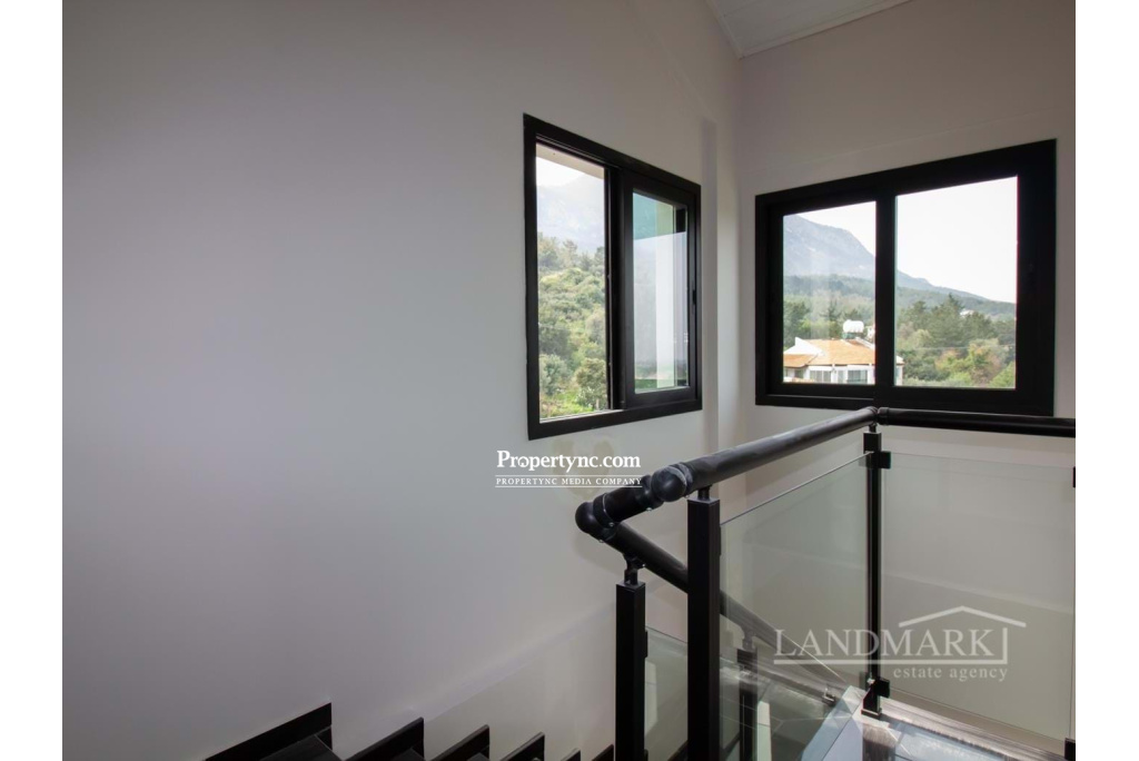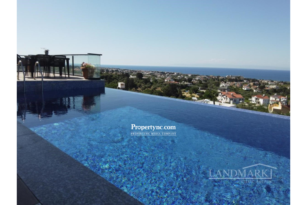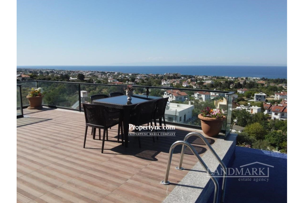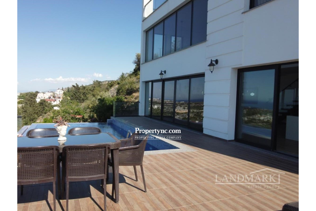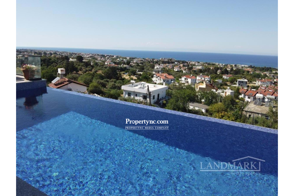 This impressive villa is located in one of the most picturesque places in Lapta village. It sits elevated in the mountain with the most amazing panoramic views across the coastline to the Mediterranean Sea. Very rarely will you find a property in such a location with such outstanding views. The property occupies 3 floors. All the windows in the property are front-facing and every room has a spectacular view. You enter the property on the middle level which is a gallery area and has an open fireplace. On this level, there is one bedroom overlooking the sea with a west and north-facing view. There is also a W C and space for a washing machine. On the ground floor, there is a spacious living room with large panoramic windows with views from Kayalar to Girne. There is access to the pool which is infinity and has a lovely tiled surround and glass railings. There is also the kitchen area, modern with a working station and equipped with high-quality white goods. A family bathroom with a glass walk-in shower. The second floor has 2 bedrooms, the master bedroom is north east facing and is a spacious size with an ensuite bathroom and fitted wardrobes. The master bedroom also has access to a terrace area with mountain and sea views. The second bedroom is north west facing and has a fitted wardrobe. The house is spacious and comfortable with underfloor heating and solar panels on the roof generating the electricity. The villa has a paved drive and goes down to a garage underneath the property. This is an amazing house to enjoy if the views are what you are looking for, set in nature with the beauty of the sparkling Mediterranean Sea. It cannot be emphasised enough what outstanding views this property has, a viewing is a must! 260m2 internal area 1672m2 plot size Exchange title deed Completed 2018 Title deed in the owners name VAT paid Private infinity swimming pool Unfurnished 2 bedrooms on the second floor Master with en suite, 2 family bathrooms & 1 WC Fully fitted kitchen Kitchen Appliances Open fireplace Air conditioning x 4 Underfloor heating Solar panels for electric Garage with a paved drive Stone wall surround Private garden - REF: 1976