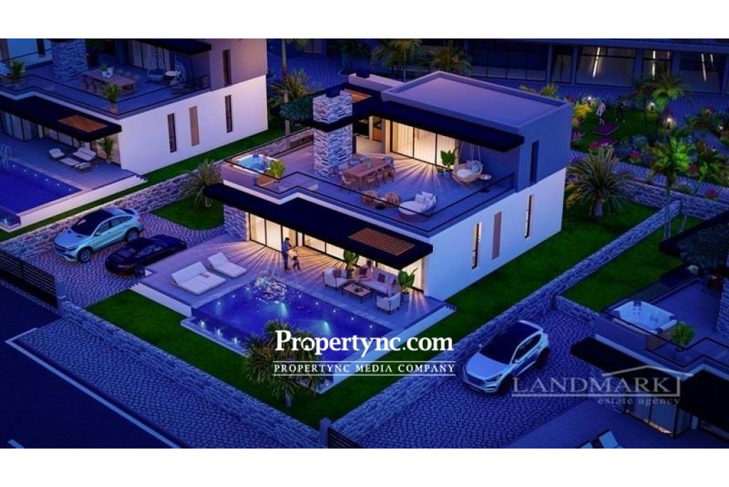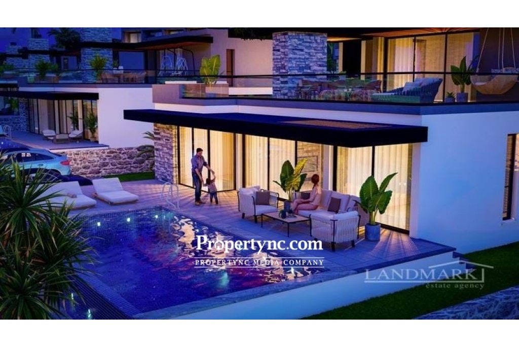 This amazing new project will be built in a very quiet and picturesque area near Tatlisu village. The site comprises of modern apartments and bungalows with a communal pool as part of a new holiday complex, with its own infrastructure of spa center, restaurant, bar, café, indoor playpark, and outdoor playground. Every apartment will have beautiful views of the Mediterranean Sea and the mountains. On the site are also 1,2 & 3 bedrooms apartments and Loft apartments. This is a very exciting project and now is the time to invest! 170 m2 internal area 347m2 including terraces From 535m2 to 735m2 Automatic Central Generator System for all Communal Areas & Houses CCTV Security Cameras in Site Reinforced Concrete Underground Central Water Tanks Fitted Wardrobes in all Bedrooms Italian Stone Kitchen Worktop in all Houses BBQ Area (On Roof Terraces) VRF Air Conditioning System in Bungalows Jacuzzi in Bungalows Infinity Pool in Bungalows Fireplace in Bungalows IP Intercom System in Bungalows Italian Stone for all Bathroom Worktops in Bungalows 2 Units of Parking Space in Bungalows Automatic Remote Controlled Garden Gate in Bungalows Payment plan - 35% at signing the sales contract - 30% until handover date (Approx. May 2026) - 35% after handover date over 36 months interest free SOCIAL AMENITIES 1) Swimming Pool (600m2) 2) Indoor Swimming Pool 3) Pool Bar 4) Mini Market 5) Gym 6) Sauna 7) Snack Bar Café 8) Indoor Game Zone 9) Outdoor Kids Playground - REF: 1271n-1