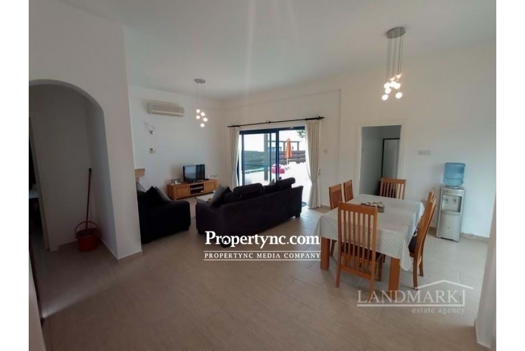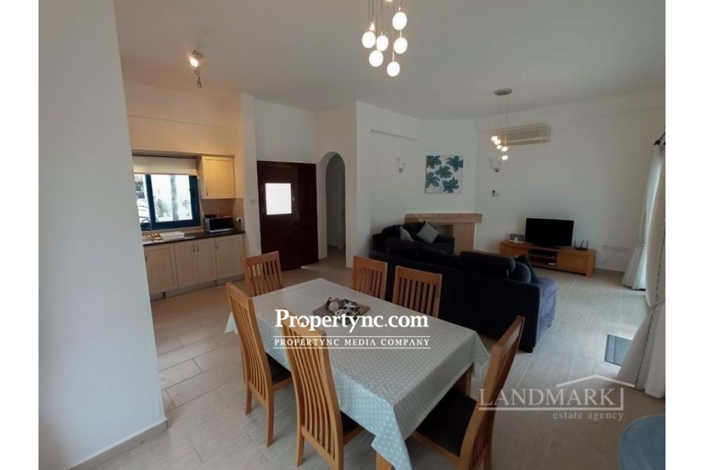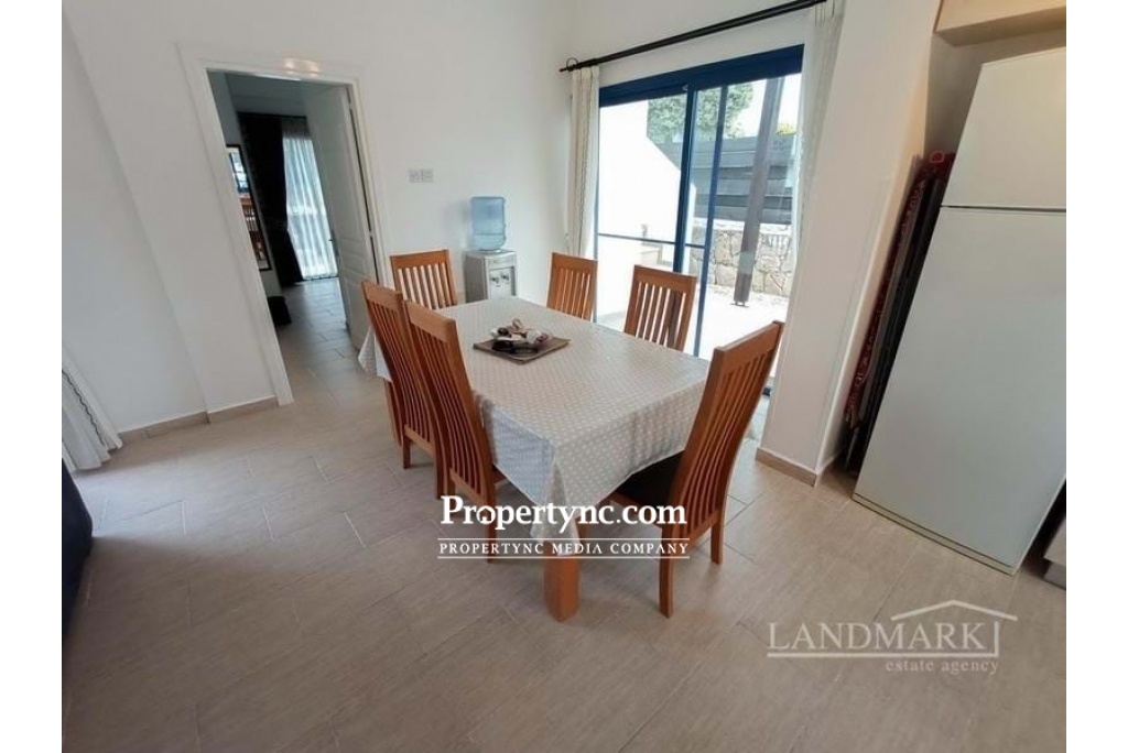 The bungalow comprises of open plan lounge, dining area and kitchen. The lounge has an open fire place and has access to a rear terrace. There are 3 bedrooms all with fitted wardrobes and air conditioning, the master bedroom has en-suite bathroom with shower. The other 2 bedrooms share a family bathroom with bath. Externally there are stairs leading to a roof terrace offering amazing views both to the mountain and sea. There is a communal pool and garden area and this property has direct access to it. The location is perfect for nature lovers and every year you can enjoy the nesting of the turtles as you will be in walking distance to the local Alagadi beach. Internal size 100m² Plot size 650m² Exchange title deed Title deed on the builders name, VAT payable Completed 2010 Fully furnished Communal pool 3 bedrooms-master en suit with shower Fitted wardrobes to all bedrooms 1 family bathroom Fire place in lounge Kitchen appliances Air conditioning x 4 Iron entrance gates Block paved drive Wooden pergola BBQ Maintenance £30 per month - REF: 431f