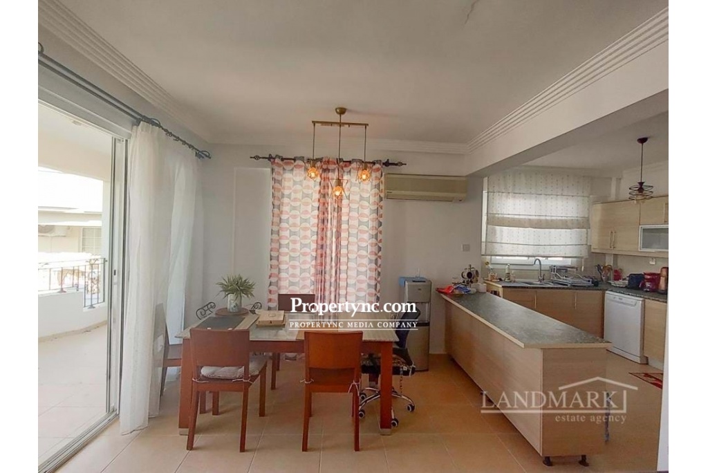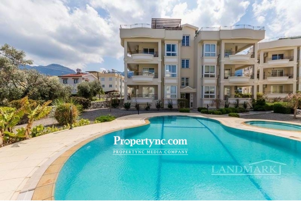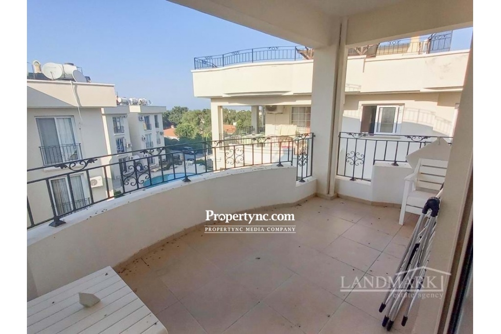 This resale penthouse apartment is located in an idyllic area with sea and mountain views from the roof terrace and is benefiting from a communal swimming pool and gardens. It is a really spacious 125m2 penthouse with 3 bedrooms, the master has an en suite bathroom, a big family bathroom with bath and the third bedroom is having a balcony. The kitchen is open plan complete with a breakfast bar, fitted kitchen units and kitchen appliances. There is a large covered terrace curving around the building from the kitchen to the lounge. You also have a large roof terrace to take full advantage of the lovely weather and the Mediterranean Sea and Mountains. 125m² internal size 70m2² roof terrace Exchange title Title deed in the owners name VAT paid Completed 2000 approx Communal swimming pool 3 bedrooms master is en suite 1 family bathroom with bath Fitted kitchen units White goods Air conditioning Double glazed windows Landscaped communal garden Close to all amenities Maintenance 200tl per month - REF: 325j