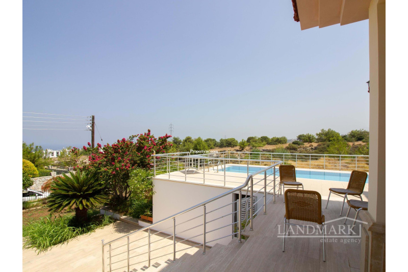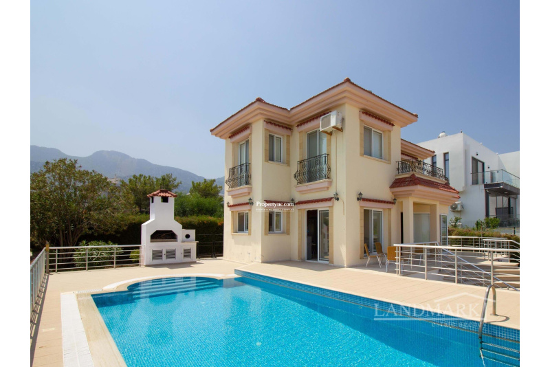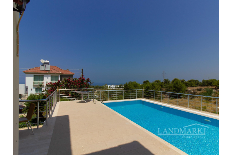 This lovely villa is situated in a quiet neighbourhood of the picturesque village of Catalkoy. The villa enjoys beautiful sea and mountain views. It is comfortably placed in the dead end of the street near the ravine from one side which means that there will be no unwanted construction or new building from the ravine side. The villa has a mature landscaped garden with fruit trees and a private swimming pool with a BBQ area. There is a garage for two cars under the house. It can be turned into a guest house as it has the infrastructure for the shower and toilet. Internally, there is a lounge and a kitchen on the ground floor as well as a WC. The lounge is spacious and has access to the front terrace. The kitchen is well-equipped with good-quality appliances. From the dining area, there is access to the pool area through the patio door. On the first floor, there are three bedrooms and a family bathroom. All the bedrooms are with fitted wardrobes. From the landing and the master bedroom, there is access to the balcony with the sea view. It is a wonderful house ready to move in to live as well as to come for unforgettable holidays. 125m2 internal area 55m2 close garage 640m2 plot size Exchange title deed Completed 2007 Title deed in the owners name VAT paid Swimming pool 8m x 4.5m 3 bedrooms all on the first floor 1 family bathroom 1 W C to the ground floor Master with access to the balcony Fully fitted kitchen Kitchen appliances Open fireplace Air conditioning x 2 (General Electric brand) Central heating infrastructure Fly screens Wooden doors Aluminium entrance door Water well Irrigation system 2 tonnes of water storage Garage for 2 cars, with infrastructure for toilet and shower Stone wall surround Iron entrance gates Mature established garden Sea and mountain views - REF: 2049