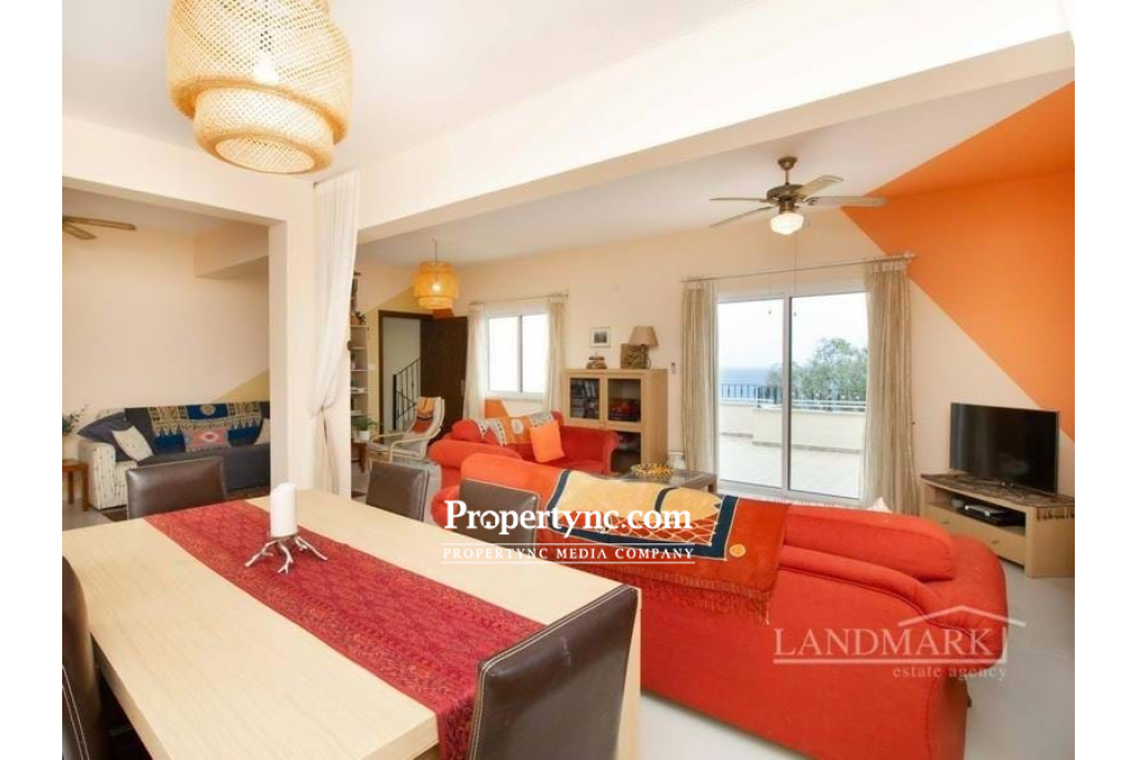 3 bedroom spacious penthouse apartment with communal pool + furniture + white goods +fantastic direct sea views