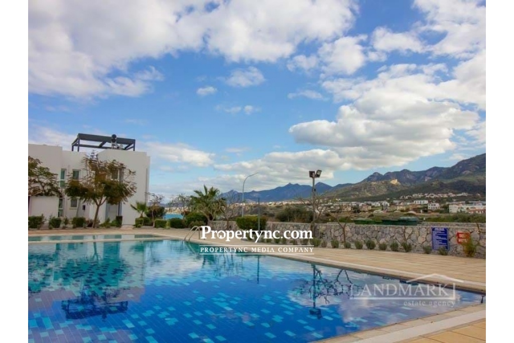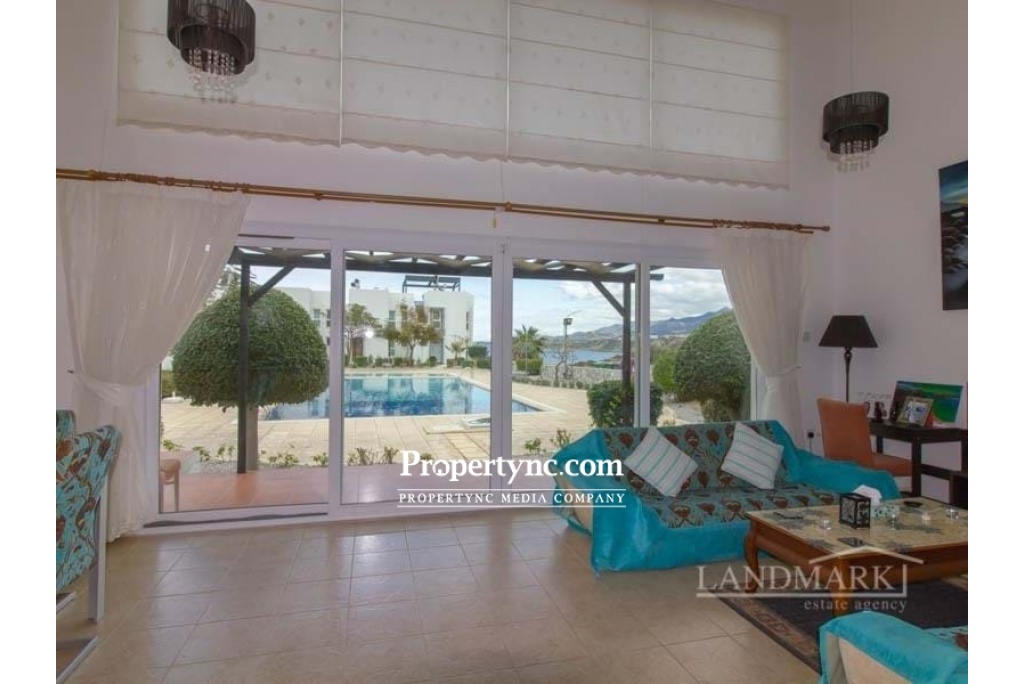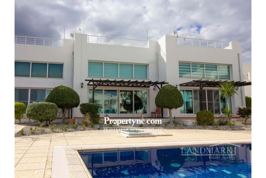 3 bedroom terrace house + direct sea views + communal pool + fully furnished + air conditioning + white goods