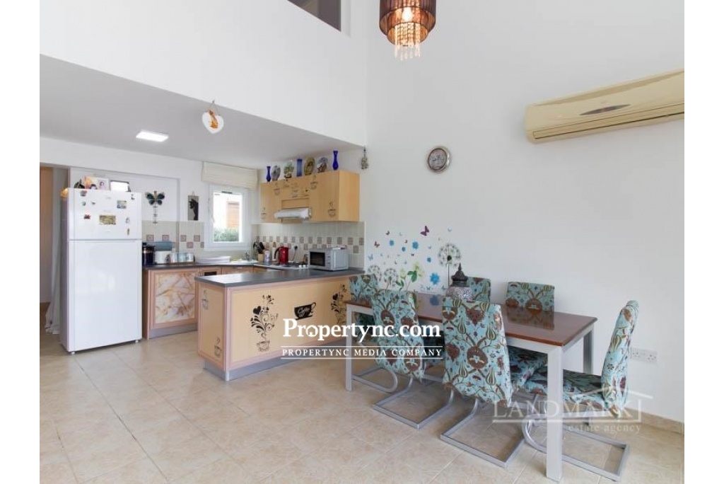 This is a really well-presented terrace villa for sale with a roof terrace on a site of only 14 villas in 3 blocks. All furniture is included in the price, absolutely fully loaded, ready to move in or let out as a holiday home. The villa has 3 bedrooms, 2 bathrooms, and a large roof terrace with wonderful views of the mountain range and views to the sea. The house is well maintained and has a delightful well thought out interior. The lounge is spacious with patio doors leading to a terrace and the pool area, which overlooks the picturesque neighborhood and the mountains. It has a well-equipped kitchen and is open plan to the lounge and dining area. The kitchen and dining area both enjoy beautiful pool and mountain views. One bedroom is on the ground floor with fitted wardrobes. Under the stairs, there is a storage area, which has plumbing prepared for a dishwasher. There are two more bedrooms on the first floor with fitted wardrobes. All the bedrooms have AC units. There are two family bathrooms, one on each floor. The bathroom on the first floor is already equipped with a washing machine. The roof terrace is large and has 360 degrees views of the beautiful surrounding area. The property also has a private garden. The site has a communal swimming pool and childrens pool. It is also within walking distance to the beach and the cool blue Mediterranean Sea. 72m2 internal size Completed in 2008 Title deeds ready to transfer 18m x 6m communal swimming pool and childrens pool Fully furnished (coffee table not included) 3 bedrooms, 2 bathrooms (1 with washing machine) 1 bedroom is on the ground floor, 2 bedrooms first floor plus a roof terrace Open plan kitchen with white goods, fridge freezer, gas cooker, oven Air condtioniong in the bedrooms Roof terrace with sea and mountain views Walking distance to the beach - REF: 676C