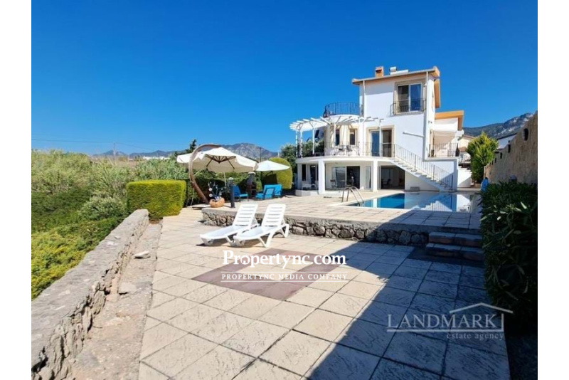 This beautiful villa is located in a tranquil, private and charming area near the sea. The villa is just a short stroll away from the beach, making it the perfect location for those who enjoy spending time at the beach. The villa is also equipped with a private swimming pool and a covered terrace that has a comfortable seating area where you can relax and enjoy the stunning views. As you venture inside, you are welcomed by a spacious entrance hall with a staircase leading to the upper floors, as well as a terrace with a breathtaking view of the sea. On the lower floor, you will find its living room, separate, fully equipped kitchen and a spacious dining area. Additionally, there is a covered veranda overlooking the sea, a bedroom, and a family bathroom. The top floor features the private master bedroom with an en-suite bathroom and an expansive, picture-like window that offers a mesmerizing view of the sea. There is also a terrace on the same floor that allows you to experience the beauty of the sea and the captivating mountain views. The property also features a spacious ground with large patio doors and windows, providing ample natural light and fantastic views of the surroundings. This area offers an incredible opportunity to create two additional bedrooms, as there is already a guest bathroom available. Additionally, it is possible to easily create a second kitchen, a cinema room, a gym, or even a yoga space with a stunning view of the sea. Not only is it spacious and stylish but also offers an incredible opportunity to create your dream home. The villa is located in a picturesque and quiet area, providing an idyllic setting for families or individuals who desire a peaceful and serene environment. This villa is the perfect destination for anyone who wants to relax, unwind, and enjoy the beauty of the sea. 120m2 upstairs internal area 140m2 ground floor area 450m2 plot size Completed 2006 Title deed in the owners name VAT paid Swimming pool 5m x 10m 3 bedrooms Possibility of 2 optional bedrooms on the ground floor 2 family bathrooms 1 en-suite in master bedroom Fully fitted kitchen Kitchen appliances Utility room storage room Open fireplace Air conditioning x 4 Central heating throughout the main house Spacious ground floor Stone wall surround Mature established garden 5 water irrigation spots Sea and mountain views Walking distance to the sea Maintenance - £30 per month Short-term payment plan negotiable - REF: 2054