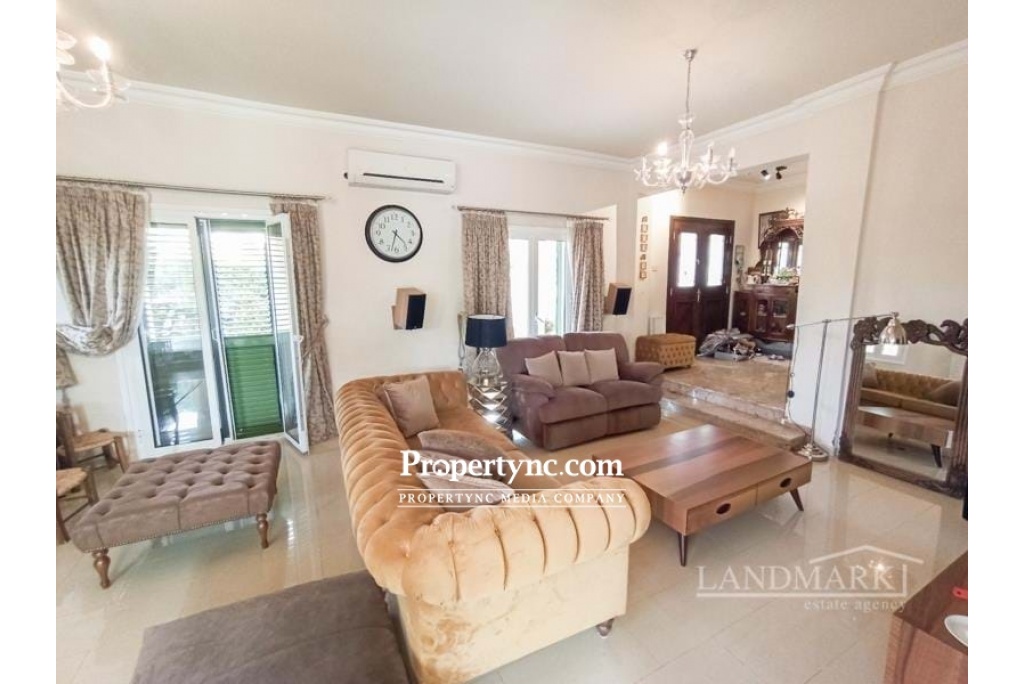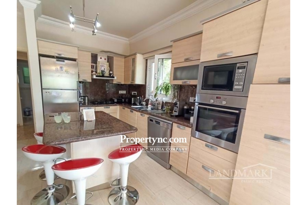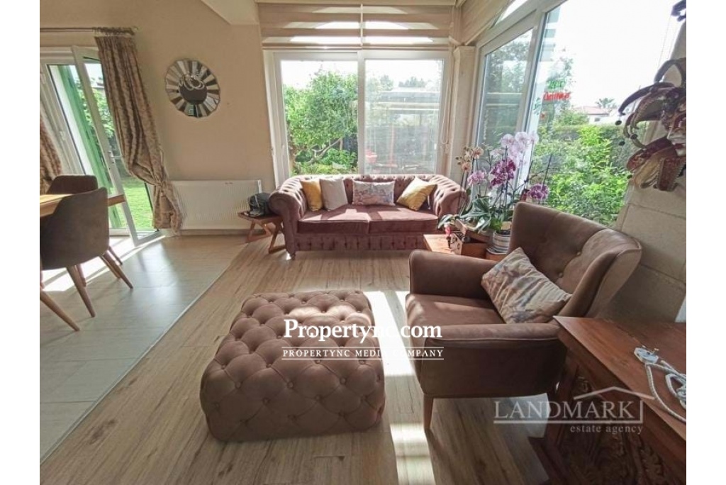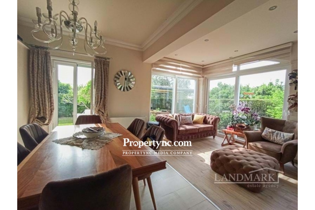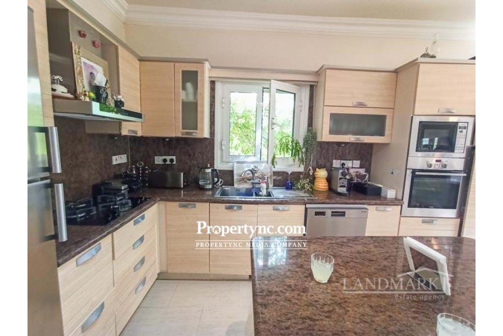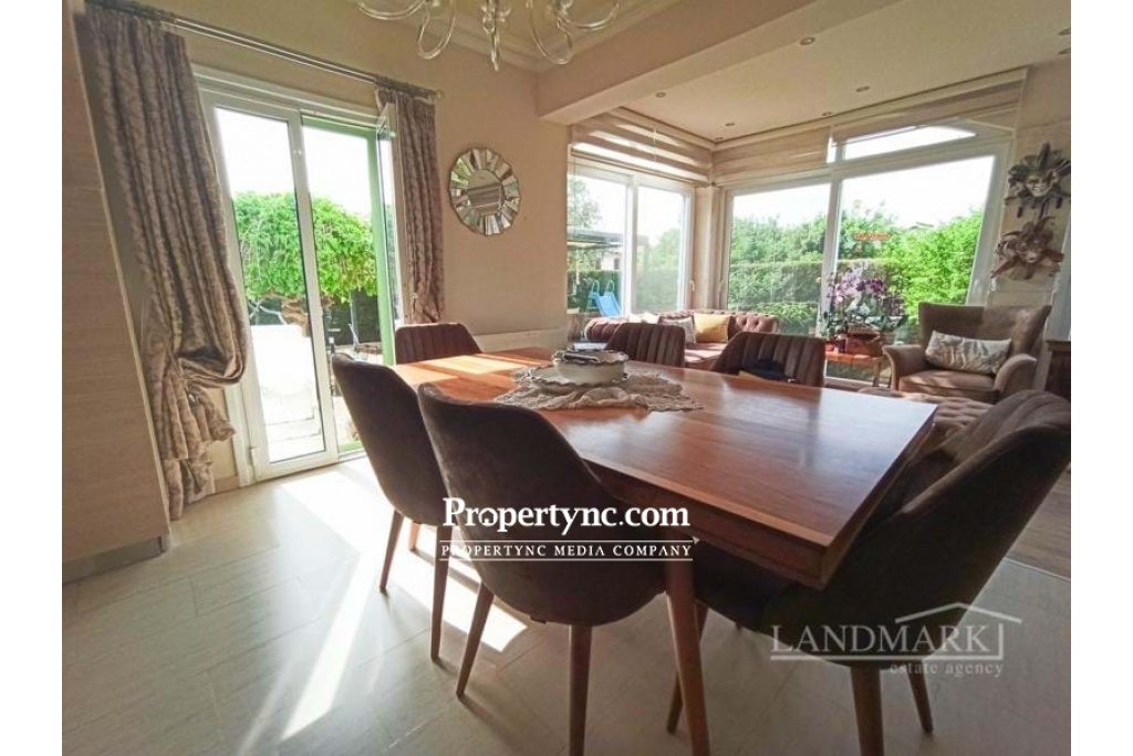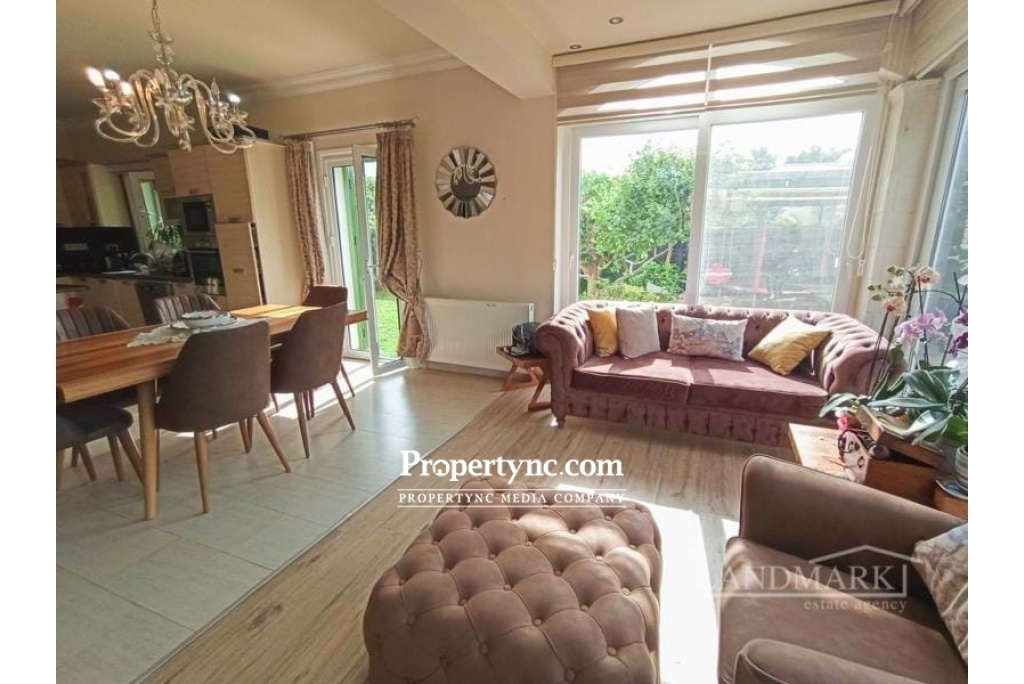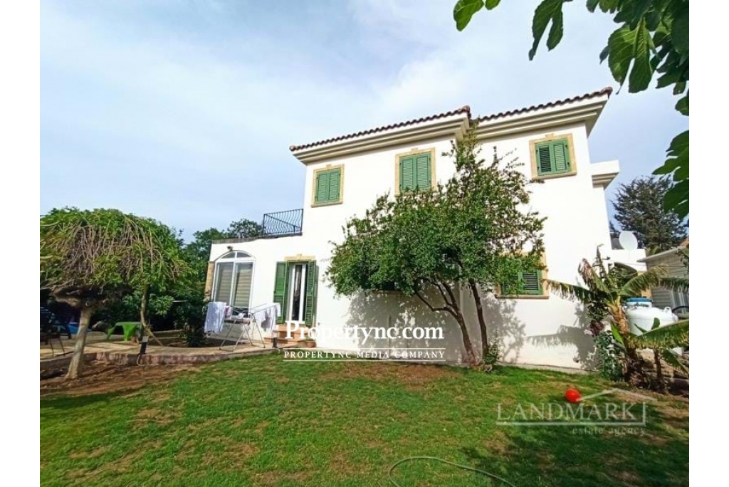 This beautiful villa is situated in a quiet secluded residential area in Karaoglanoglu close to Girne American University. It has 2 stories a large covered terrace to the front of the house and a lovely mature garden with lawn. The lounge has big windows overlooking the garden allowing a lot of light. The modern fully fitted and well-equipped kitchen is open to the dining area and the lounge. There is also a utility room and a guest WC. There are three bedrooms on the first floor and a family bathroom. The master bedroom has an en-suite bathroom. It also has a large walk in wardrobe. The house has a central heating system connected running on gas. There is a large covered pergola used as a playground in the garden. This lovely property is centrally located close to all amenities. 220m2 internal area 690m2 plot size Title deed ready to transfer VAT to pay Exchange title deed Completed in 2016 3 bedrooms 1 bedroom with ensuite bathroom with a walk-in wardrobe 2 further bathrooms Fireplace Open plan kitchen with a dining area Fully fitted kitchen White goods Granite kitchen worktops Gas central heating Fly screens Shutters Solid wood entrance door Utility room Garden with trees and hedge Irrigation system Water well Natural stone wall surround Car port for 1 cars and parking - REF: 1787