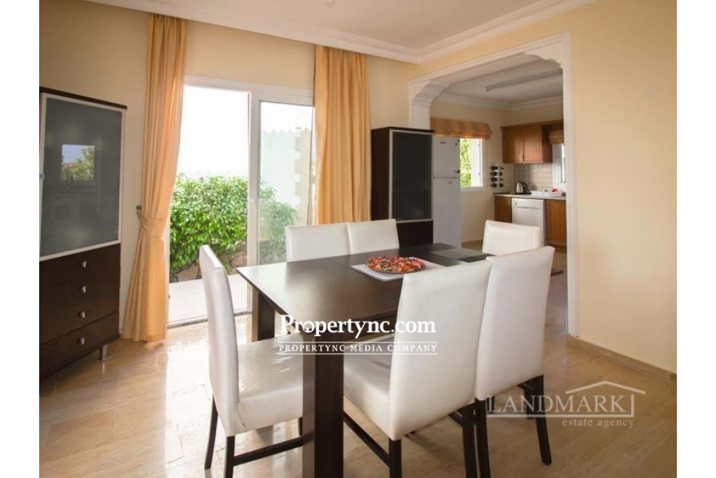This beautiful 3 bedroom villa is comfortably located on a site with apartments and just 2 villas sharing a communal pool. Located close to all amenities such as supermarkets, restaurants, pharmacies, schools, municipality which are all located nearby. Internally on the ground floor, the villa has an open plan area where the lounge, dining area, and a well equipped kitchen and well organised. On the ground floor, there is also a utility room and a bathroom. From the dining area, there are patio doors leading to a terrace that overlooks the garden with picturesque mountains views. All three bedrooms are located on the first floor. The master bedroom is spacious with a walk-in wardrobe and has an en-suite bathroom. It also has access to a balcony with a sea view. The two other bedrooms both have fitted wardrobes and share the family bathroom. One bedroom has a balcony with an amazing mountain view. There is also a spacious terrace area accessed from the landing. The villa has a well-maintained garden with a BBQ, sitting area. The garden is mature and easy to maintain with different kinds of plants and trees, making the garden your private paradise. The villa is surrounded by a stone wall with iron entrance gates and private parking. It has wonderful views of the mountains and the sea. Approx. internal 142m2 360m2 plot size Completed 2010 Exchange title The title deed is on the owners name VAT paid 10m x 5m communal swimming pool Furnished 3 bedrooms Master bedroom is with en-suite and walk-in wardrobe 2 family bathrooms 2 terraces + 2 balconies Fitted kitchen with white goods Air conditionings x 3 Open fireplace Marble flooring throughout White PVC double glazed windows 3 tonnes of water storage BBQ Landscaped garden Parking place Excellent sea and mountain views Communal fees £20 per month or there is room for your own pool if required - REF: 642f-1