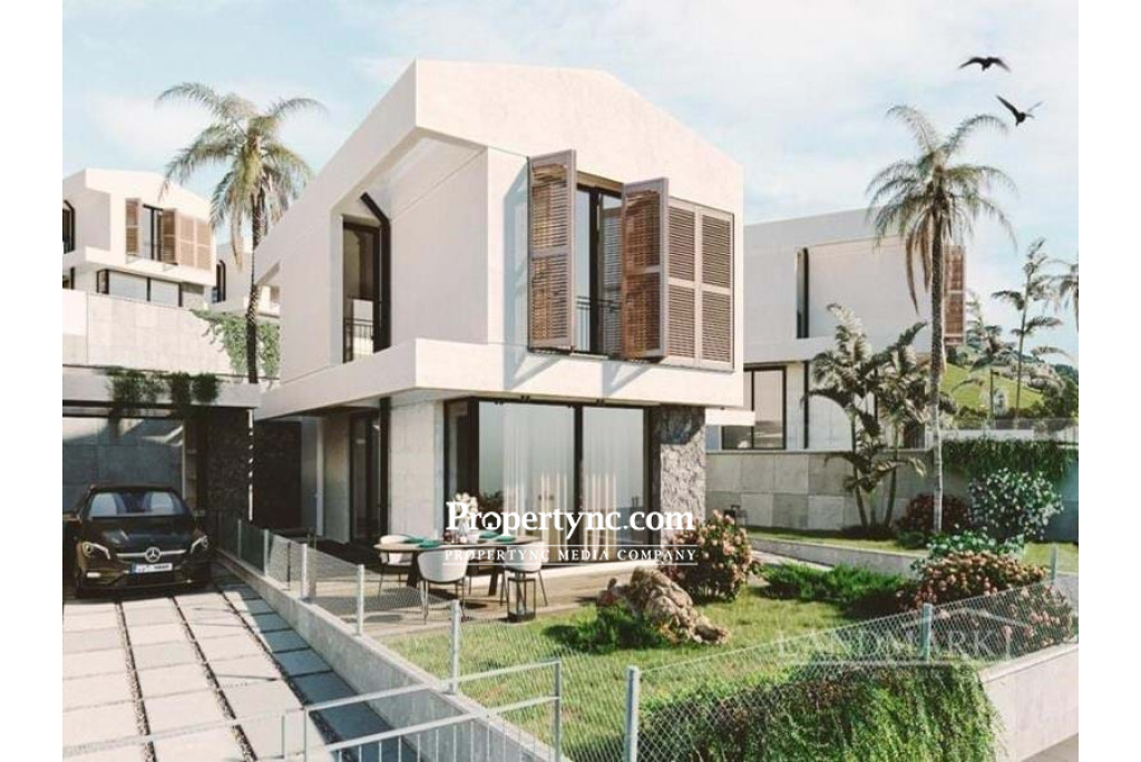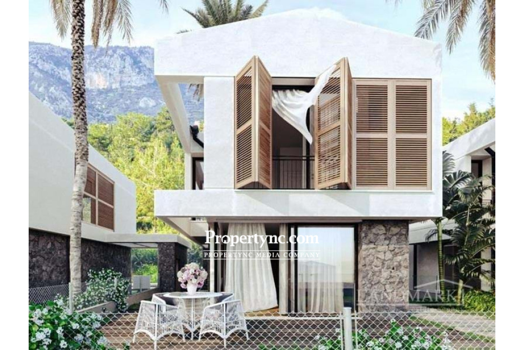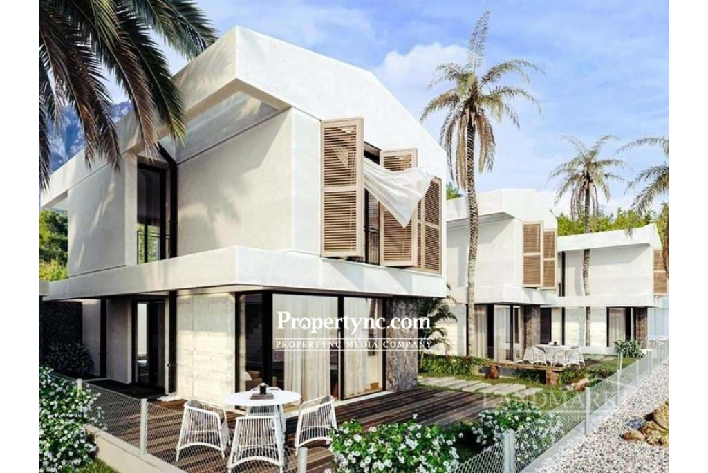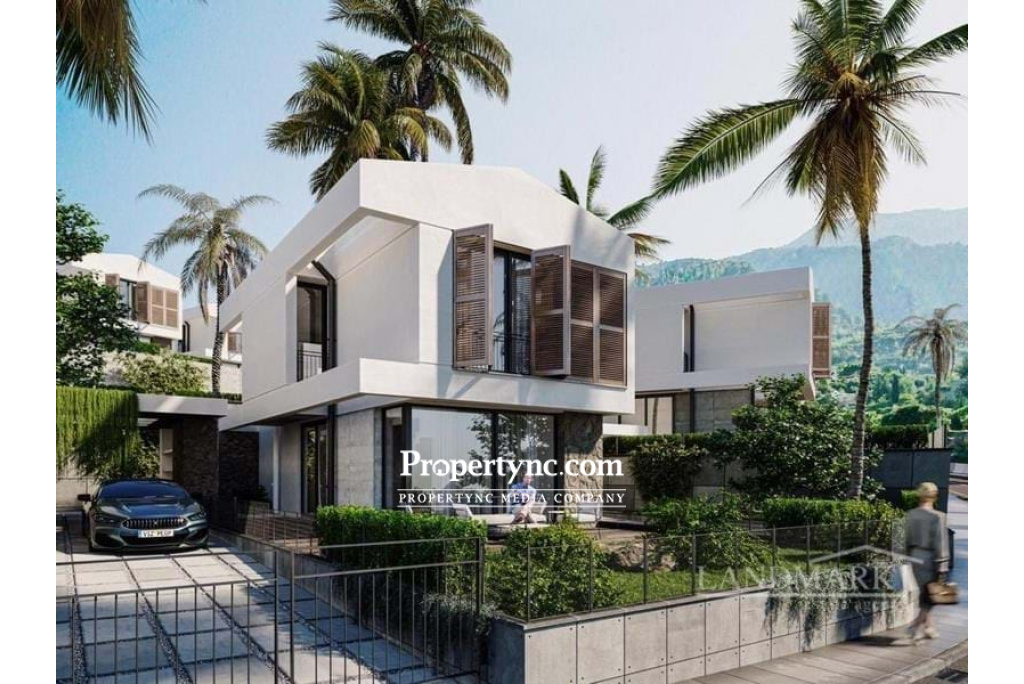 A brand-new concept of design will be built in the Mediterranean facing the sunset in the west. It has an impressive village design in its physical features. The rural spirit brought by the forests blended with modern minimalism to put a stop to the chaotic life with its finely designed project. While the hardly visible geometric forms in the area are turned into an iconic symbol of modernism using regional local crushed stone, exposed concrete on the eaves and white walls reflecting the Mediterranean sun bring this project together. Located 1 km south of the center of Alsancak, and neighbour to the upper boundary of Incesu Village and forest, this project is easy to reach the developing Alsancak and its surroundings. It is 5 km to Kyrenia and thanks to the motorway, access to other cities has now been made easier. Offering a quiet and peaceful life away from the crowd, in the countryside next to the forest. There will be direct access to the communal areas from each house, a communal pool and terraces for sunbathing, communal WCs, showers and a pool café bar which are overlooking the mountains and views of the sea which are just poetry in motion. Local landscape designs used in the gardens of the houses are also used in communal areas. Using 1st class quality materials in the houses, central heating and cooling systems, built-in shower systems, wall hung toilets with concealed cisterns which have become the standard materials used by the company. The project consists of 32 units in total. 20 villas are 175m2 with 3 bedrooms and 12 townhouses are 110m2 with 2 bedrooms. 175m2 internal area Completion July 2024 Exchange title deed VAT to pay Communal swimming pool 3 bedrooms 3 bathrooms (1 en-suite) Central cooling heating system Double glazed insulating aluminium joint window system Built-in wardrobes in bedrooms Parquet flooring, marble or ceramic flooring for various parts in the house Sanitary ware reducing water waste Water Booster Pump Custom-design suspended ceiling and lighting systems Complex lighting Infrastructure for satellite, internet and phone Hot water heater with solar power Nature-friendly material use from bricks to the paint Stone paving on the exterior elevation Pool café bar Green space design Car parking space Trafo fee £2.000 Location: Sea (Camelot Beach) 1 km Nejat British College 0,3 km Merit Royal Hotel & Casino 0,7 km Restaurants and Cafes 0,5 km Payment plan: 35% down payment 65% on key handover - REF: 1771c-2