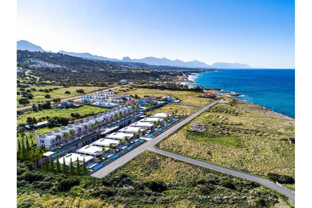 From the project to Esentepe beach – 150 meters walking distance To Kyrenia center – 25 min To ESK school, the most elite primary education & college of Kyrenia – 25 min To Suat Günsel hospital – 20 min To Ercan airport – 35 min To Nicosia center – 50 min. min To Famagusta center – 40 min To Korineum Golf Resort hotel – 9 km / approximately 8 min (It is the first and only Resort Hotel in Northern Cyprus with an international golf course. It includes Korineum Boutique Hotel (Residence & Elite Buildings) and an 18-hole championship golf course and a 3-hole academy course)