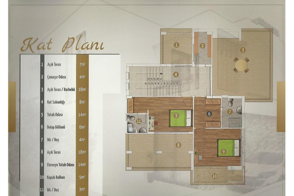 Detached 2 floors villa, 3 + 1, 210 m2 with roof t...