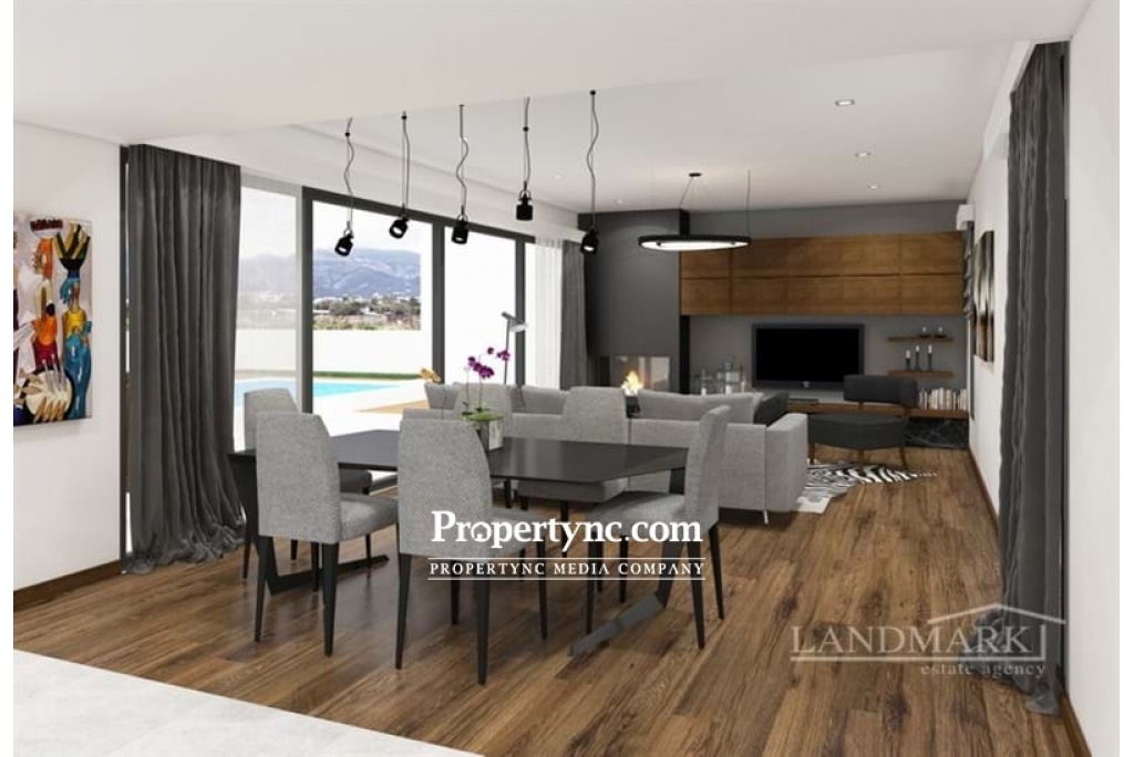 This is an off-plan project located in Catalkoy only a short walking distance to the sea and 2 popular beaches. There will be 10 villas on the site in total, with 3 types to choose from: 4 villas of 3 bedroom detached Type B, 2 villas of 3 bedroom semi-detached type C & 4 villas 4 bedrooms type A. These are Type A, 4 bedroom villas that will have a modern design and will include swimming pool, kitchen, central heating, air conditioning, fire place and will have a cellar. Luxury will be your living style. Completion date of the project is September 2019. Payment plans are available. Type-A (4 Units) 360m2 Area Exchange title deeds Completion September 2019 Private 5m X 10m swimming pool Cellar 4 Bedrooms all to the first floor 2 en-suite bathrooms on the first floor 1 family bathroom on the first floor 1 W C on the ground floor Central heating system Air conditioning system Fireplace with glass cover Fitted kitchen Natural marbles, Ceramics, Parquets flooring Double glazed heat insulated aluminium doors and windows Timbered wardrobes Flat cabin shower with thin glass cover Washbasin cabinets Wall hung WC pan Steel exterior entrance door Timbered interior press door Glass railings on balconies Decorative gypsum board suspended ceilings Heat insulation Water insulation Exterior aluminium composites with timbered figure Outdoor ceramic on the terrace with timbered figure Payment Plan 1: Minimum 25% down payment on the agreed sale price, then we sign the contract of sale, Remaining 75% payment as equal monthly instalments or as interim instalments until the completion date of the project (December 2019). Payment Plan 2: Minimum 25% down payment on the agreed sale price, then we sign the contract of sale, 35% more payment as equal monthly instalments or as interim instalments until the completion date of the project (December 2019). Hereby 60% payment amount will be completed. Remaining 40% payment on the completion date of the project (December 2019) as cash. - REF: 1271b-2