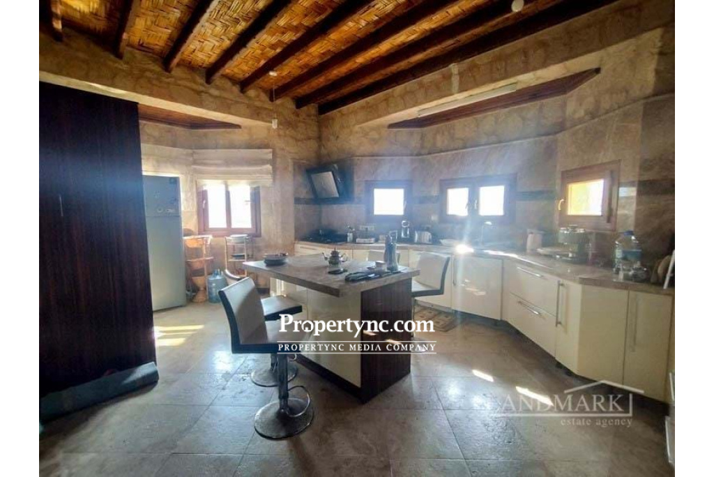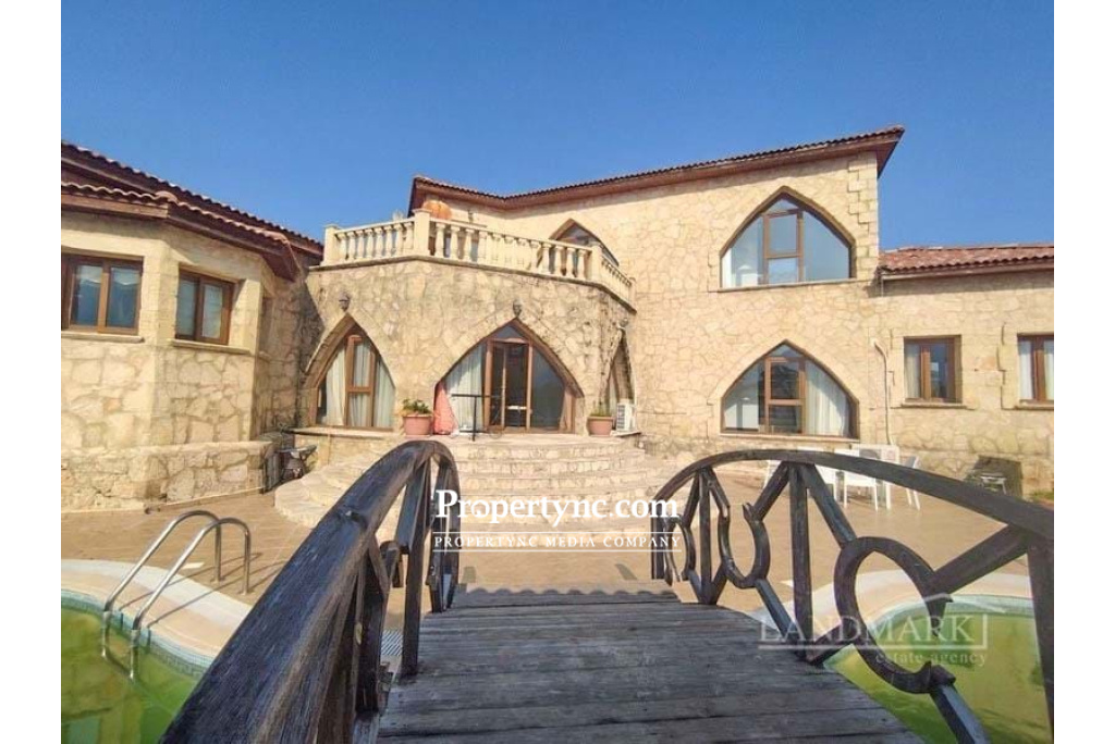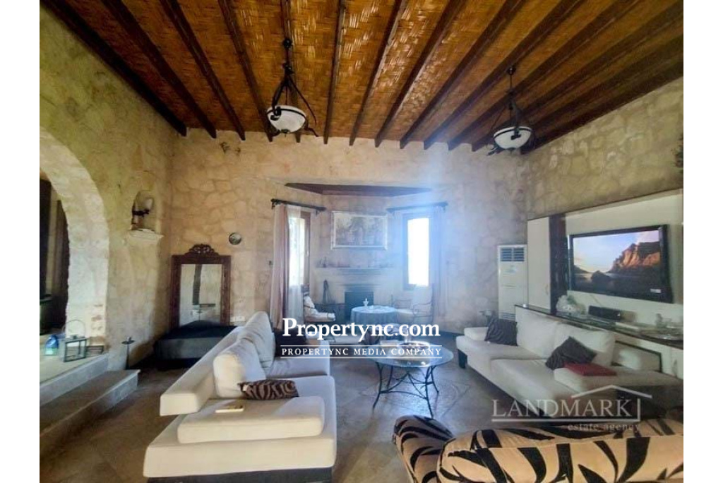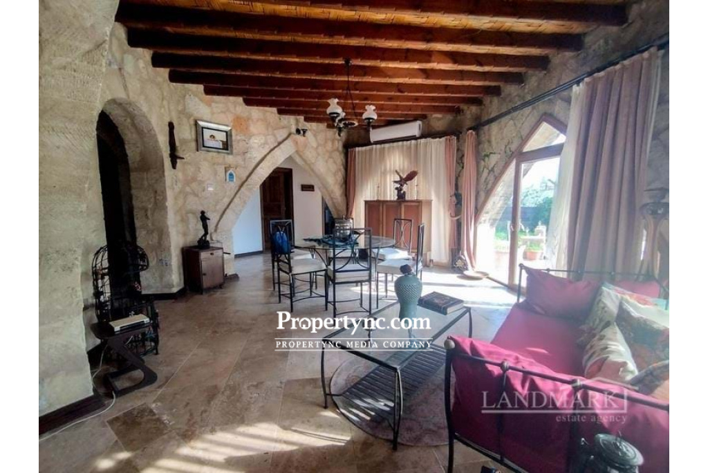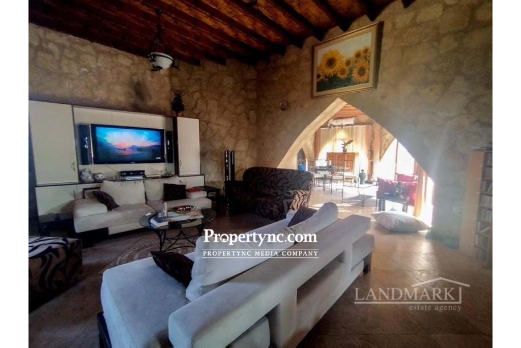 If you are looking for a unique home with character, reflecting the Cypriot way of living, then you will love this charming stone built house! Situated in the heart of a Cypriot community - Karsiyaka and is within walking distance of the sea (just 150 metres). It has an impressive lounge which is the heart of this beautiful home, offering an open fireplace. A separate kitchen and dining room are also an advantage of this house. Three bedrooms on the ground floor and two of them with en-suite. There is also a cellar and laundry room which are great extras for the property. Marble stairs are leading up to the first floor where the master bedroom is located. There is access to a big terrace which is taking advantage of the views of the Mediterranean Sea. There are beautiful traditional arches and beamed ceilings in keeping with the Cyprus style. Outside the garden is landscaped is private with a garage. There is an unusually shaped swimming pool with bridge access to an entertaining area in the middle. 414m2 internal area 1550m2 plot size Exchange title deed Title deed in the owners name VAT paid Private swimming pool 4 bedrooms 4 bathrooms (3 en-suite) 2 bedrooms with walk-in wardrobes Separated kitchen Dining room Cellar room Laundry room Fully fitted kitchen Kitchen appliances Air conditioning Fireplace in the living room Central heating system infrastructure Room doors are custom-made wooden Travertine and marble floor tiles Closed garage Gazebo and BBQ area Stone wall surround with automatic entrance gate Mature established garden - REF: 1973