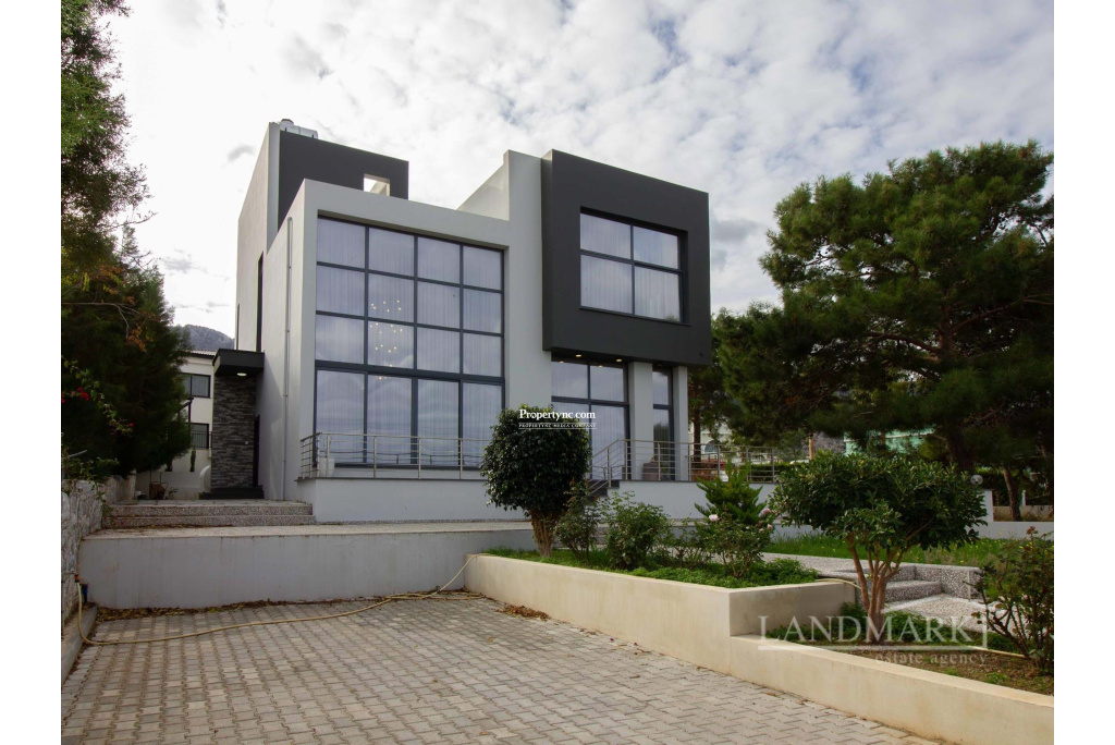 This stunning villa is nestled in a picturesque area of Catalkoy village, boasting fantastic sea and mountain views. It's in a quiet, prestigious area, conveniently close to essential amenities. The new villa showcases a modern design and spacious interiors with high ceilings and large windows, perfect for admiring the breathtaking views. It features two expansive terraces; one leading to the lush garden on the ground floor and the other on the roof, offering panoramic views of the scenic neighborhood, sea, and mountains. The garden includes ample parking space for 2-3 cars. Inside, the entrance hall is tastefully furnished with unique, custom-made ceiling spotlights, leading into a stylish lounge with large windows and high-quality furniture. The dining area opens onto the garden terrace, while the separate, well-equipped kitchen features modern furniture, white goods, and a central island, with access to the garden through a patio door. The ground floor also houses a guest room and a bathroom. The first floor holds a master bedroom complete with a walk-in wardrobe and ensuite, offering splendid views of the Mediterranean Sea from a large window. The second bedroom features a floor-to-ceiling fitted wardrobe and an ensuite. The third bedroom also boasts a large fitted wardrobe, an ensuite, and a balcony. A rooftop terrace provides panoramic sea and mountain views. This exquisite house offers a rare blend of style, luxury, and comfort, nestled amidst nature's beauty. 260m2 internal area 760 m2 plot size Completed 2020 Land title deed in the owners name VAT to pay 4 bedrooms, three to the first floor, one guest room to the ground floor 3 en suites 2 walk-in wardrobes 1 W C to the ground floor Master with walk in wardrobe and ensuite Fully fitted separate kitchen High quality kitchen appliances High quality modern furniture Custom made spotlights Utility room Air conditioning x 6 Roof terrace Balcony Irrigation system 5 tonnes of water storage Car parking for two cars Stone wall surround with iron entrance gate Green garden Sea and mountain views - REF: 2106