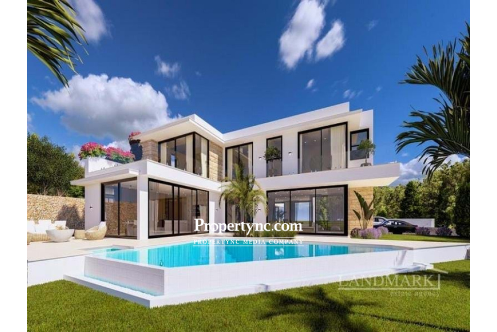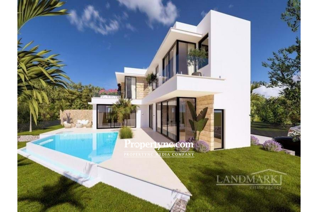 4 bedroom brand new modern design villa + private pool + large plot size Title deed in the owner’s name VAT payable