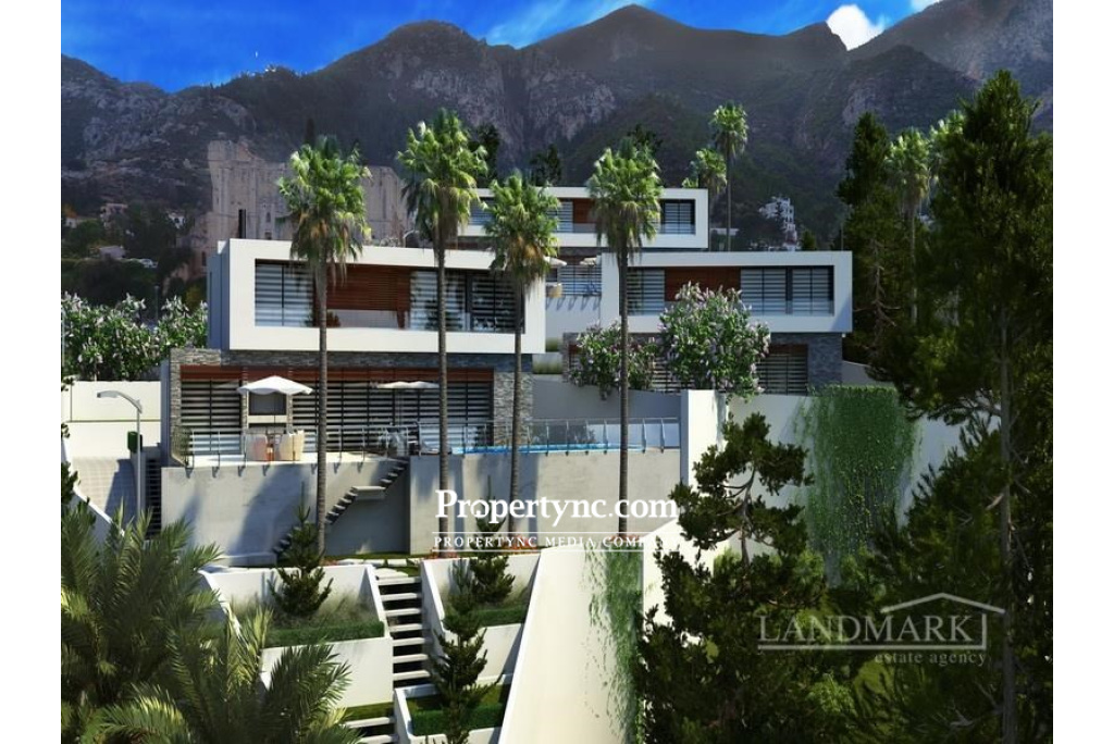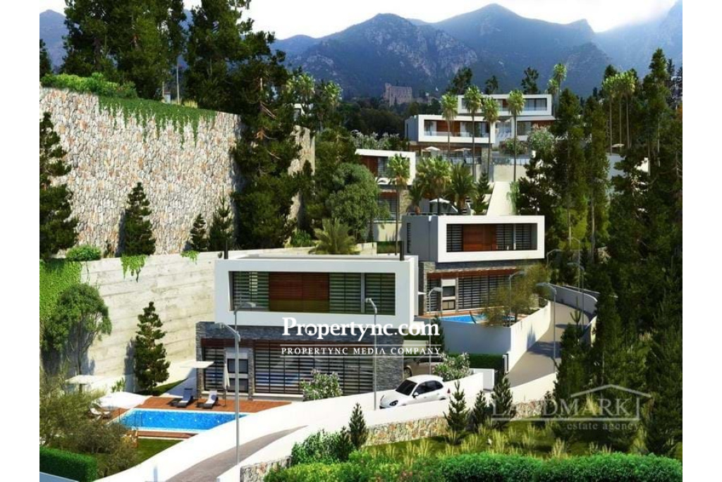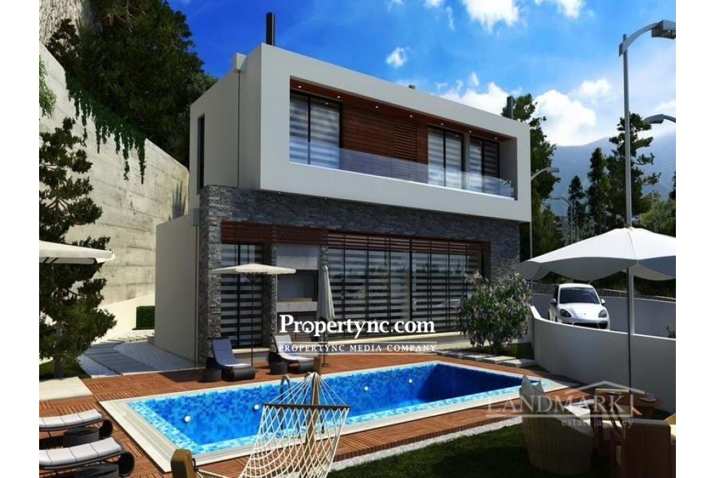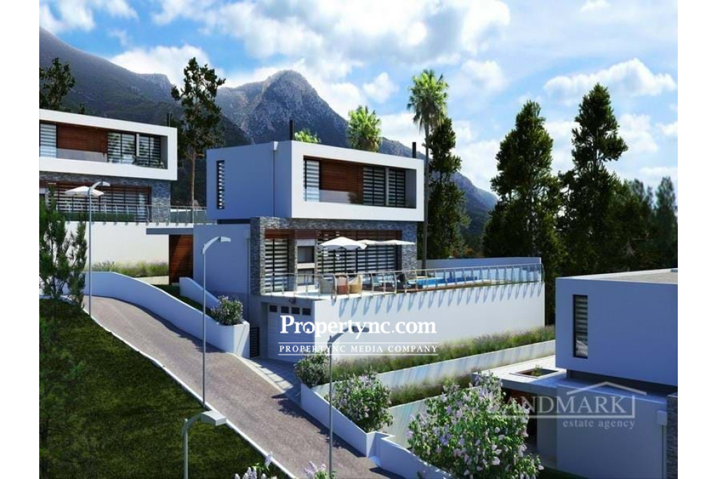This fabulous new project will be built by one of the top construction companies. You will find this exciting new development in one of the most demanded areas of Kyrenia «Bellapais» and will be built with a luxury design and each villa will offer breath taking views of the Mediterranean Sea and mountains. These modern villas are built in keeping with the historical serenity of Bellapais. The project will consist of only 8 modern detached 4-bedroom villas with a good-sized plot and a private swimming pool and garage. Internally, the villas will be very spacious and have been designed for convenience and will be completed using top quality, stylish and tasteful materials making the villa harmonious throughout. On the ground floor, there will be a lounge with a fireplace, open plan to a fully fitted kitchen with a porcelain effect island and worktops. The lounge will have large sliding patio doors that can be moved completely to the side and offer great views into the beautiful landscaped garden and terrace area with a swimming pool. There is also a bedroom with en-suite, a utility room and a family bathroom on the ground floor. On the first floor is a large-sized master bedroom with walk-in wardrobe and en-suite and a further 2 bedrooms sharing one bathroom. Externally, each villa will have its own private swimming pool and a garage with remote control door. Type A will have access to a basement area. 435m2 internal area (A type) 295m2 internal area (B type) 720-1000m2 plot size Turkish title deed VAT to pay Completion October 2024 Private swimming pool 4 bedrooms (1 on the ground and 3 on the first floor) 2 family bathrooms (one on each floor) 2 en-suite bathrooms one on each floor Master bedroom with walk in wardrobe Fitted wardrobes in bedrooms Utility room VRF heating and cooling Uniquely designed suspended ceiling and lighting systems Natural lighting in orientation with the house Steel staircase and indoor garden «Hansgrohe» sanitary ware reducing water consumption 5-Ton water tank Pressure Tank System Video Intercom System Main door with thermo- and sound isolation Green Landscape Site lighting Enclosed garage and remote controlled garage door Extra payment: Trafo fee £4.000 for «A type» £3.000 for «B type» Payment plan: 35% down payment 65% on key handover - REF: 1771d