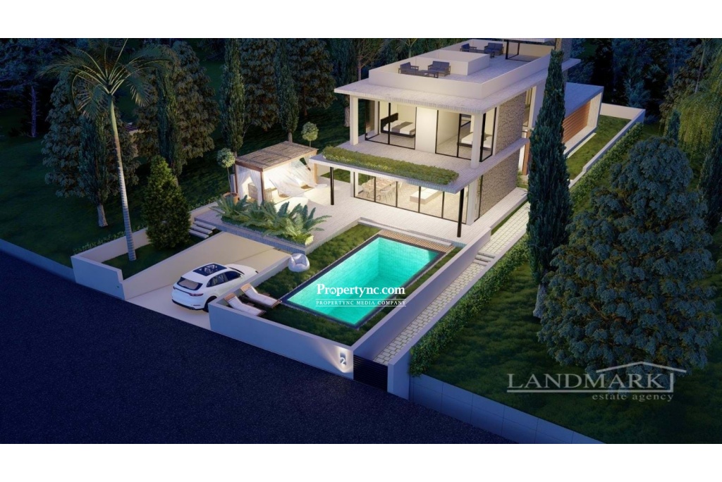 This is a rare opportunity to find a luxury villa site in such a very popular and demanded area of Kyrenia, with views that will never be closed. There will be 6 villas for sale, each having 4-bedrooms with a private swimming pool and will be situated plot sizes ranging from 516m2-705m2. Each villa will have outstanding sea views overlooking Kyrenia city and the Mediterranean. The project is located in a picturesque development in an elevated forest area of Kyrenia. The ground floor will have a high-quality fully fitted kitchen, spacious sitting area, 1 bedroom that can be used for office or activity, and a winter garden. The 1st floor will have 3 bedrooms with panoramic views all having ensuite bathrooms and private terraces to take advantage of the spectacular views. Each villa will also have a large roof terrace and will have plenty of space to arrange a sitting place with BBQ to enjoy the breath-taking sunsets or even sunrise. All villas will have a 101m2 basement area with a closed private garage. Beautiful landscaped gardens will surround the villas and they will all have a swimming pool with plenty of sunbathing areas and they will be placed in front of the villas. Type A 421m2 Terrace100m2 Type B 349m2 Terrace 70m2 Roof terrace Basement area 516m2-705m2 plot sizes Exchange title deed VAT to pay Completion approx. March 2024 8m x 4m swimming pool 3 bedrooms on the first floor all with en-suites 1 bedroom study on the ground floor with access to W C Including option of VRF, Split A C unit or heat pump cooling heating system Underfloor Heating Separate kitchen with private designed kitchen units Aluminium double glazing Water heating & solar panels for water heating Landscape and garden Winter garden Generator room with generator Cameras On the Garden Closed private garage area with automatic doors Sunset sea and mountain views - REF: 1727f