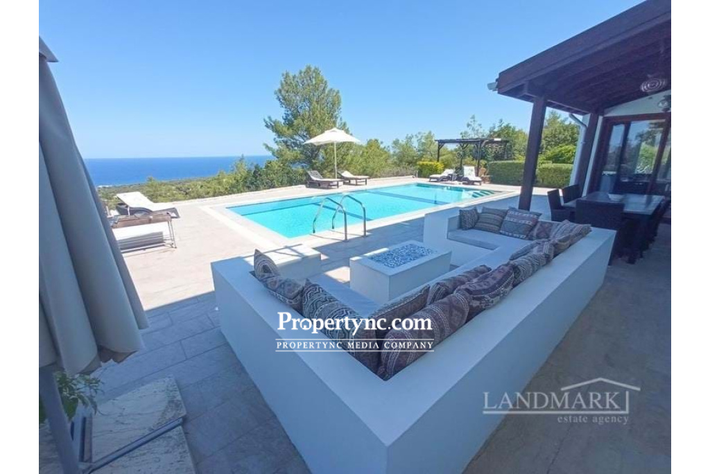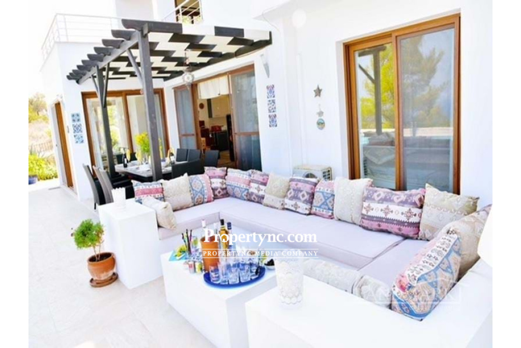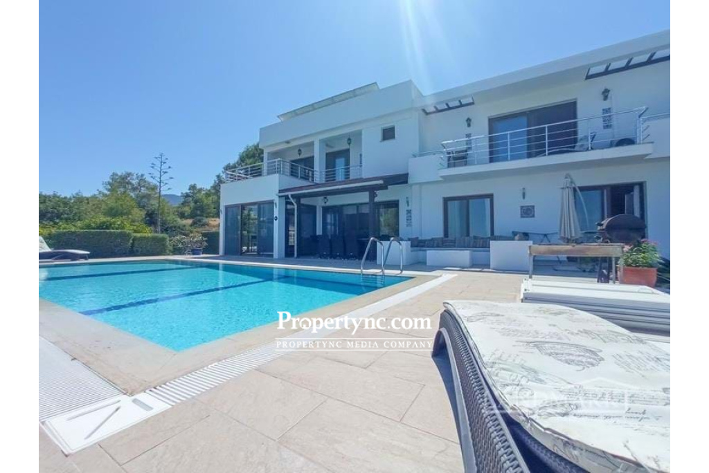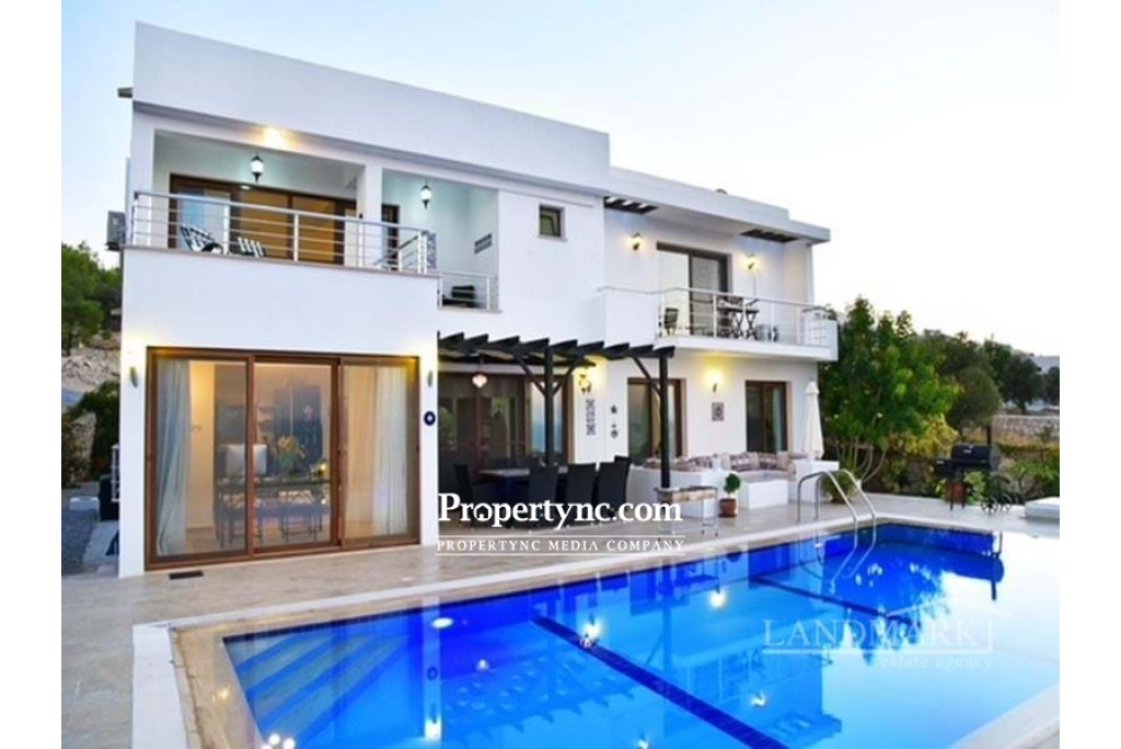 We are excited to present this extraordinary villa situated on the picturesque cliff in the charming area of Karaagac. This stunning property is nestled within a small, exclusive site and occupies a prime location at the end of the complex, ensuring maximum privacy for its residents. One of the highlights of this villa is its front garden, where you can bask in the warm sun while savoring a freshly brewed cup of coffee. Step inside, and you will be greeted by an inviting open-plan kitchen, complete with state-of-the-art appliances. The spacious lounge area is perfect for relaxation and features a cozy log burner, creating a warm and inviting ambiance. You can also access the terrace at the back of the villa through elegant patio doors, providing seamless indoor-outdoor living. The back terrace is a true oasis, boasting a refreshing pool and not just one, but three distinct dining areas. Whether you prefer an intimate dinner with a loved one or a festive gathering with friends, there is a perfect spot for every occasion. And let's not forget about the breathtaking sea view that accompanies each dining experience. As you explore the villa further, you will discover two tastefully designed guest bedrooms on the ground floor. These rooms share a well-appointed family bathroom, ensuring comfort and convenience for your guests. Moving up to the first floor, you will find the luxurious master bedrooms, each complete with its own en-suit bathroom. Additionally, there is a convenient storage room to keep your belongings organized and out of sight. Both master bedrooms also have direct access to the same terrace, providing a tranquil setting to enjoy the mesmerizing sunsets that grace this remarkable location. This property also has a solar panels which can produce approximately 20,000 kW per year. 200 m2 internal size 100 m2 terraces 700 m2 plot size (approx.) Completed: 2007 Refurbished: 2022 Exchange title deed Title deed in the owners name, VAT paid Swimming pool 10 m2 x 5.5 m2 Fully furnished 4 bedrooms 2 on the ground floor with fitted wardrobes and 2 on the first floor 2 en-suit bathroom on the top floor & 1 bathroom on the ground floor Fully fitted kitchen with granite worktops White goods Marble floors Central heating infrastructure Double-glazed windows and patio doors Storage area under the staircase Utility room 7 tons water storage Garden shed Car port Iron gates 5.4 KW solar panels 3 outside dining areas Magnificent sea and mountain views Optional: Nissan Note (2016) for £5,000 - REF: 399h
