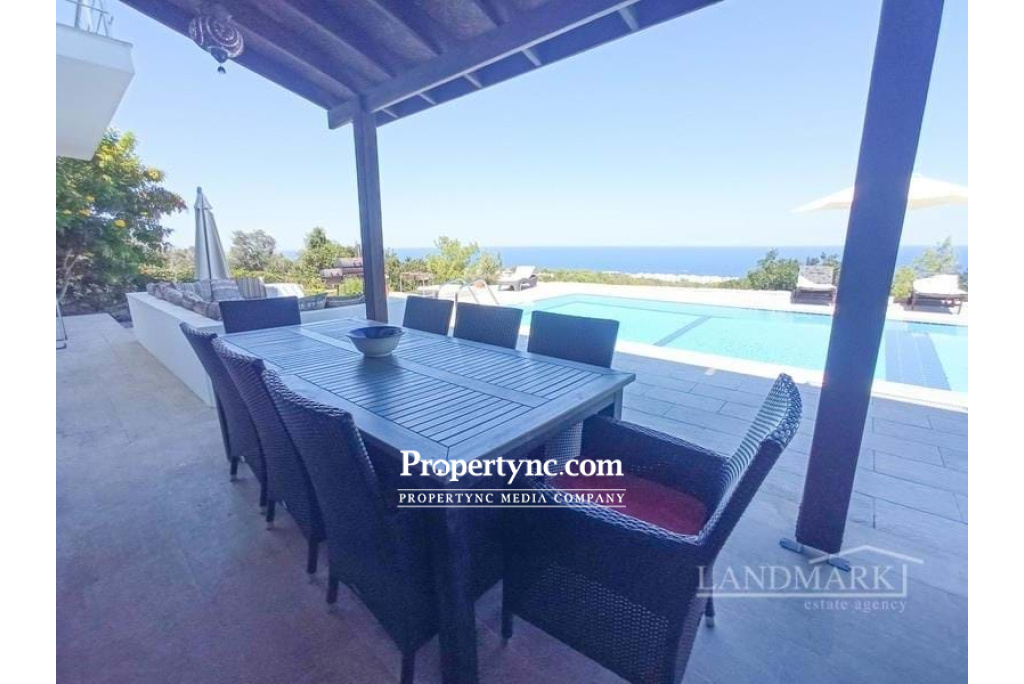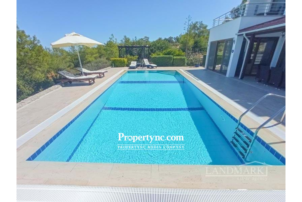 4 bedroom luxury resale villa + 10 m2 x 5.5 m2 swimming pool + fully furnished + car port + 5.4 KW solar panels + privacy + sea and mountains views + Title deed in the owner’s name, VAT paid