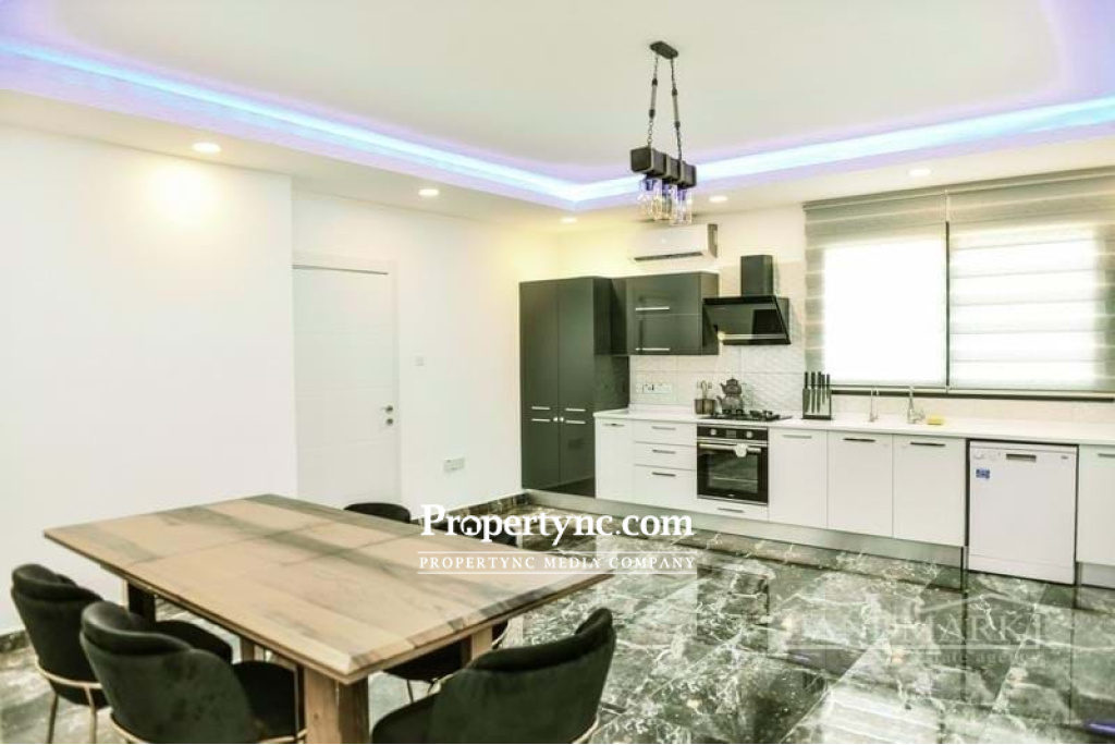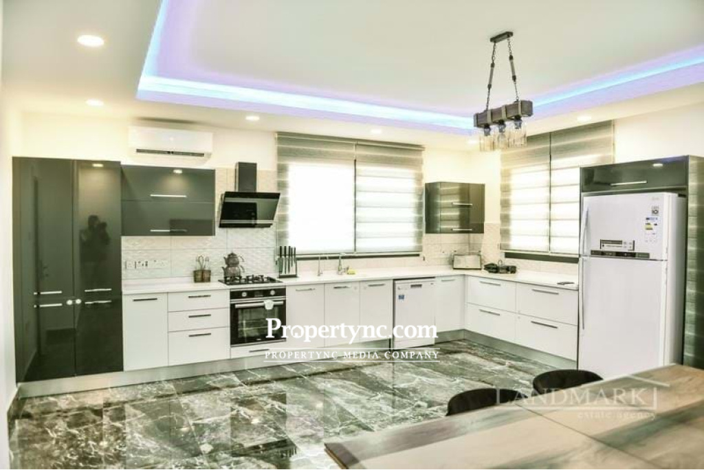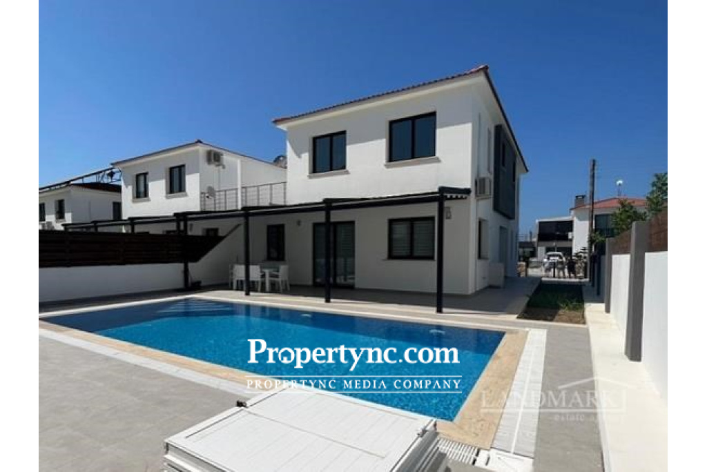 This is the last property left available, a modern 4-bedroom semi-detached villa located in a quiet area of Edremit village. The advantage of the area is that it is hidden away and secluded, yet it is still very close to all amenities as it is situated on the outskirts of Girne - our touristic city. The semi-detached villa has a private pool with a big sunbathing area. The property has a spacious lounge a separate fitted kitchen including white goods, and a dining area. One of the bedrooms and a WC & shower room are located on the ground floor. On the first floor are 3 bedrooms the master with ensuite and there is 1 family bathroom and a large terrace that could be covered. 220m2 closed area 400m2 land area Private pool Private garden Exchange title deed Full title deed is ready to transfer VAT to pay Year of construction: 2020 Furnished 4 bedrooms 1 on the ground floor and 3 on the first floor 3 bathrooms 1 on the ground floor and 2 on the first floor (1 is en-suite) Living room Separate kitchen & dining area Air conditioners in every room Central heating system infrastructure Dropped ceiling Granite ceramic floors American panel doors Aluminium double glazing Terrace (It can be covered) Cloakroom Balcony Garden terrace Car park Water well Location: 250 m from the main road. 350 m to pharmacy. 550 m to the market. 750 m to Kyrenia highway. 800 m to Kervansaray Beach. 900 m to Merit Park Hotel & Casino. 1.5 km to Kaya Palazzo Hotel & Casino. 7 km to the center of Kyrenia. 11 km to Kyrenia Port 44 km to Ercan Airport 84 km to Larnaca Airport - REF: 1943a-2