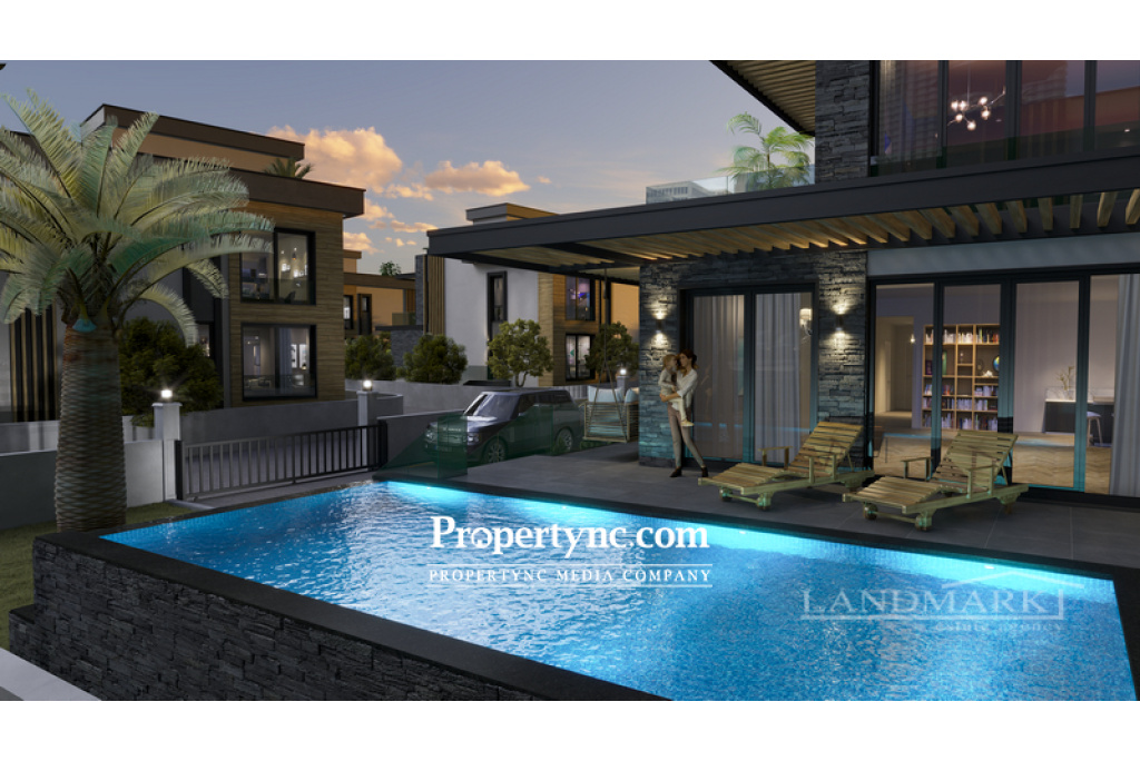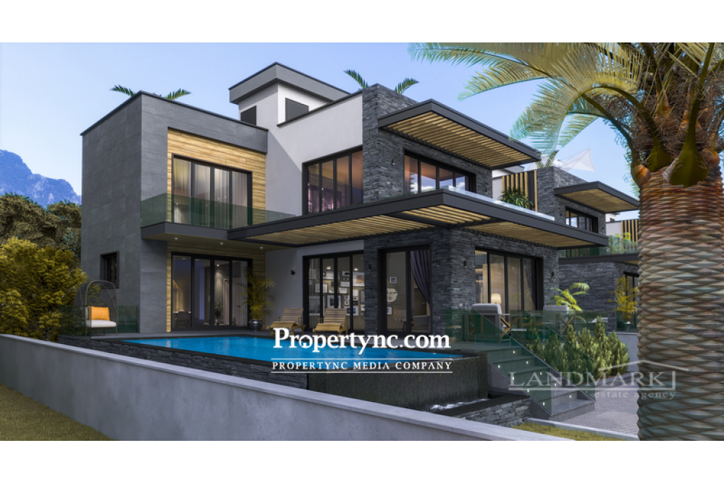 We are excited to announce the launch of a new development project featuring nine modern villas located near the Mediterranean Sea in Karsiyaka. Each villa includes a spacious lounge area, a separate kitchen, one bedroom, and a bathroom. Additionally, the villas provide access to the pool from the lounge and kitchen areas, offering a perfect retreat from the summer heat. On the first floor, you will find a luxurious master bedroom with an ensuite bathroom and access to a terrace with breathtaking views of the surrounding mountains and the Mediterranean Sea. There are also two additional bedrooms, each with its own ensuite bathroom. Moreover, the villas boast a roof terrace that offers panoramic views of the area, providing an ideal spot for relaxation, watching sunsets, or stargazing at night. This village offers several restaurants in the area, including a local fish restaurant called Sirinyali down by the sea. There are also Sulars and Jessics nearby. At the Karsiyaka square, you will find the Park café & restaurant, the local butchers, barbers, and a coffee shop. In the mountains, there is the green palace restaurant, and at the Karsiyaka beach, you have Vasilia restaurant. You are just minutes away from Lapta village where you can enjoy the Lapta walkway, Sardunya beach, and a variety of other restaurants and facilities. 9 villas on a gated site 151m2 net size 240 total usage 410m2 & 580m2 plot sizes Exchange title deed Completed in 2025 32m2 swimming pool Interior: 4 bedrooms, with 1 on the ground floor and 3 on the first floor 3 ensuites on the first floor, 1 family bathroom on the ground floor Separate lounge area with access to the pool area Master bedroom with access to a spacious balcony area Fully fitted kitchen Air conditioning in every room Heat and sound insulation Aluminium double glazed sliding doors and windows Terracing with inbuilt lighting and power sockets 29m2 roof top terrace Professional architect work Off Street Parking Gated site Security 24 7 Camera System 3-year building guarantee from the company Payment plan: £2000 deposit for registration within 30 days 35% when the agreement is signed 15% must be paid before 31.12.2023 25% payable 6 months before the completion date (can be paid monthly, bimonthly, quarterly) 25% on the key handover in December 2024 Additional fees: Transformer fee: £1500 - REF: 1964b