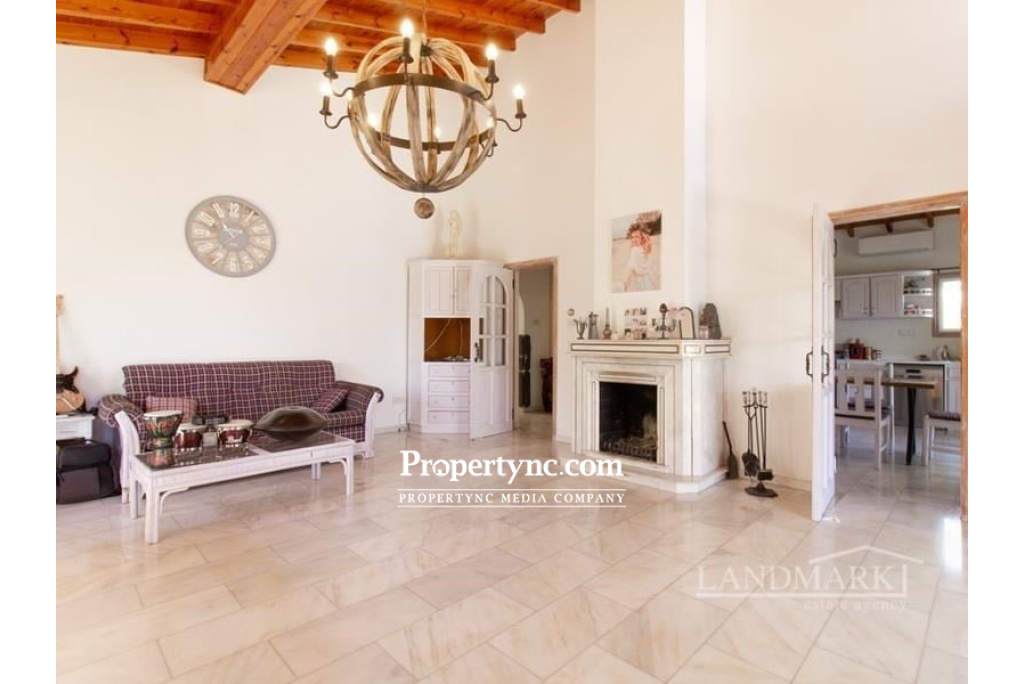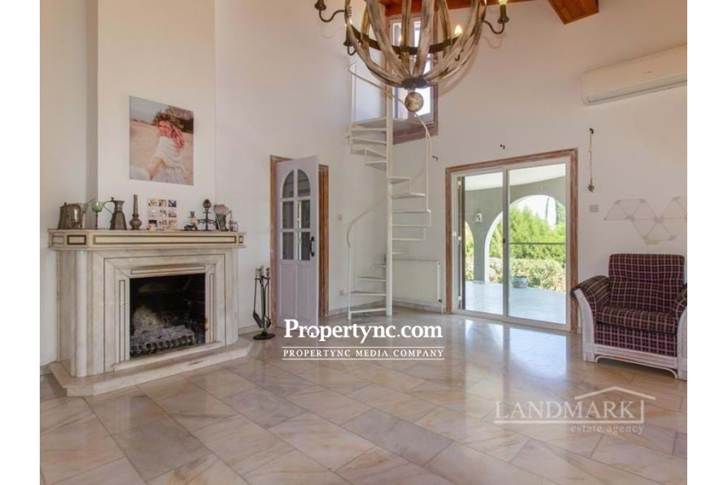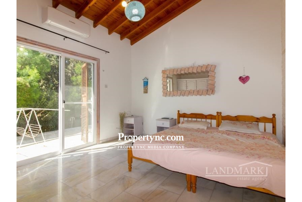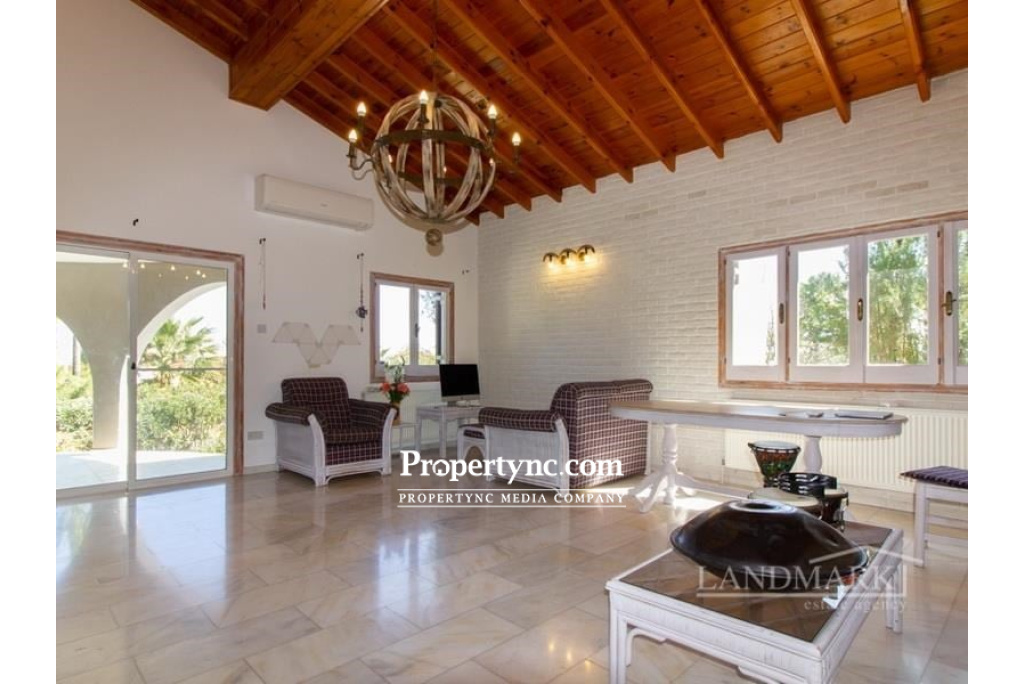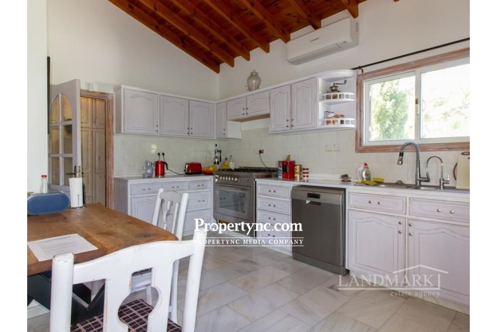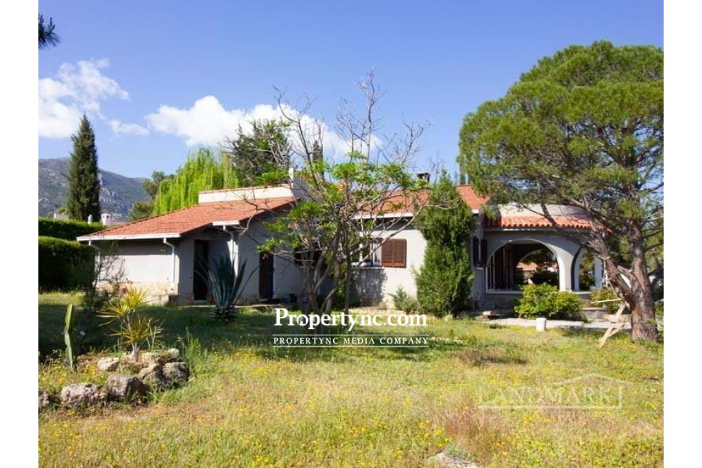 This impressive bungalow is located on a big plot of land in a very picturesque and quiet part of Catalkoy village not far from the main amenities like supermarkets, restaurants, banks, beach clubs etc. The bungalow occupies a well sized plot of land with a big mature garden. Internally it has an entrance hall leading to a light and spacious living room with an open fireplace, an access to the main rounded terrace with a picturesque view, and a winded staircase to the roof terrace with the breath-taking view to the mountains, green neighbourhood and sparkling Mediterranean Sea. There are 4 bedrooms, one of which is currently used as a utility room. 2 bedrooms have wooden furniture and access to the back terrace. There are also two bathrooms; one has a walk in-shower as well as a bathtub. The separate kitchen is fully fitted with kitchen appliances. It has wooden worktops and an access to the main terrace. Through the separate entrance one can enter the one bedroom guest house with a bathroom, a kitchen and a access to the terrace. On the roof of the bungalow there is a 15kwt solar panel station. Together with the water well it makes the bungalow rather self-sufficient and allows to minimize the cost of water and electricity. This is an amazing house in a most picturesque spot, perfect for living or coming for memorable vocations. 200m2 internal area approx. 2710m2 land plot Exchange title deed Completed 1993 Title deed in the owners name VAT paid Communal olympic sized swimming pool Roof terrace 1 bedroom guest house 3 bedrooms with terraces 3 bathrooms Master with fitted wardrobe Fully fitted kitchen Kitchen appliances Utility room Central heating Open fire place Air conditioning x 6 new Irrigation system 5 tonnes of water storage Covered parking and a motor cabin Alarm system 15 kwt solar system Partly smart home system Marble flooring Antique furniture Big mature established garden Sea and mountain views - REF: 1992