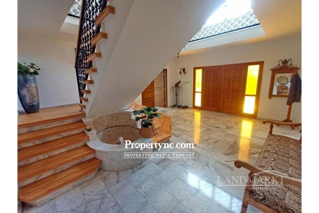 Introducing a charming, Mediterranean villa, a resale property that is beautifully nestled in the tranquil fringes of the serene village of Ozankoy. The grandeur of the property becomes immediately apparent upon arrival, with its impressive entrance and the practicality of a double garage providing ample parking space. A beautifully crafted front terrace extends a warm welcome, guiding guests to the main door. Upon entry, you are greeted by a welcoming hall featuring an intricately designed wooden staircase. This staircase leads you to the spacious bedrooms, well-appointed bathrooms, and additional terraces offering breathtaking views. On the ground floor, you will find a spacious lounge, separate from the hustle and bustle of the rest of the house. It features an open fireplace, perfect for cosy evenings. Adjacent to the lounge is a large, fully fitted kitchen adorned with polished wooden countertops, providing a rustic charm. The kitchen conveniently opens to a vast dining area, perfect for hosting dinner parties and family meals. It also offers a patio door leading to an outdoor terrace, allowing natural light to flood the room. Returning to the main hall, you will find a guest WC and a room that has been thoughtfully converted into a home office. This space offers another access point to the terrace, providing a relaxing view during work breaks. The first floor consists of two spacious bedrooms, each equipped with modern AC units, terraces offering panoramic views, and ample wardrobes for storage. These bedrooms share a common, well-maintained bathroom. In addition, the first floor also houses a master bedroom. This luxurious space boasts an en-suite bathroom and a private terrace, providing a personal retreat for the homeowner. Further enhancing the villa's appeal is the property's basement, which has been transformed into a leisure haven. It accommodates a professional-grade gym, a room dedicated to snooker game, a mini-cinema for movie nights, and a temperature-controlled wine cellar for wine enthusiasts. The exterior of the villa is equally captivating. It offers a large plot that features several seating areas, perfect for outdoor entertaining. The kidney-shaped swimming pool adds to the villa's charm, providing a perfect spot for summer relaxation. A pool bar is also available for hosting pool parties. Completing the exterior is a beautifully maintained garden, offering a touch of nature to the villa's overall aesthetic. 400m2 approx. internal area 1500m2 plot size Turkish title deed Title deed in owners name, VAT paid Completion year: 2007 10m2 x 5m2 heated swimming pool Fully furnished 4 bedrooms Master bedroom with en-suit and bath Guest bedroom with en-suit Family bathroom Guest WC Fully fitted kitchen Wooden worktops Dining area with an access to the terrace Fireplace in the lounge Ceramic and marble flooring Wooden staircase with decorative fountain Gym Snooker game room Mini-cinema Wine cellar Storage room Air conditioners x 8 Spotlights Water irrigation system Double garage Mature garden Bar near the pool - REF: 2157