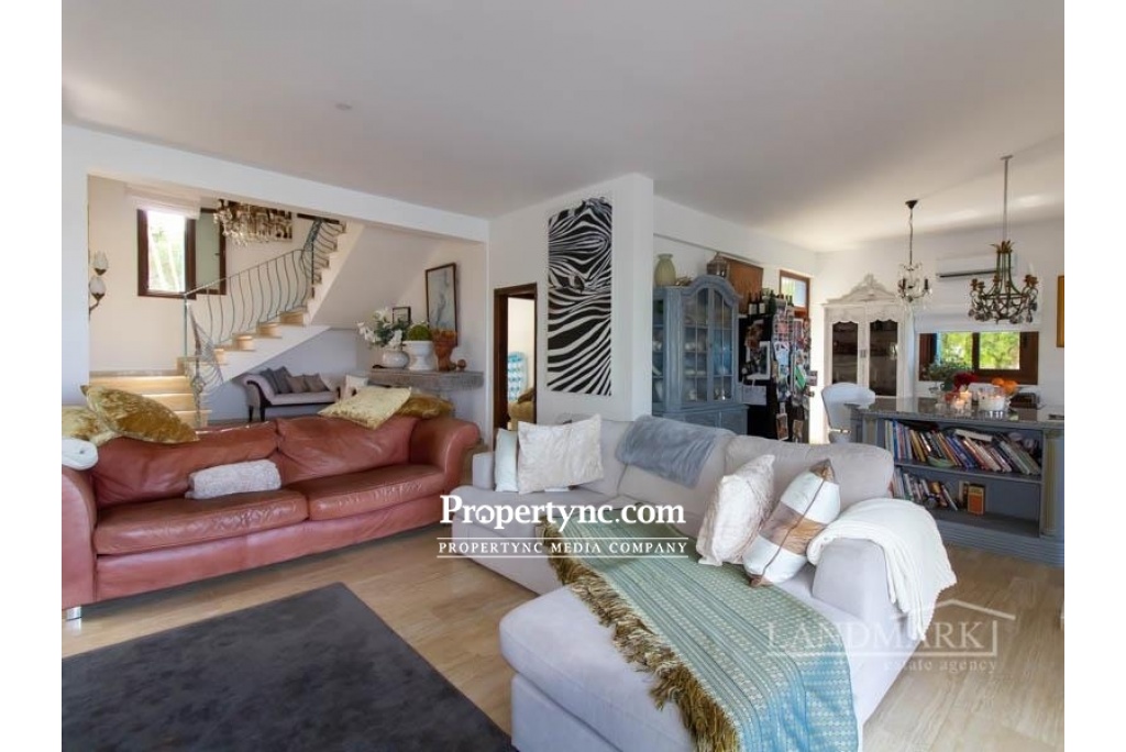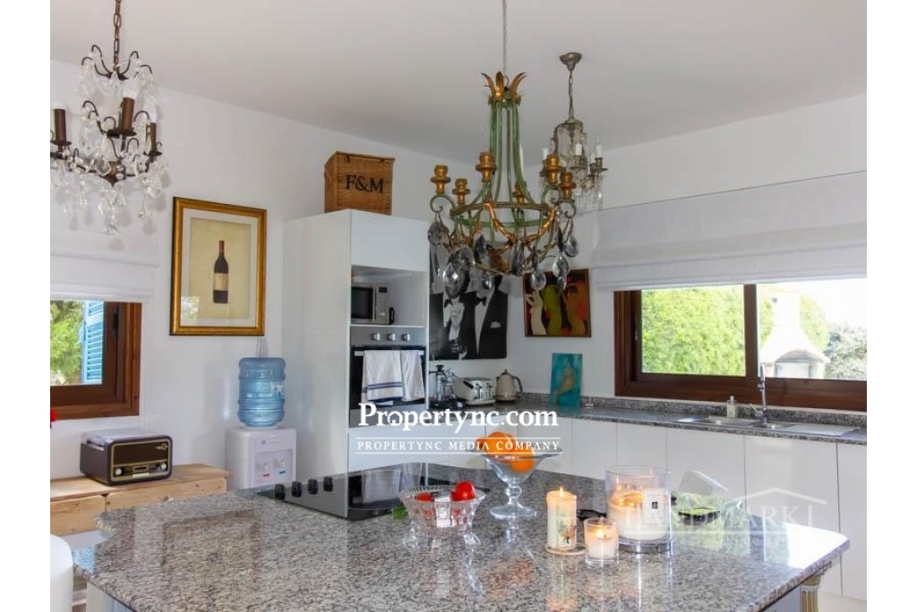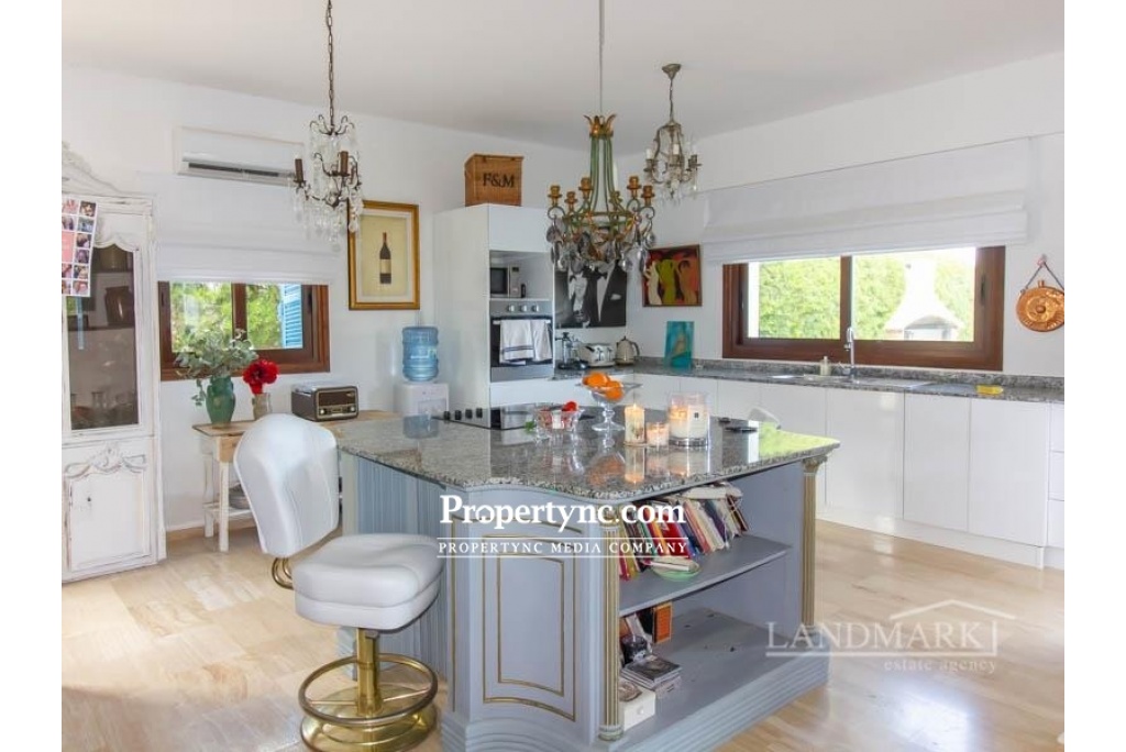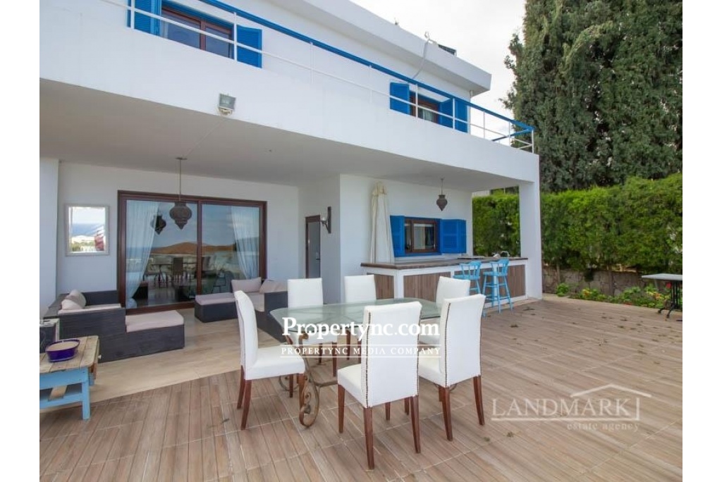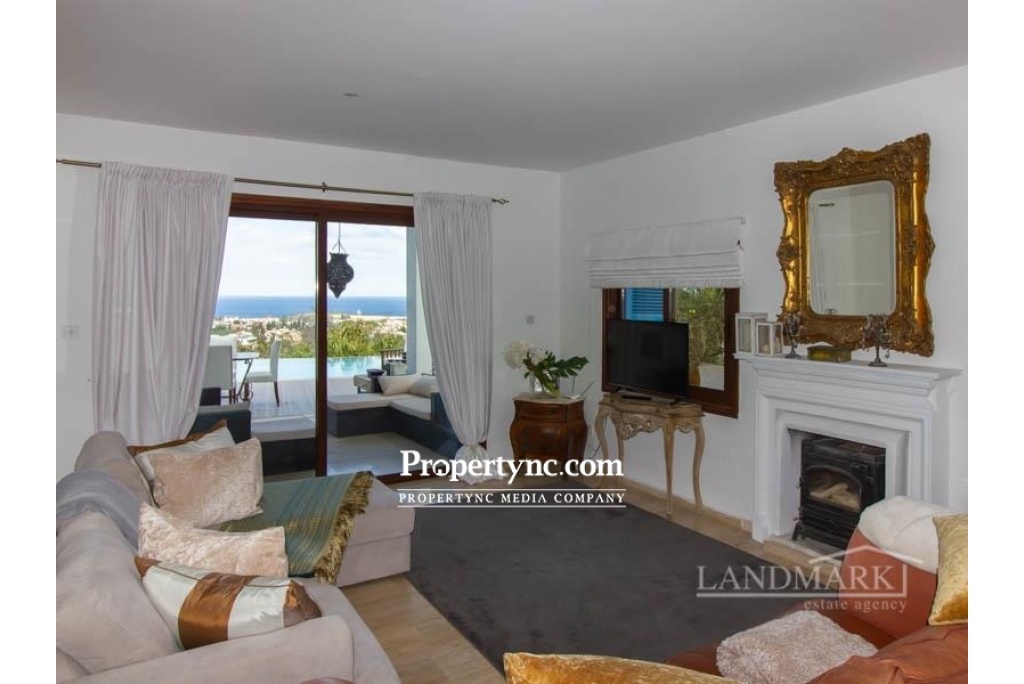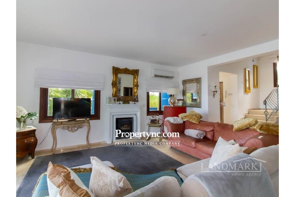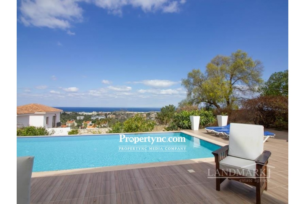 This beautiful villa is situated in a quiet, elite neighbourhood with amazing sea and mountains views. The house has a neatly arranged garden with a swimming pool surrounded by a recreation area with garden furniture. A small garden with trees is situated downward to the pool area. Internally on the ground floor, you enter the hall, and to the right, you enter the lounge which has a fireplace with a log burner installed. Through patio doors, there is access to the terrace area, and the pool and has marvellous sea views. The kitchen is open to the lounge, it is a fully equipped kitchen including appliances. There is a kitchen island with a granite worktop and a cooking hob. Further, there is a guest bedroom with a log burner and access to the garden, and a guest WC is also on the ground floor. The floors throughout are travertine or white marble. Upstairs are 3 bedrooms all with air conditioning. The master bedroom has an en suite bathroom with a walk-in marble shower has access to a terrace with sea views. The 2nd bedroom has a free-standing wardrobe and access to a terrace with a sea view. The 3rd bedroom is smaller in size and also has a free-standing wardrobe. There is a family bathroom on the first floor with a bath finished with white marble. Outside has a landscaped garden and a lovely pond area. You dont find many houses with this view over the villages to the coast line to the cool blue Mediterranean Sea. There is a covered parking area for 1 car by the entrance gates. 250m2 internal area approx. 1000 m2 plot size approx. Turkish title deed Completed 2002 Share of land title deed 8m x 4m swimming pool 4 bedrooms, 1 - to the ground floor, 3 - to the first floor 1 en suite with marble finishing and walk in marble shower, 1 W C to the ground floor + 1 family bathroom with a bath to the first floor Fully fitted kitchen with granite worktop Kitchen with appliances Kitchen island with granite worktop Log burner Air conditioning x 5 Irrigation system 3 tonnes of water storage Parking place with pergola Stone wall surround with metal entrance gate Established garden with pebble stone and a pond - REF: 1857