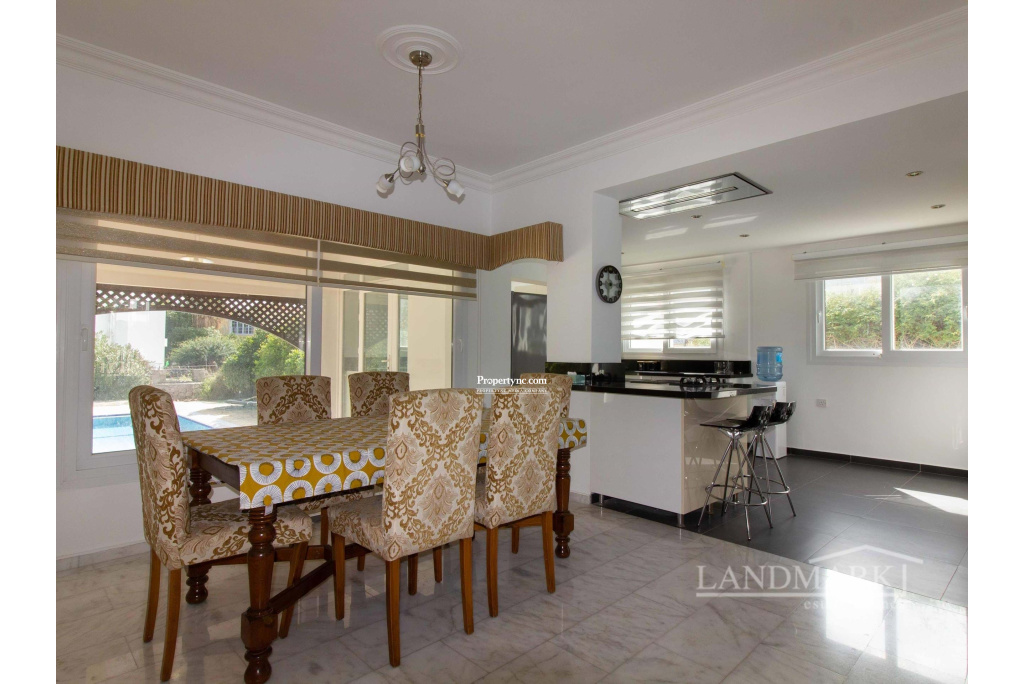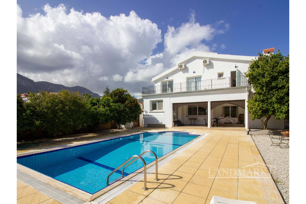 This well-built villa, recently renovated, is located in the prestigious area of Bellapais in Kyrenia. The villa boasts mountain views and features a sizable landscaped garden with a private swimming pool, a BBQ area, a water well, a garden shed, and sufficient parking for two cars. Upon entering the marble entrance with columns, you are welcomed into a spacious hall. The ground floor comprises of a lounge with fireplace and an open-plan modern kitchen that leads to the pool terrace. It also includes a dining area, a guest bedroom, and a large bathroom with a storage room behind. A broad marble staircase leads to the first floor, having three extra bedrooms. The master bedroom boasts two walk-in wardrobes and a roomy bathroom with a bathtub and a walk-in shower. It also gives access to the front balcony and a large terrace overlooking the pool. The other two bedrooms also connect to a terrace, with one featuring an ensuite. A spacious family bathroom is also situated on the first floor. With its prime location and meticulous upkeep, this house is perfectly suited to be a dream home or an ideal vacation spot for a family. 220m2 internal area 920m2 land plot Exchange title deed Completed 2006 renovated 2010 Title deed in the owners name VAT paid Private swimming pool 10m x 5.5m 4 bedrooms, 3 to the first floor + 1 guest bedroom 2 en suites one big with bath tub 1 family bathroom to the ground floor 1 family bathroom to the first floor Master with walk in wardrobe and two others with floor to ceiling wardrobes Fully fitted kitchen Kitchen appliances Gas central heating Open fire place Air conditioning x 4 Large terrace Utility room BBQ Water well Irrigation system 8m3 of water storage Driveway for two cars Stone wall surround with iron entrance gate Mature established garden - REF: 2137