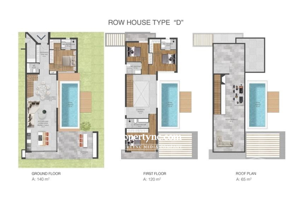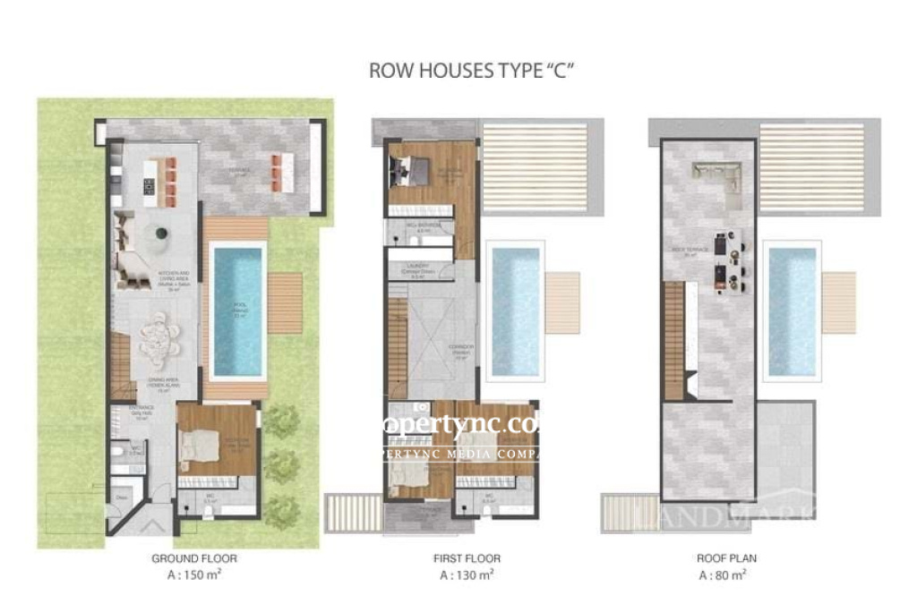 This is a brand new, off plan project that is being built in a great area of Lapta where you will find a number of beaches and restaurants all along the coast within just a 5 minutes drive. The project is designed so that indoor and outdoor spaces are seamlessly unified, and the living houses evoke an eclectic version of resort living. The contemporary yet relaxed interiors, dovetail seamlessly with the striking architecture offering clean, contemporary, stylish spaces. The access is positioned according to the building in the best ergonomic way. On the site, there will be 20 x 2 bed 85m2 apartments in 5 blocks sharing a communal swimming pool. 12 x 4-bedroom row houses with 200m2 & 220m2 internal size and roof terrace and 14 x 4-bedroom exclusive villas with 255m2 & 265m2 internal size and roof terrace, all the villas can have the option of a private swimming pool if required. The 4-bedroom row houses have 2 types, 6 of each type. Type C, 220m2 internal, 60m2 of terrace, 80m2 roof terrace and 22m2 there is an option of a private swimming pool if required. Internally, the ground floor has an open-plan lounge dining and kitchen area with access to a terrace and a pool area. One bedroom with en suite bathroom and a W C. The first floor has a further 3 bedrooms all with en-suite bathrooms and a laundry room and also has a rooftop terrace. Type D, 200m2 internal, 60m2 of terrace, 65m2 roof terrace and 22m2 and also has a rooftop terrace. Internally, the ground floor has an open-plan lounge dining and kitchen area with access to a terrace and a pool area. One bedroom with en suite bathroom and a W C. The first floor has a further 3 bedrooms all with en-suite bathrooms and also has a rooftop terrace. Type C 220m2 internal area 60m2 terrace 80m2 roof terrace Type D 200m2 internal area 60m2 terrace 65m2 roof terrace VAT to pay Completion in 2025 4 bedrooms 1 to the ground floor 4 ensuite bathrooms W C Open plan, lounge kitchen and dining area Special dressing rooms, wall cabinets and wardrobes High quality fitted kitchen & wardrobes & sanitary ware shower & bathrooms VRF heating & cooling Floor heating system infrastructure for villas and row houses. Cafe, terrace cafe, Gym and Spa. Tennis court Trafo fee £3000 extra Maintenance TBC 5 Year Building Guarantee Optional extras: White goods and furniture packages are available if required Option of private swimming pool if required All terraces will have a BBQ option Optional solar energy infrastructure Payment plan: 35% down payment 25% when concrete structure finishes (if finished, then 60%) 25% when under structure, floor handle, brickworks and plasterwork finishes (if this stage has been completed, then 85%) 15% when the villa is completed and its surroundings, site road pavements clean soil finishes and deed transfer The project is in close proximity to a beautiful beach bay called Sarduna Beach where you can go to sunbathe and have lunch with family and friends enjoying the fantastic view of the Med. The area has become a very popular residential area and has a mix of locals and ex-pat communities. Sulars and Jessics are also in the vicinity as is the Silver Rocks Restaurant and you are only a few minutes drive to the Lapta strip where you have an array of other restaurants and beaches to enjoy. You are also close to all other amenities such as chemists, supermarkets, banks and a whole selection of shops which runs into the neighbouring village of Alsancak. - REF: 1904d-1